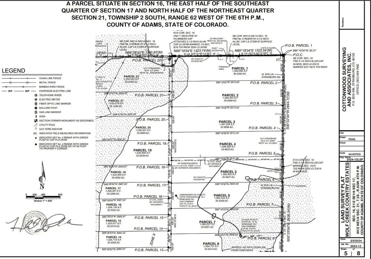 Here is a level potential building site (Parcel #3) near the Denver Metro area with good paved road frontage and mountain views. Come enjoy the rural lifestyle with great access to I-70 and the town of Strasburg. There are great views of nearby Wolfe Creek that frequently has local wildlife using it as a travel corridor and a water source. It would make a nice place for someone looking to have some space away from the city. There are no HOAs or covenants with the only restrictions being from Adams County. The parcel has the possibility of annual income as most of the acreage is in tillable cropland production and is currently leased to a local tenant. A recent survey has been completed and can be supplied upon request. The corners have been marked with green posts to identify property lines. Additional parcels are available for increased acreage if desired. Average moisture for the area is 15 to 17 inches annually. Several restaurants and businesses can be found in nearby Strasburg, CO. Contact your Land Professional today for more information or schedule a private showing. Showings by appointment only.