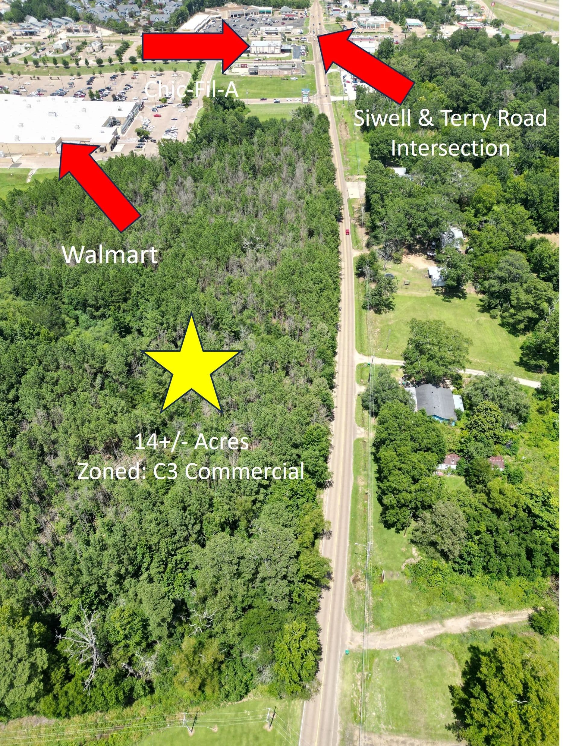 POSITION YOUR BUSINESS OR DEVELOPMENT IN ONE OF CENTRAL MISSISSIPPI’S MOST PROMISING AREAS! A newly listed 14± acre commercial property in Hinds County offers a rare opportunity to invest in an active, high-growth corridor of Byram. Located just south of the Siwell Road and Terry Road intersection and only minutes to I-55, this site offers exceptional visibility, extensive road frontage, and high daily traffic counts. With C-3 zoning already in place, this tract is perfectly suited for a wide range of commercial uses.