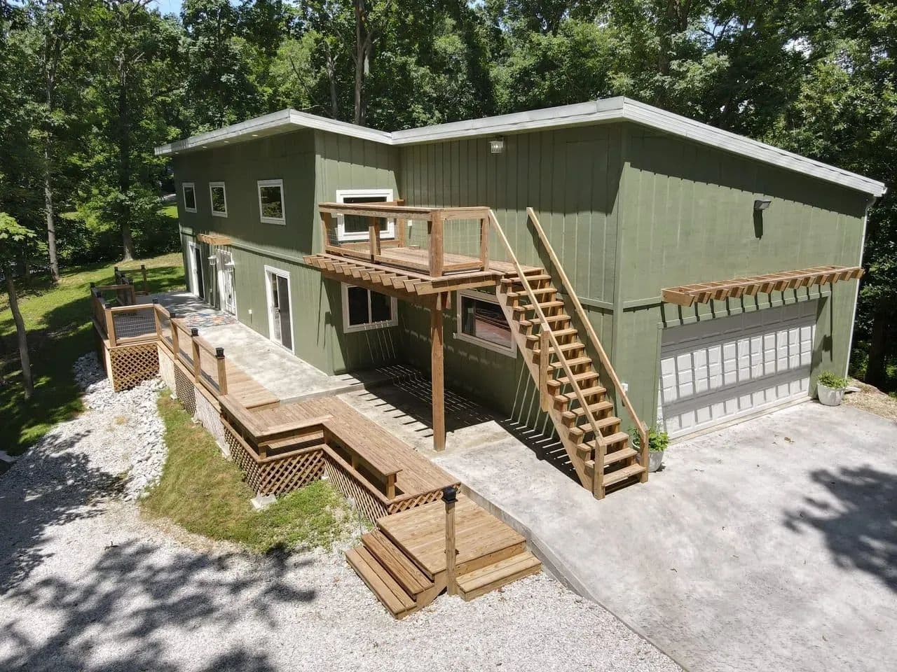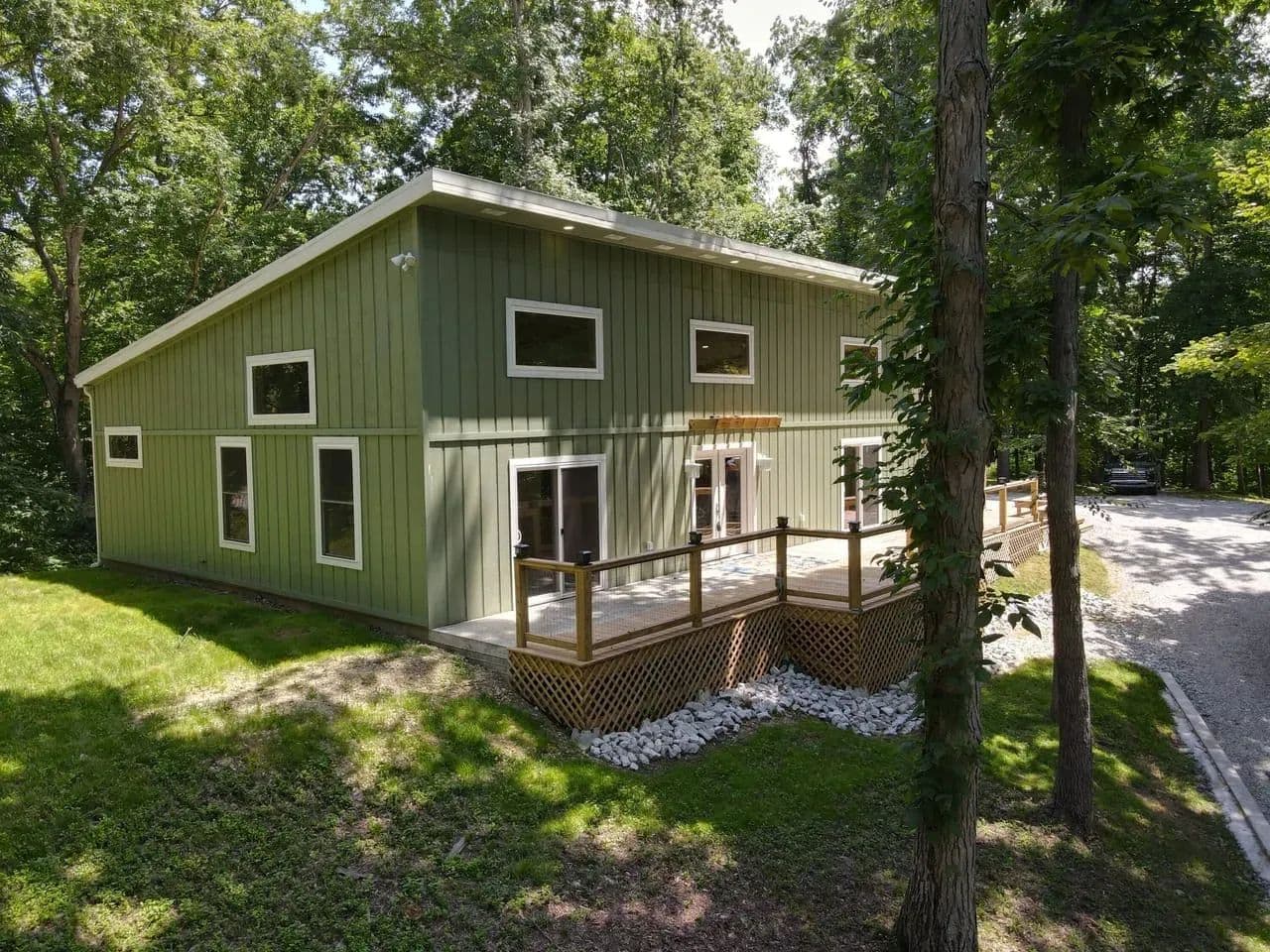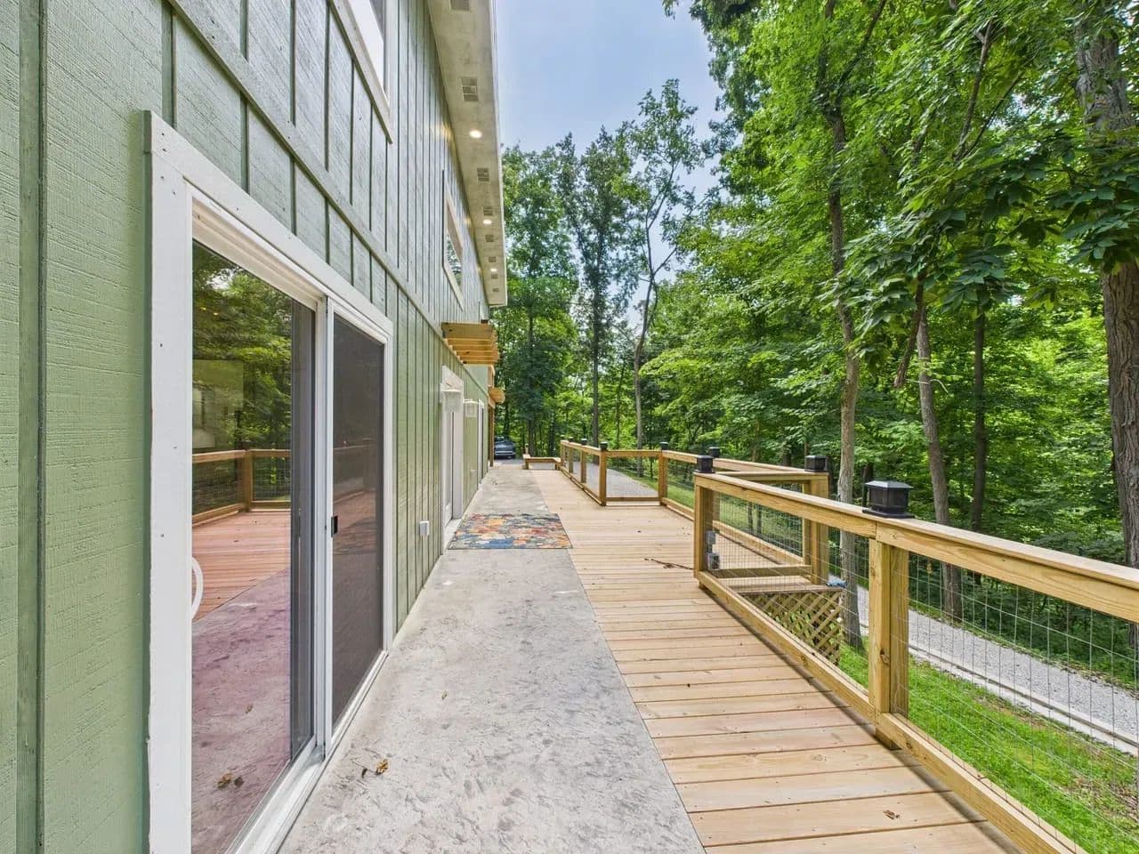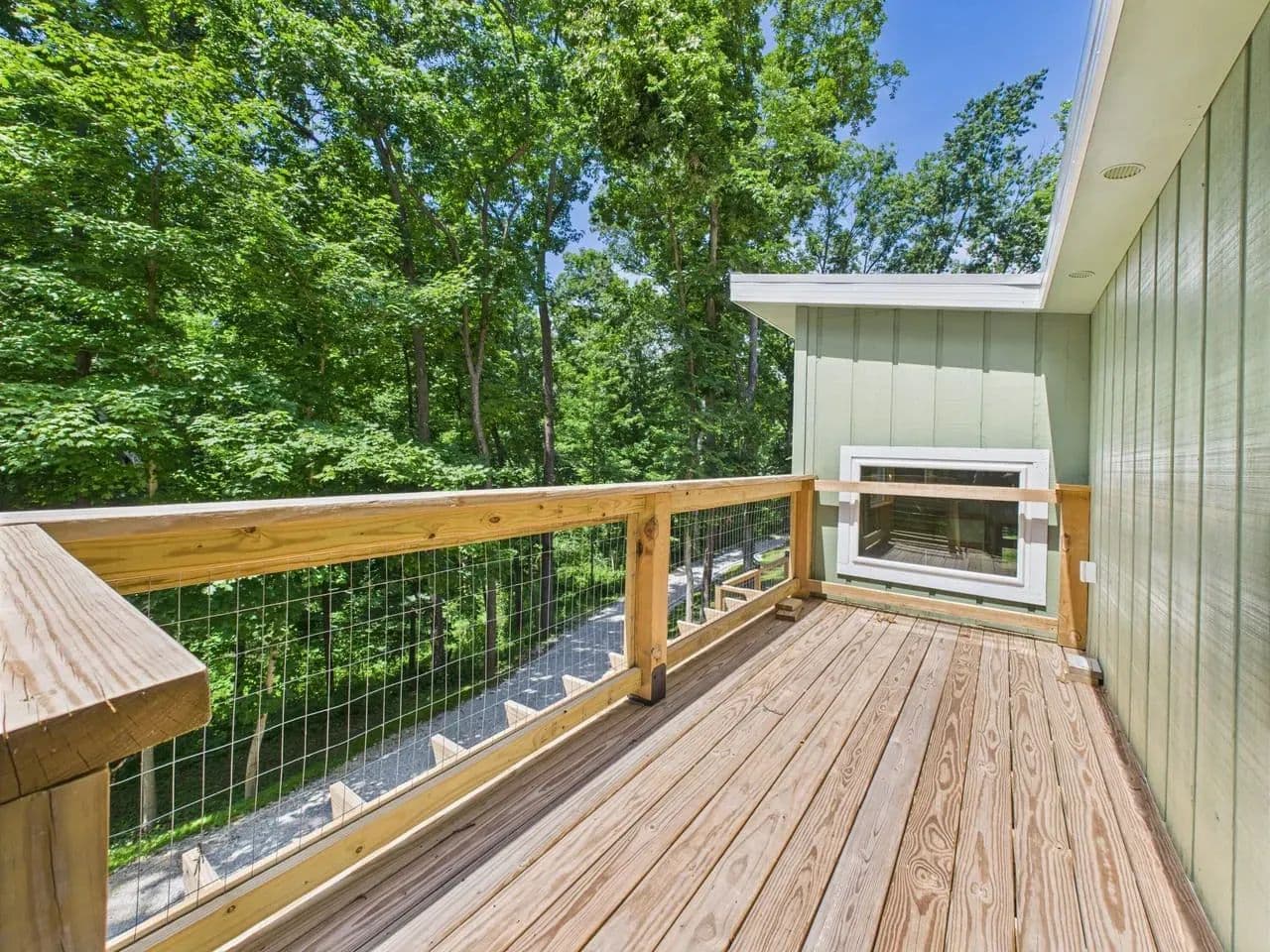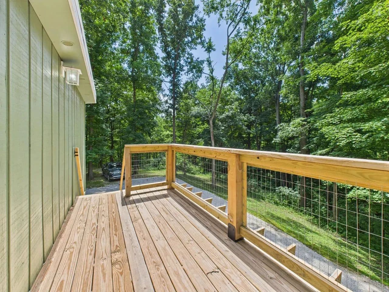 Elevated second-story deck, known as "The Perch", offers a tranquil spot to enjoy coffee at sunrise, watch the local wildlife, or simply unwind above the trees
