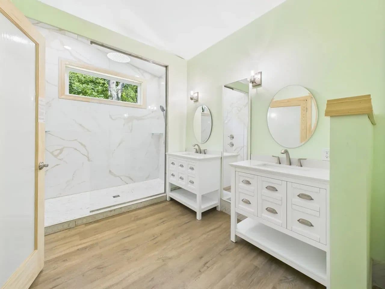 Spacious primary suite with two walk-in closets and an extra-large walk-in shower