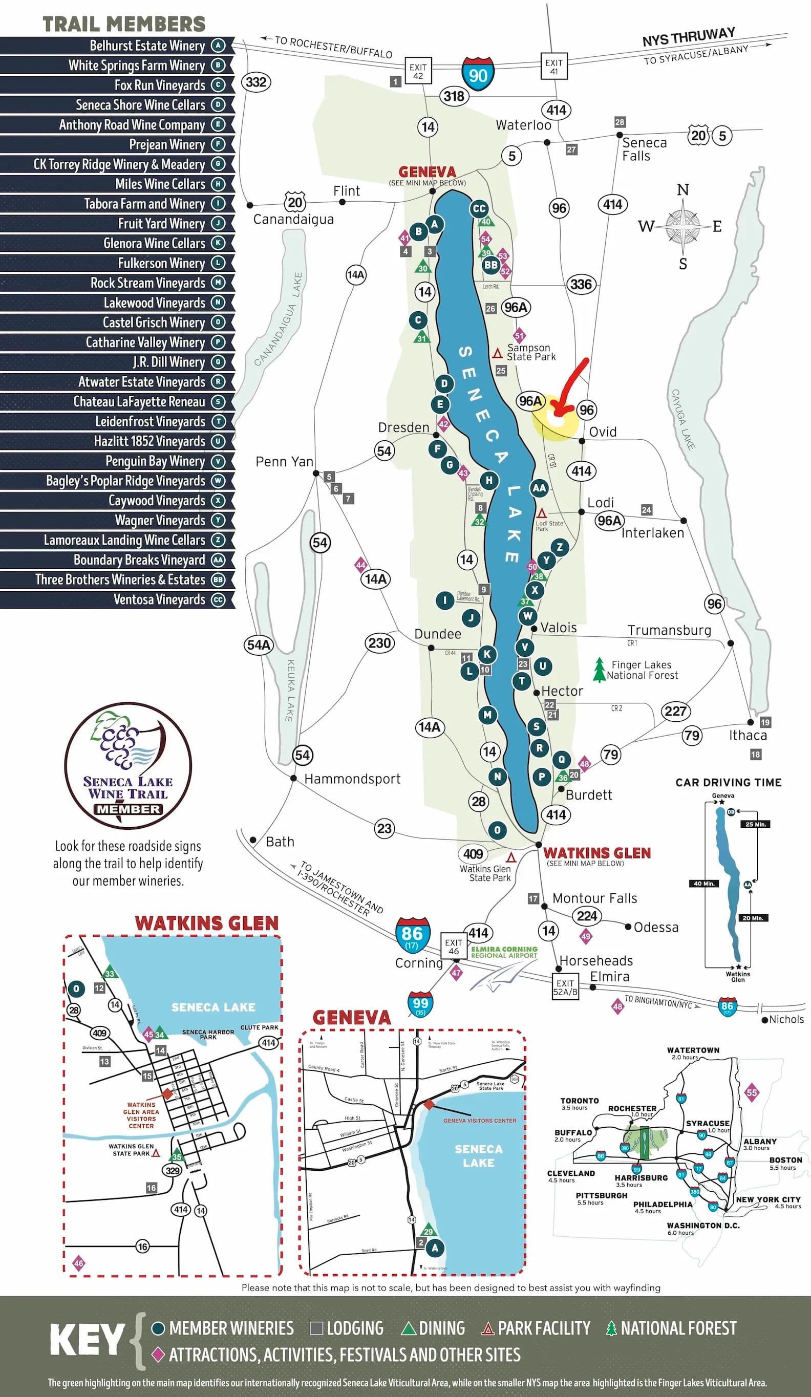 Located along State Route 96A with over 4,000 feet of road frontage and a 3,300 average daily traffic count, this property sits just one mile from Seneca Lake and two miles from the Village of Ovid. With extensive field tilling already in place, the soil is well-prepared for agricultural production or future development. Situated within the path of the Seneca Lake Wine Trail, it offers proximity to over 50 wineries, breweries, and distilleries across the region. Nearby destinations include Sampson State Park, Amish markets, golf courses, the Seneca lakeshore trail, and the scenic Finger Lakes National Forest offering over 16,000 acres of public land to explore.