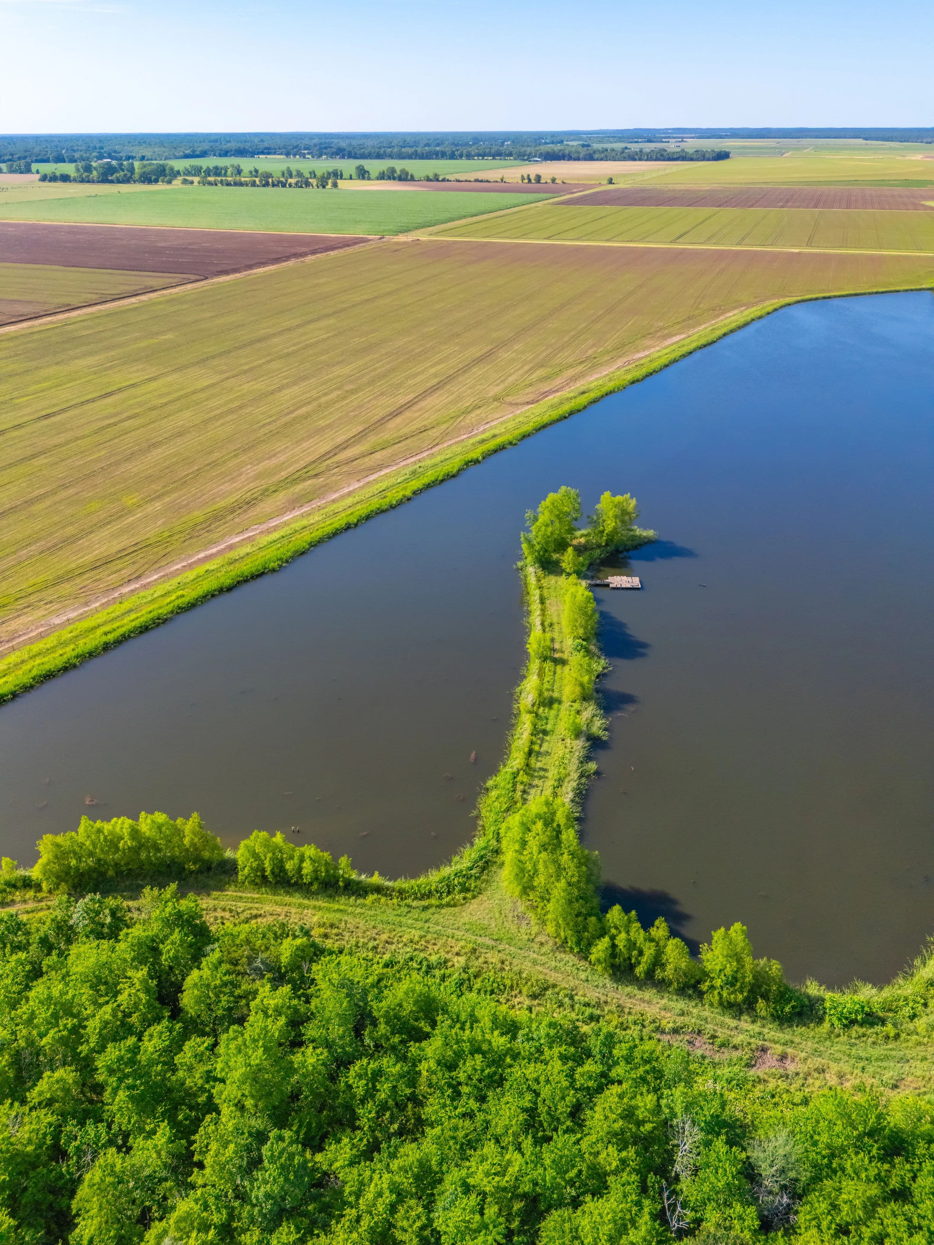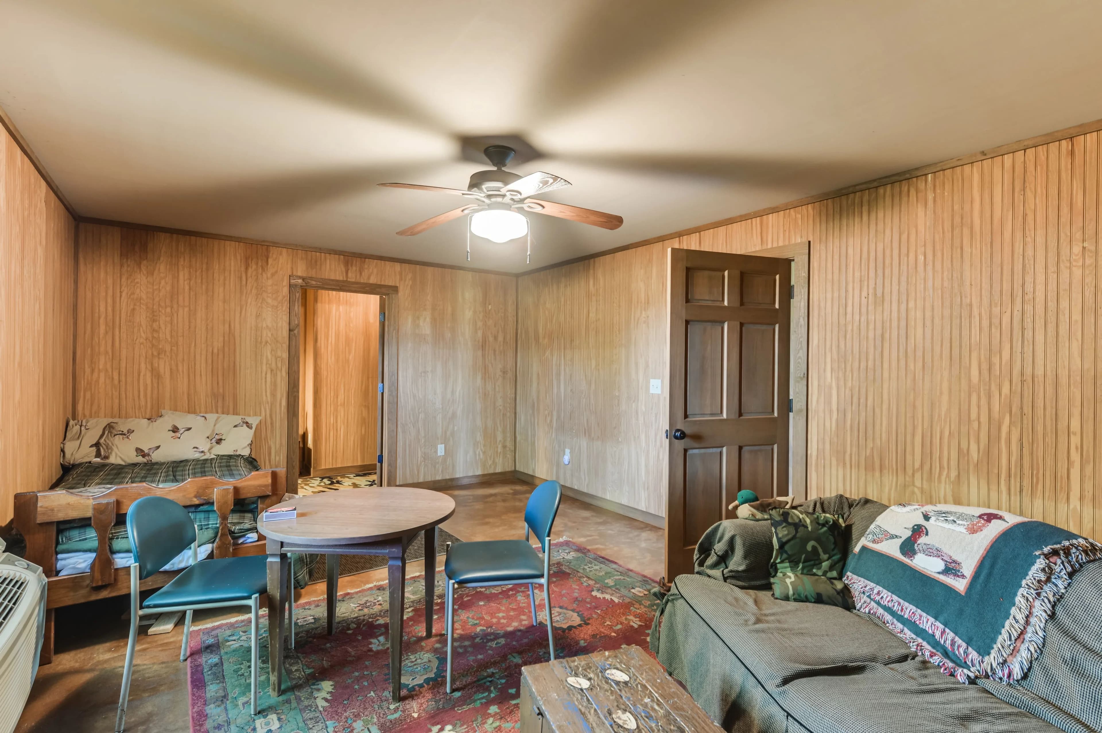 The property boasts two large lakes stocked with trophy bass and various other fish species. The flooded timber has two dedicated duck blinds that have yielded hundreds of ducks over the years. On opening weekend of 2024, these blinds were hunted with 10 hunters and they reached their duck limit in about 30 minutes on both, Saturday and Sunday. The property also has fields used for hunting or as resting areas, which help keep ducks in the vicinity. These fields are adjacent to the flooded timber and are easily accessible by side-by-side vehicles for a convenient hunting experience.