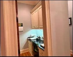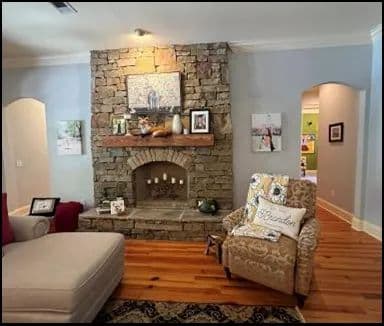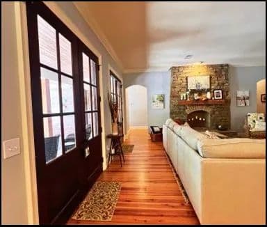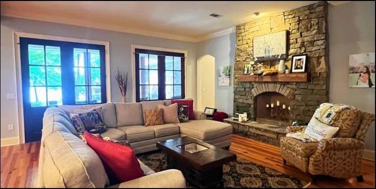 The family room is warm and welcoming, centered around a beautiful stone fireplace, and offers plenty of space for gathering and relaxing. A hall closet provides additional storage, with hidden storage space underneath the staircase.