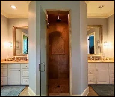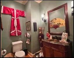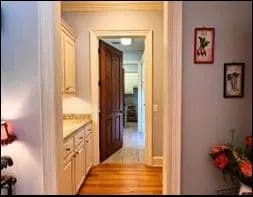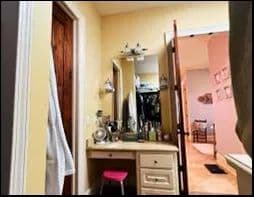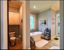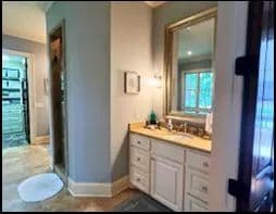 Located away at the end of a window-lined hallway, the private primary suite is a true retreat. It features pine flooring, a picture window with lake views, and a stunning primary bathroom offering separate vanities, a freestanding soaking tub, and a large walk-in shower. The massive walk-in closet features built-in storage, a granite makeup vanity, a washer and dryer (one of two laundry areas), and an additional room ideal for crafts, an office, or seasonal storage.