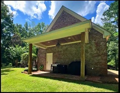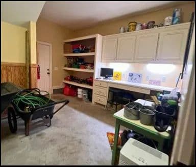 Just beyond the kitchen is a guest's entrance and a charming alcove with built-in cabinets and granite countertops that leads to another multipurpose room ideal for crafts, hobbies, or extra storage, complete with additional cabinetry and counters. This area also provides access to a large laundry room with a deep utility sink. The large three-car garage features an extra work area for all your tools, along with a storage room and an entrance off the back. This area also features a small porch with a sink, ideal for cleaning all your elements, grilling, and relaxing. From here, a stairway leads up to the unfinished attic, ready to be transformed into the ultimate mancave or bonus space.