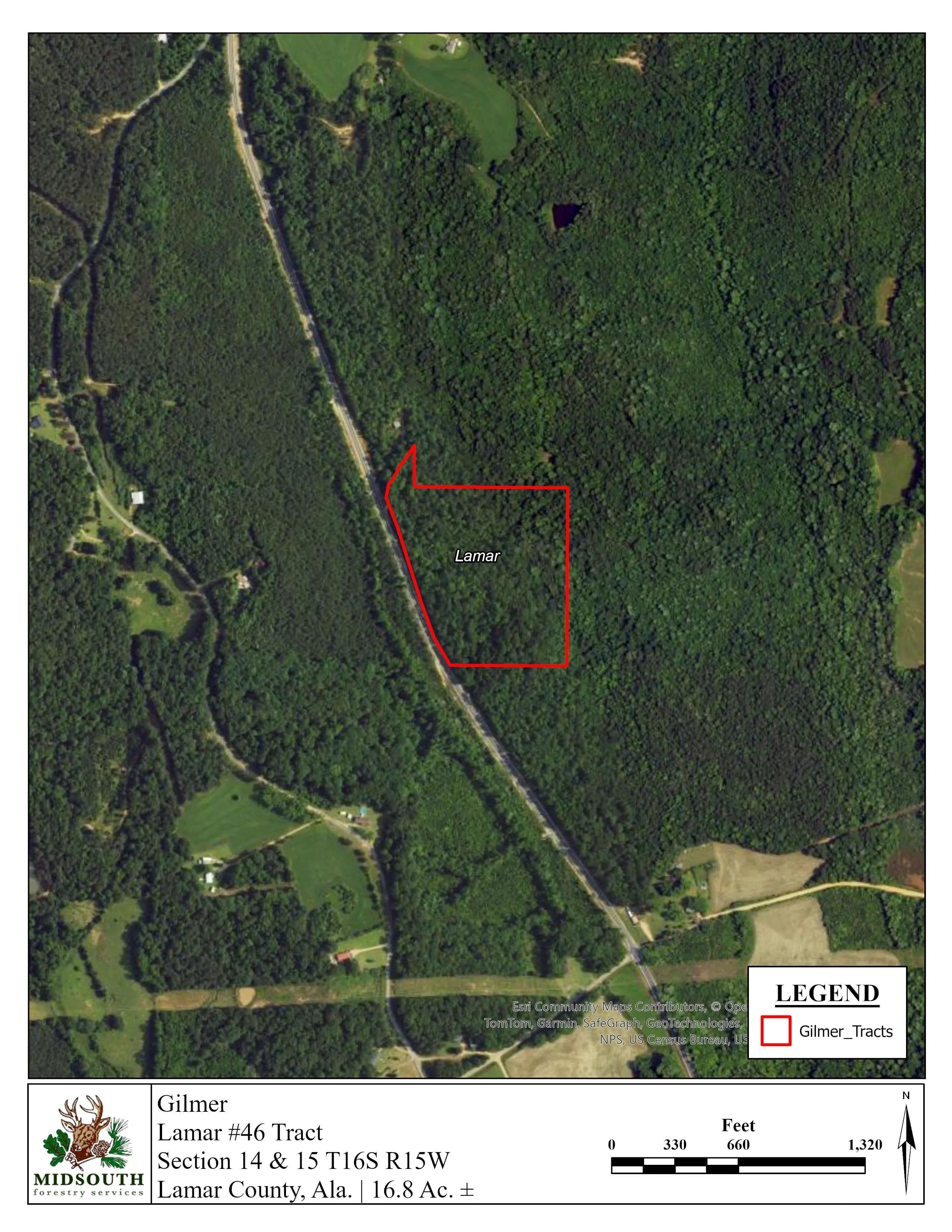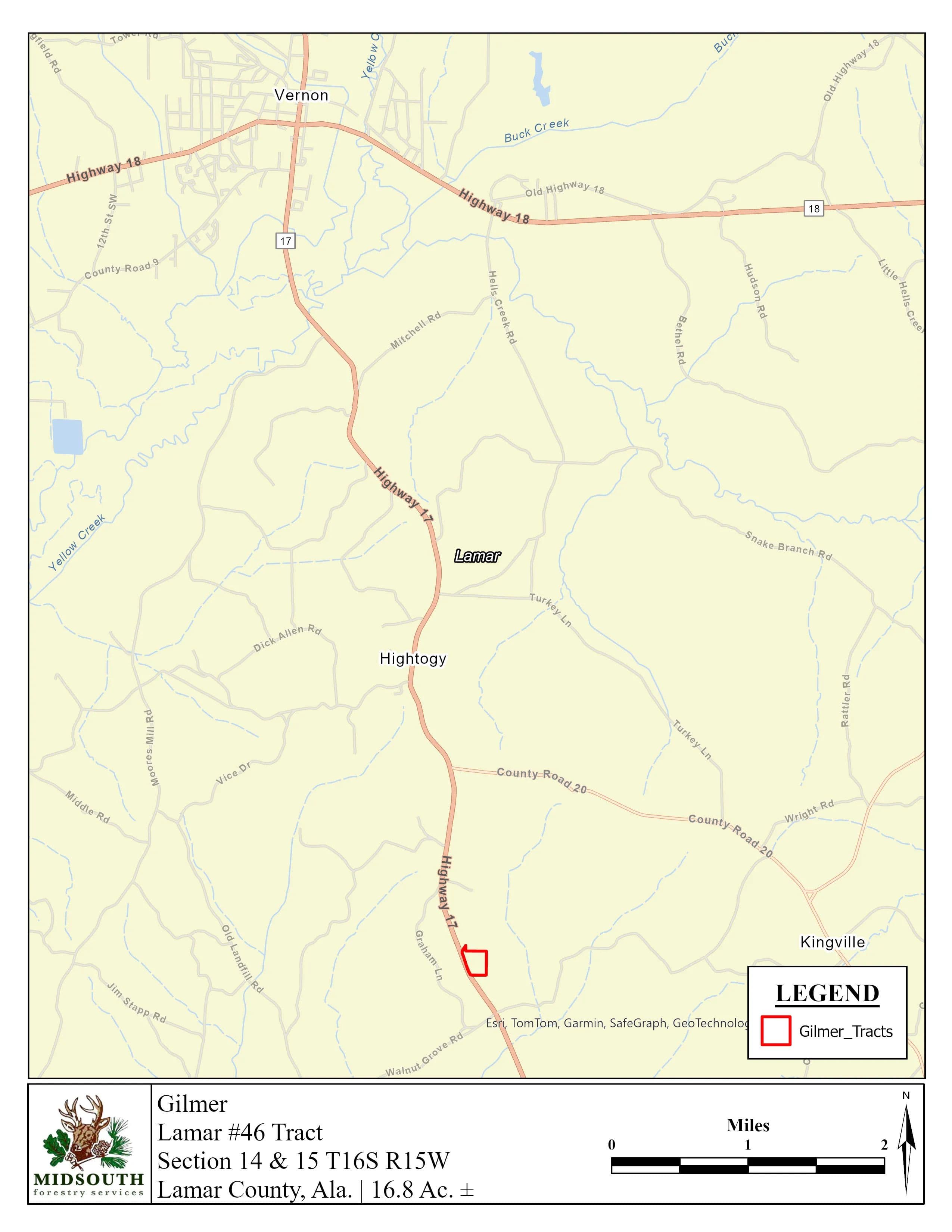 +/-16.8 acres in Lamar County, AL with direct frontage on Highway 17, offering both visibility and convenience just 7.4 miles from Millport and 6.9 miles from Vernon. This attractive tract features a mix of pine and hardwood timber, creating a serene, wooded setting ideal for a private residence or peaceful country retreat. With water and power nearby, the property is ready for development. Whether you’re looking to build your dream home, invest in land, or enjoy a weekend getaway spot, this parcel offers excellent potential. The easy access to nearby towns and highway frontage makes it a rare combination of seclusion and convenience. Don’t miss this opportunity to own a slice of quiet Alabama countryside with room to grow.