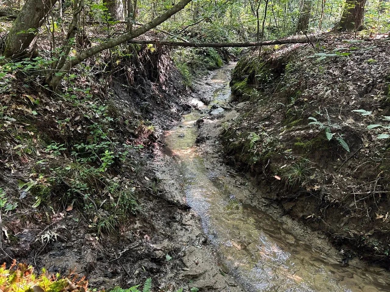 The land features gently rolling topography, making it highly suitable for building or for use as an affordable hunting retreat. The timber stand is composed of approximately 90% hardwood and 10% loblolly pine, both of which are thriving and offer a mix of species and products—including valuable tie and grade logs. A newly established internal road system, complete with properly placed culverts, enhances access throughout the property. Additionally, about 2 acres of food plots have been installed to support local wildlife, and a creek runs through the property, further enhancing its appeal. This tract is located in an area known for healthy populations of deer and turkey, making it a great option for outdoor enthusiasts.