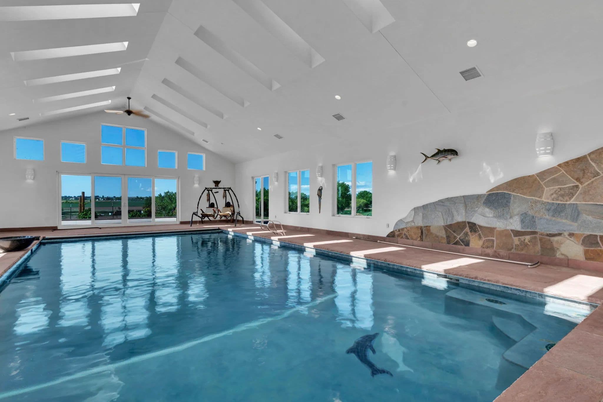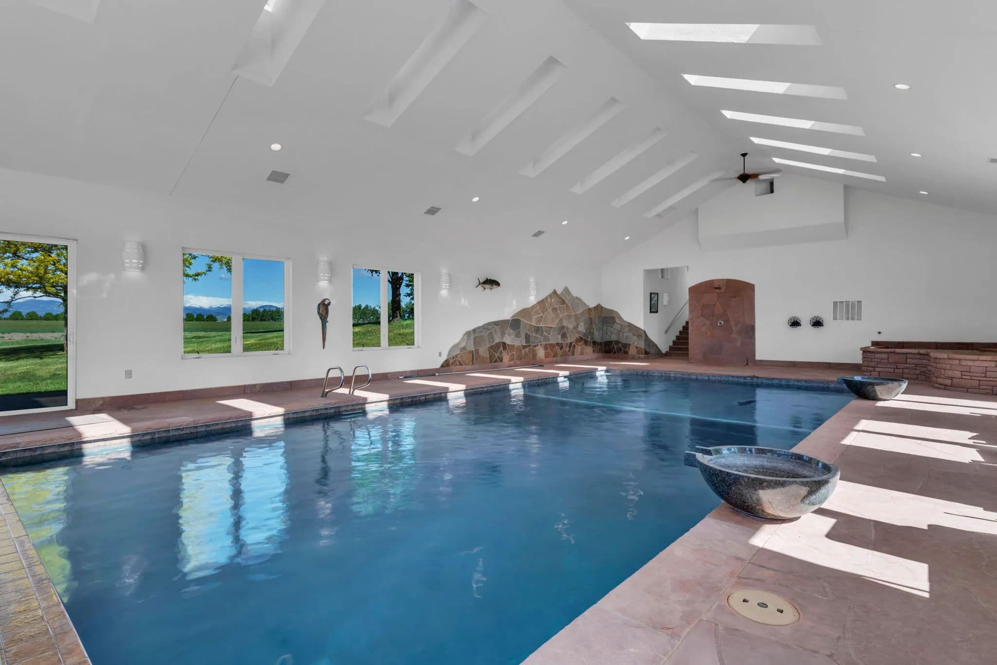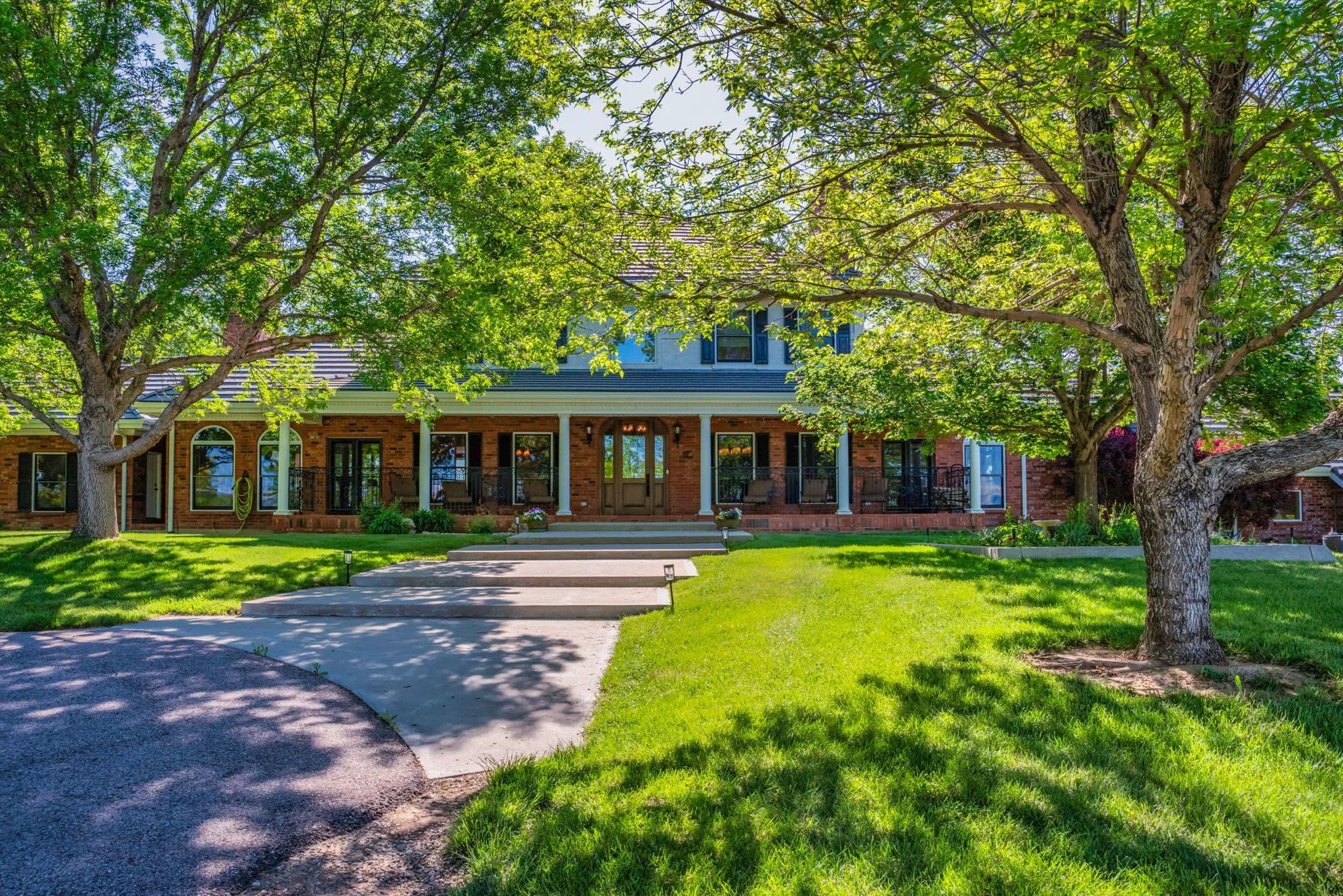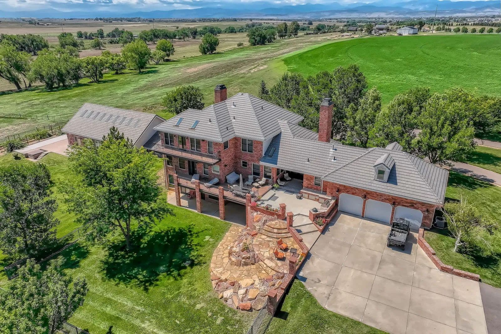 Refined Country Living near Berthoud, Colorado. Welcome to a rare equestrian paradise where luxury and wide-open freedom unite. Spanning 75 acres of pristine countryside, this extraordinary ranch estate is designed for both world-class horse enthusiasts and lovers of refined rural living. A tree-lined driveway leads you to the heart of the property; a stately colonial residence, blending rustic elegance with modern comfort. Soaring ceilings, reclaimed wood floors, walls of glass framing panoramic views and hand-selected natural materials and custom finishes create a warm, elevated aesthetic in this multi storied home. Multiple fireplaces, a chef's kitchen, and spacious entertaining areas invite gatherings both intimate and grand. Where evenings begin and stories unfold - the custom-built bar is a showpiece of Western elegance, wrapped in rich detailed wood carvings and just steps away, a wine room cradles your private collection. Each of the home's three spacious bedrooms is a retreat, showcasing warm wood tones, serene views of the surrounding landscape and handcrafted details in each of the private bathrooms. Thoughtful design and luxury converge to create restful spaces that feel both timeless and inviting. For the equestrian, the ranch features a fully equipped state-of-the-art barn with oversized stalls, tack rooms, grooming stations, and a professional-grade riding arena. With the Rocky Mountains just a few miles away, the possibilities for riding and exploration are endless Additional highlights include an indoor pool, guest cottage, seven outbuildings, private pond, pivot sprinkler, expansive outdoor living spaces, and meticulously landscaped gardens. With ample room for further expansion, this property offers a once-in-a-generation opportunity to own a truly breathtaking slice of country paradise. With its unobstructed mountain views, the spaciousness and serenity of the property, this estate is the Yellowstone Ranch of Colorado.