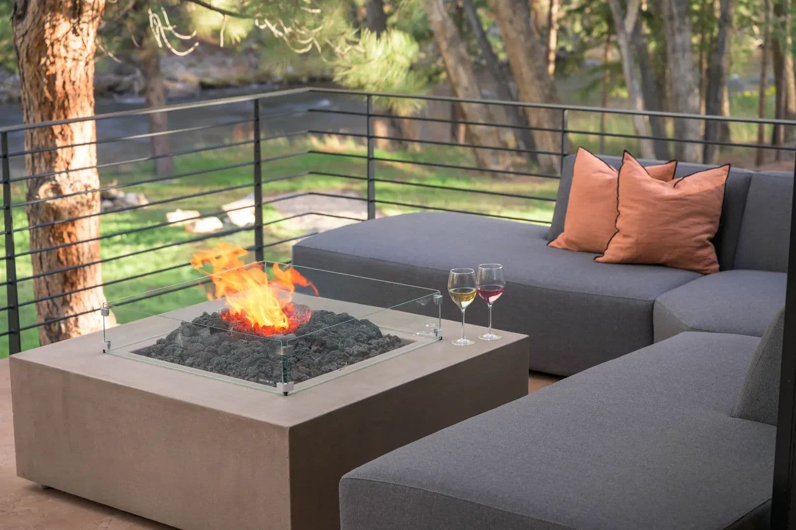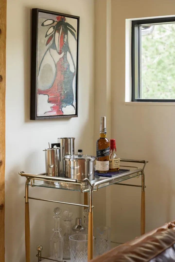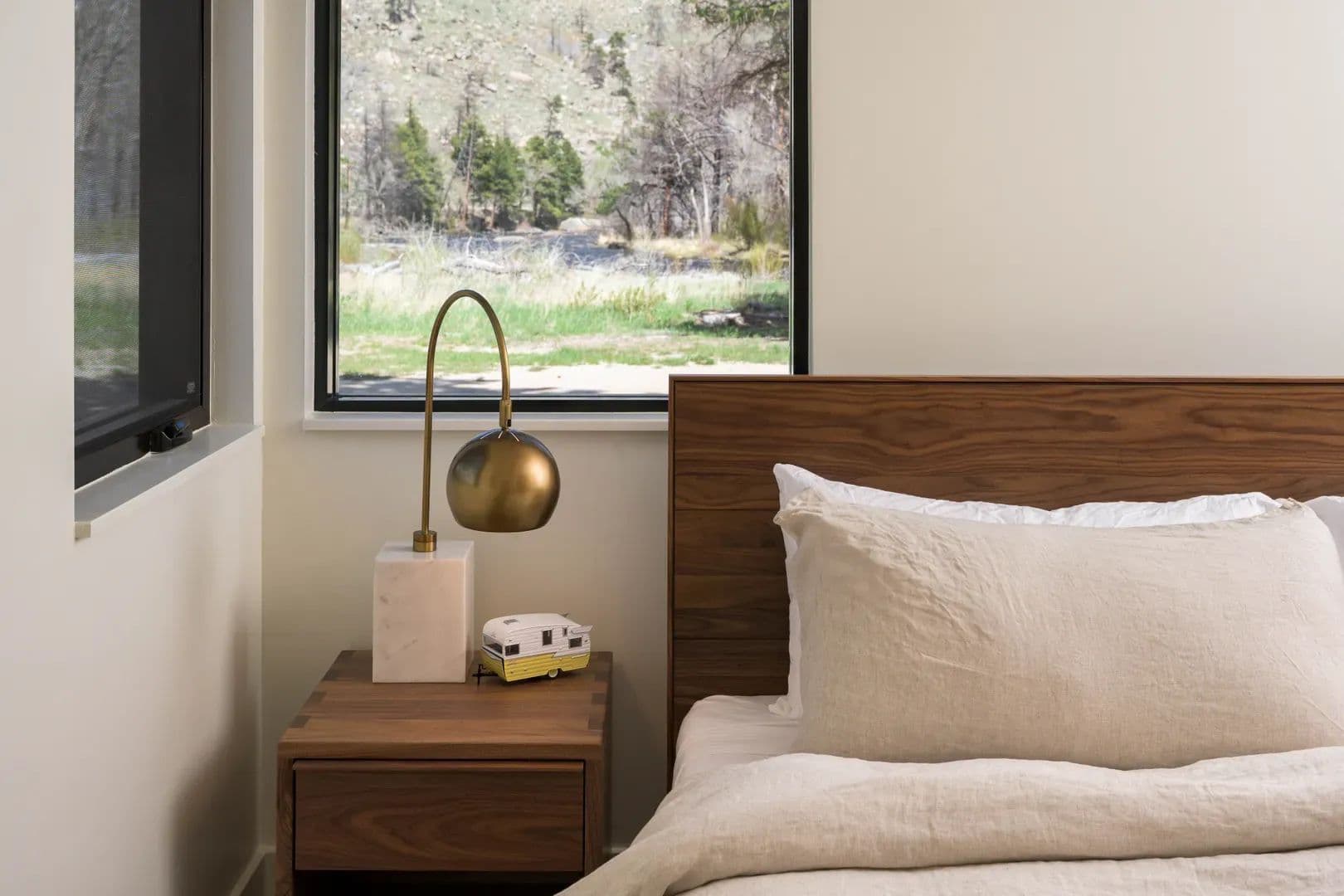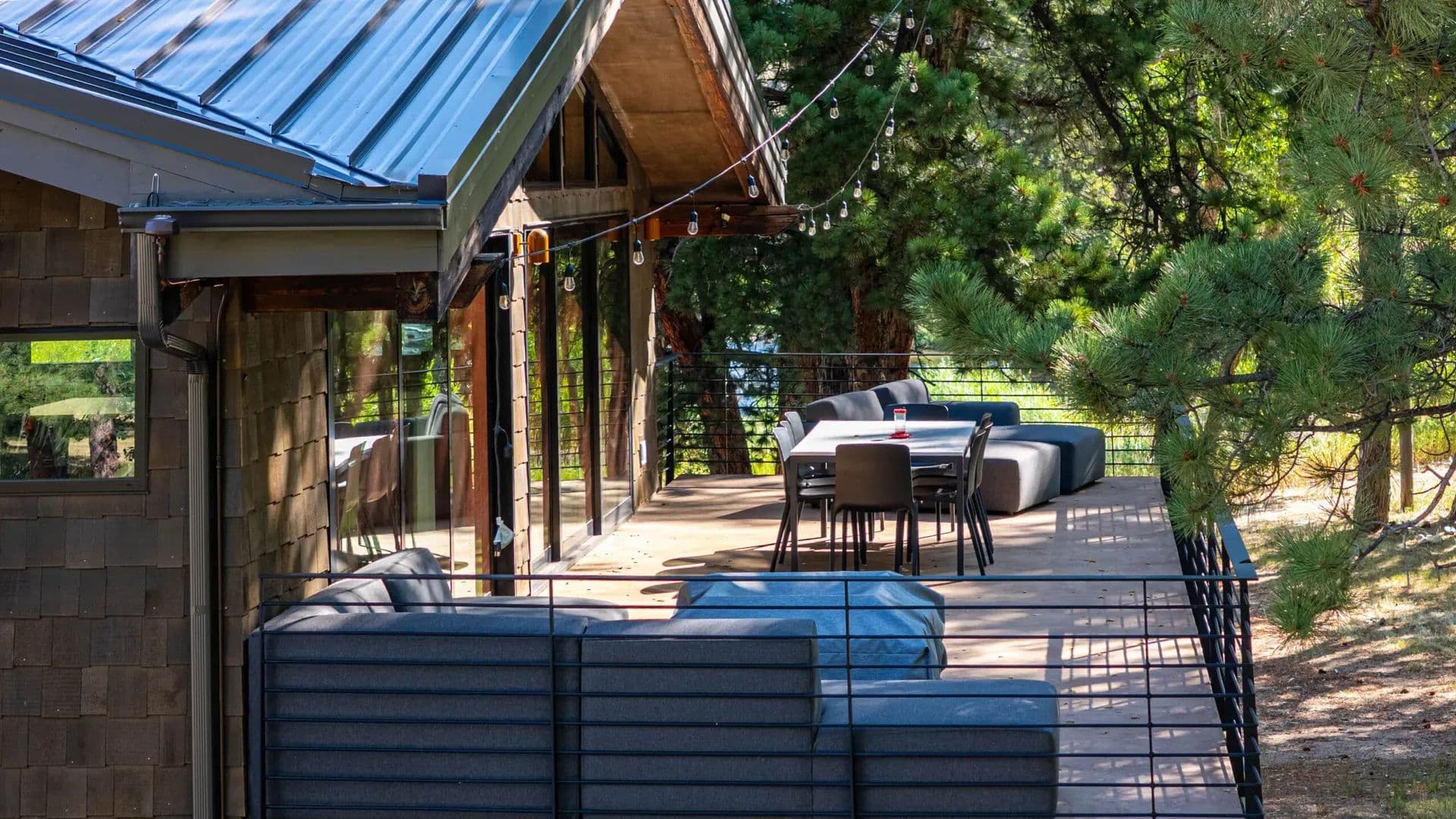 This 2,976-square-foot home has been fully reimagined from the ground up by its developer-owner for personal use and was designed in collaboration with renowned interior designer Bree Halax. The result is a residence that is both deeply functional and visually striking—crafted to live beautifully in all seasons. The great room features a vaulted wood-beamed ceiling and original stonework preserved from the 1970s structure, now paired with modern touches and expansive windows that frame the river just beyond. Twin triple panel glass sliding doors lead to a stunning second story deck with a built-in fire table where one can enjoy the views and the constant soundtrack of moving water.