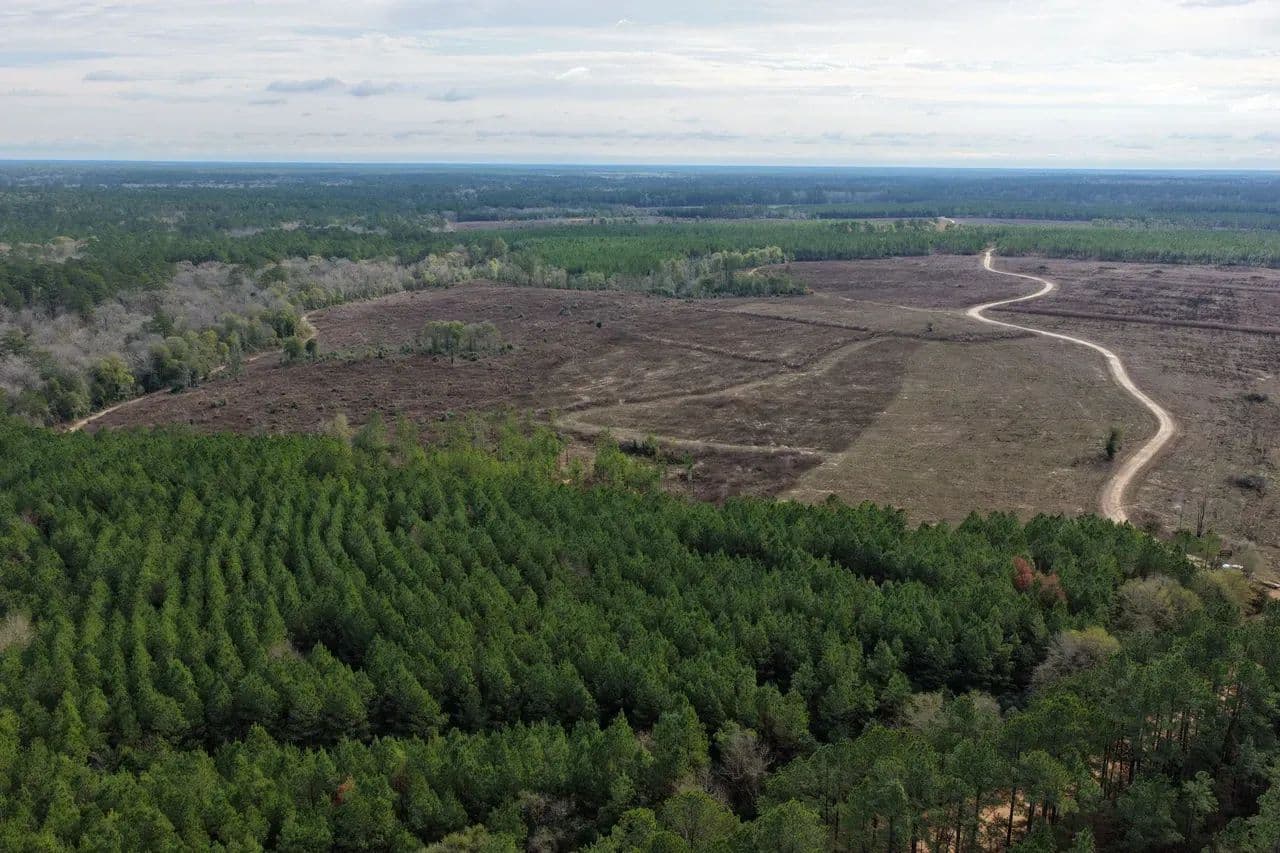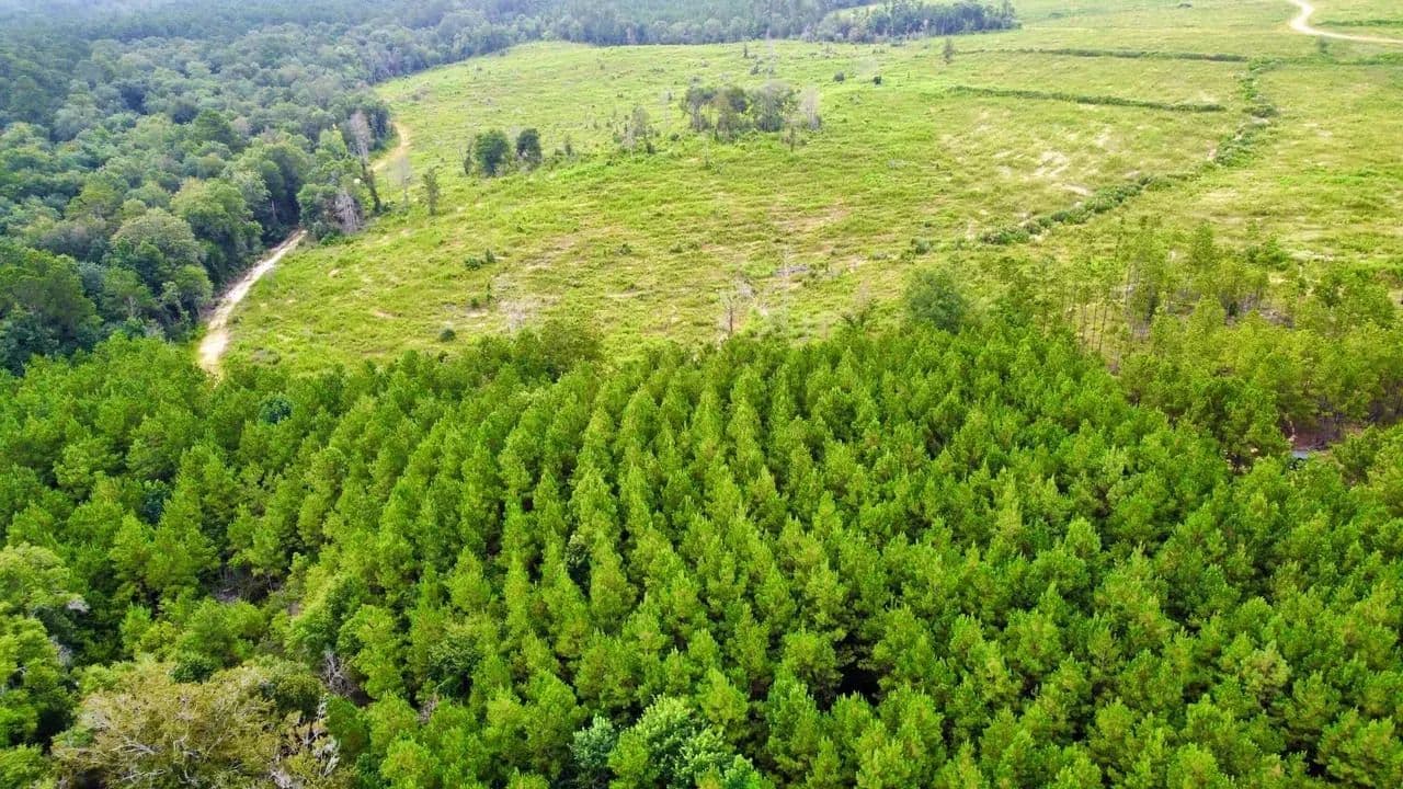 This tract is a haven for wildlife. Whitetail deer, hogs, waterfowl, coyotes, foxes, and small game frequent the area, supported by dense cover, edge habitat, and year-round water. The plant life is equally diverse—towering pines, mature oaks, native hardwoods, and understory browse create a thriving, balanced ecosystem that appeals to both the outdoorsman and conservationist.