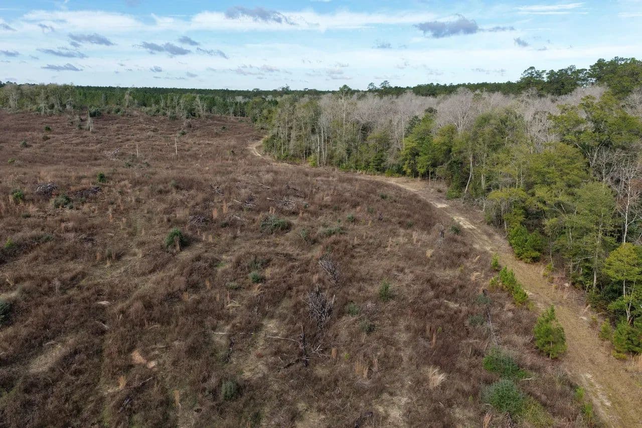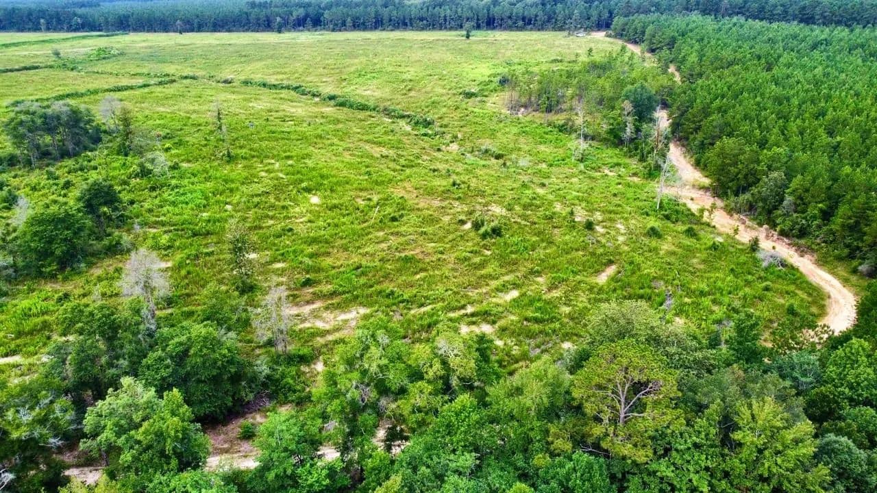 The topography on features 60’ of elevation change, transitioning from wooded high ground to sandy creek frontage. Double Branch Creek is a clear, sandy-bottom stream teeming with native flora and fauna, offering not only a scenic border but also a vital water source for wildlife. The tract offers a thoughtful blend of open and timbered areas, with well-cut roads and trails, allowing access throughout the property by truck or ATV.