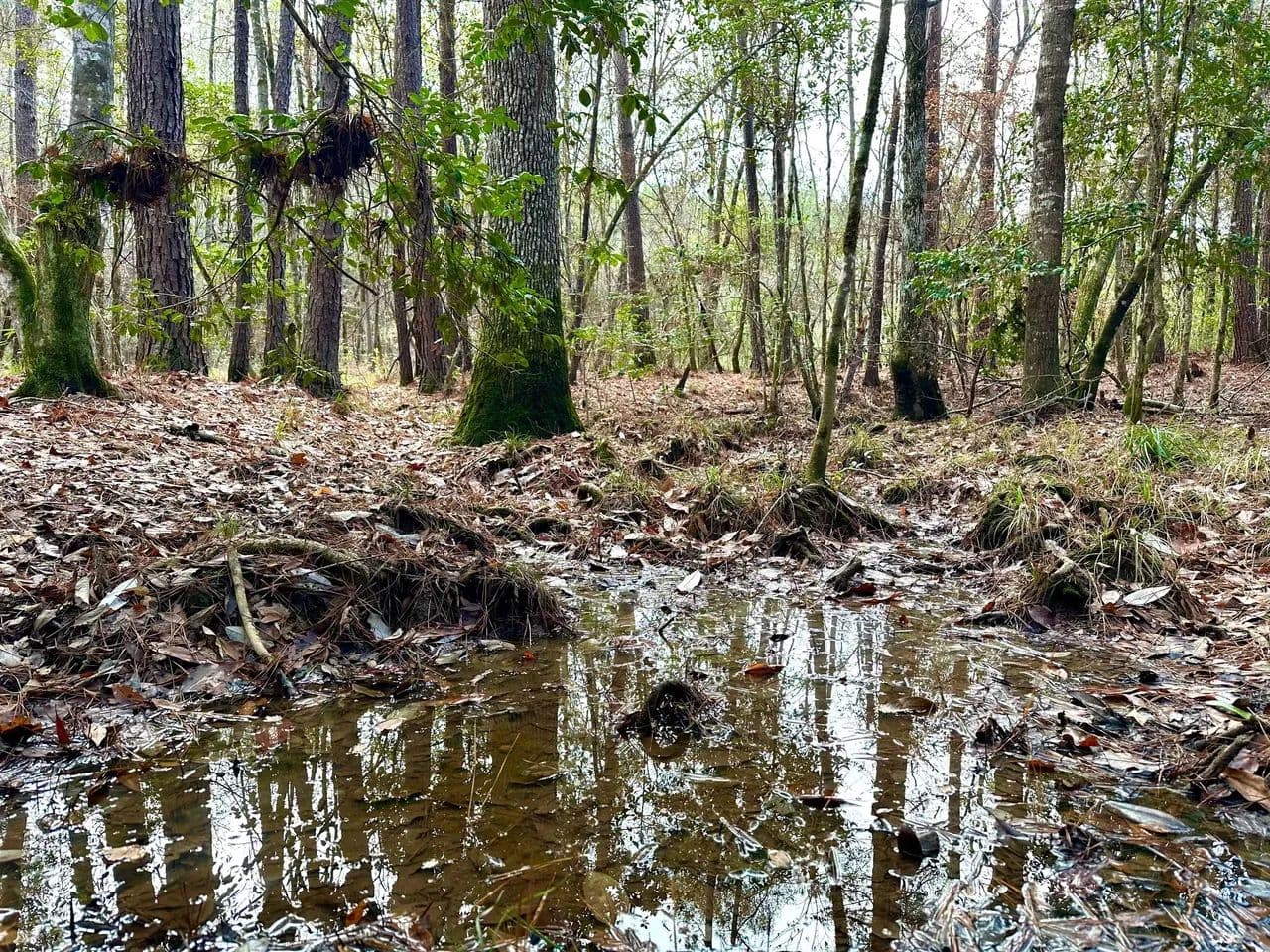 This tract is a natural magnet for East Texas wildlife. Whitetail deer, hogs, waterfowl, predators, and migratory birds thrive in the blend of hardwood, pine, and edge habitat. The diversity of terrain, water, and vegetation creates a year-round haven for hunting, wildlife observation, or conservation stewardship.