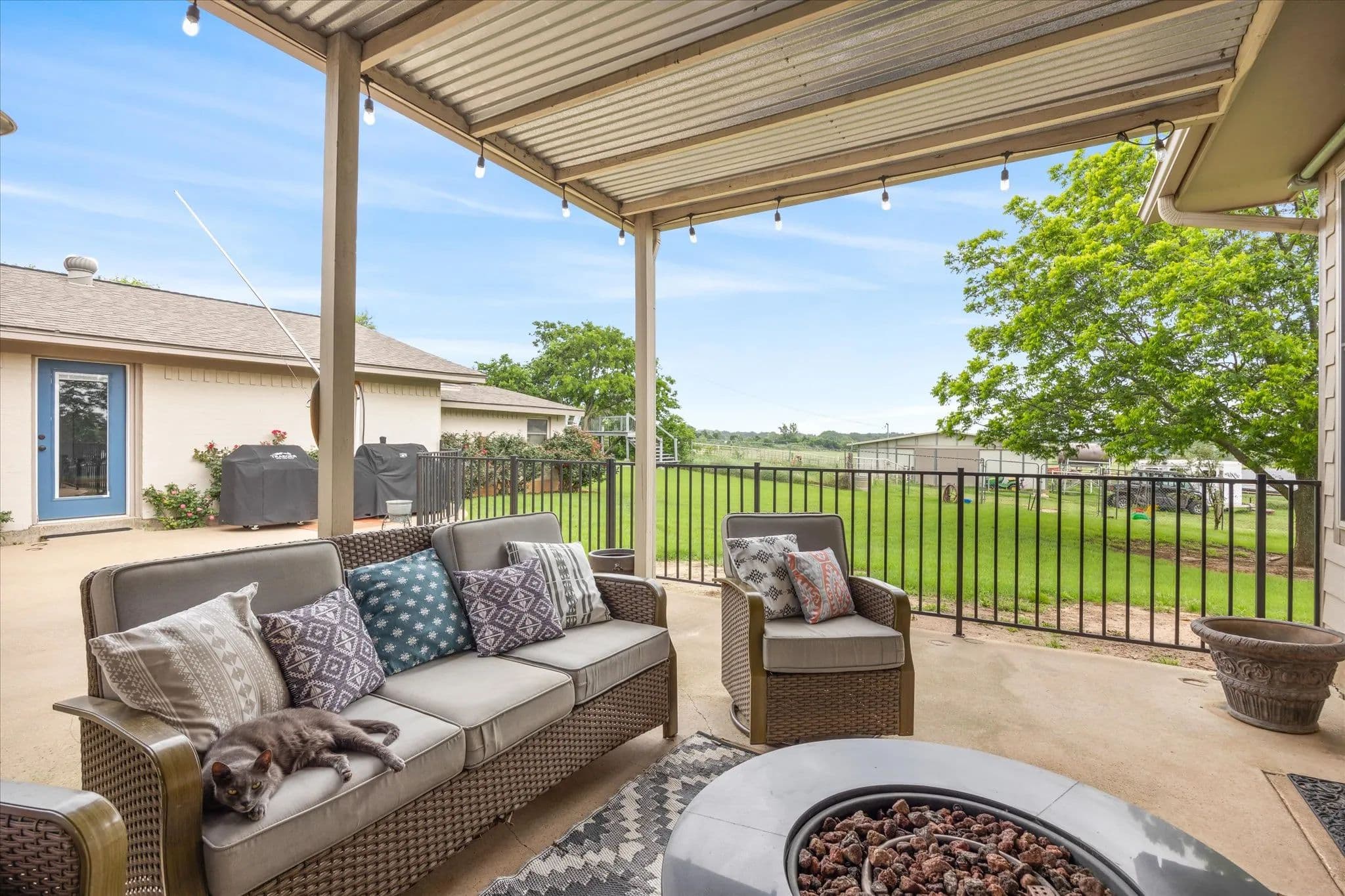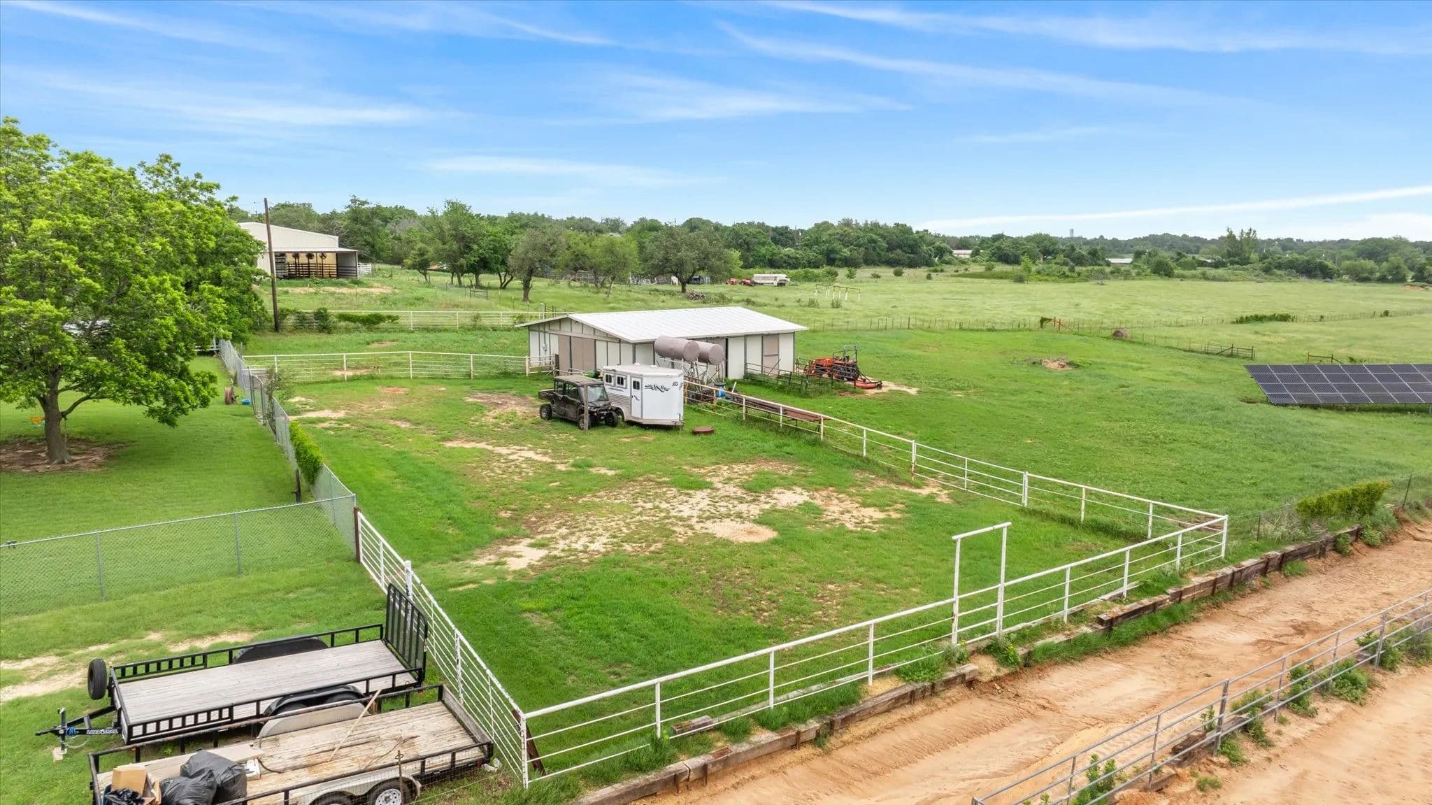 This 14-acre horse property is ideally located on a paved road just on the edge of Stephenville, TX. From the moment you step inside this beautifully remodeled, split-level home, you'll feel right at home. The owners spared no detail when updating the property. Featuring 4 bedrooms and 3 bathrooms, this home offers a comfortable and spacious layout, perfect for families or anyone needing room to spread out. The large living room boasts a wood-burning fireplace, and the expansive dining area is ideal for gatherings. An office provides a quiet space for those working from home. Three of the four bedrooms are located on the main level, including a generously sized master suite. Downstairs, you'll find a guest room with a full bath and a separate entrance. The converted garage serves as a workout gym with additional storage space. Enjoy cool evenings in the cozy sunroom or spend summer nights outside on the patio or in the above-ground pool. For horse enthusiasts, the property includes a 4-stall MD barn with a tack room and feed storage. The arena area offers plenty of space to expand or add roping boxes, or you can simply enjoy riding in the sandy soil. A separate entrance to the cross-fenced pastures, planted with improved coastal Bermuda grass, provides even more room for your horse operation. The owners cut hay from these pastures each year. Additionally, solar panels and backup batteries ensure you're prepared for any emergency. This property has everything you need to enjoy country living at its finest!