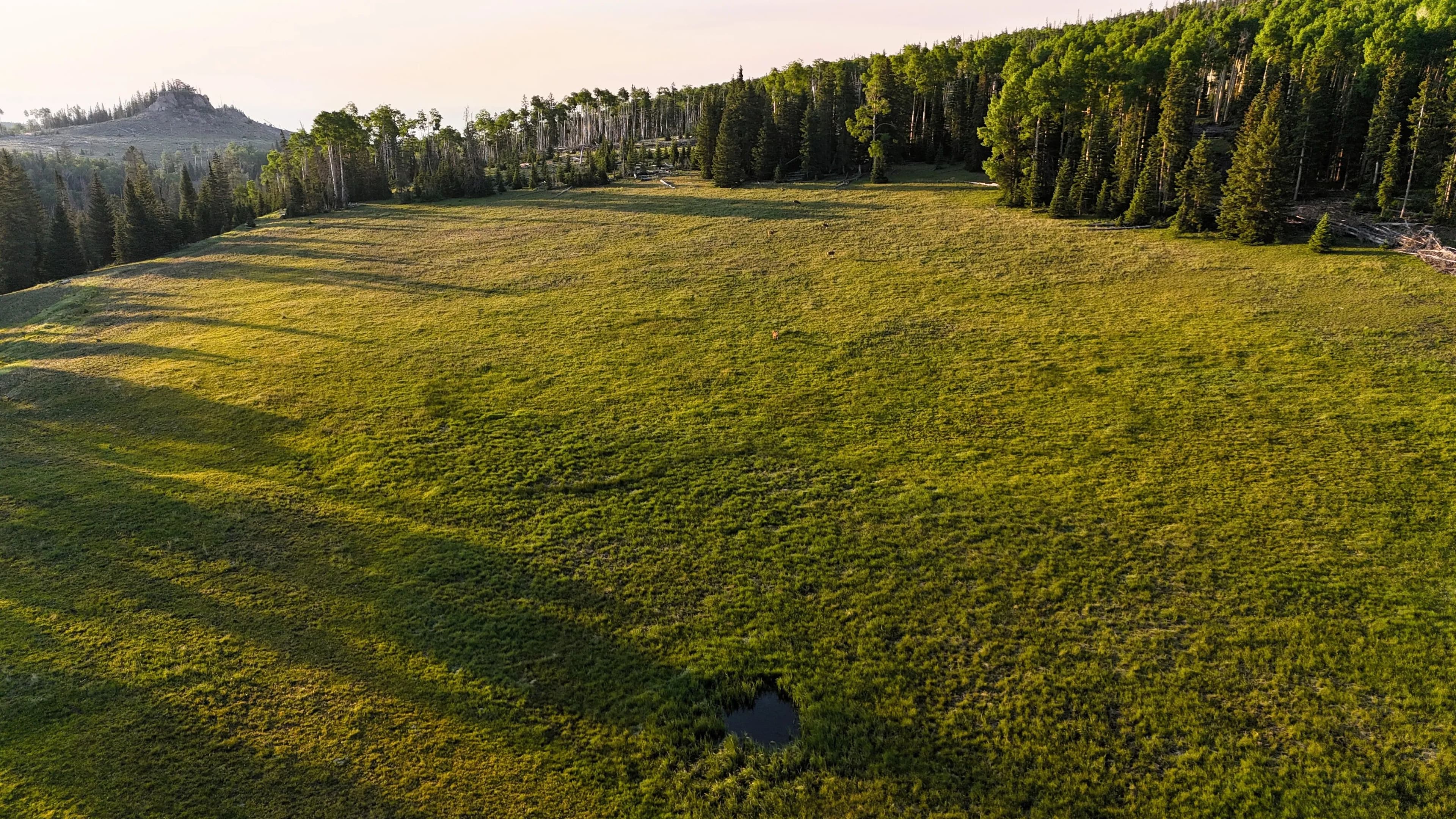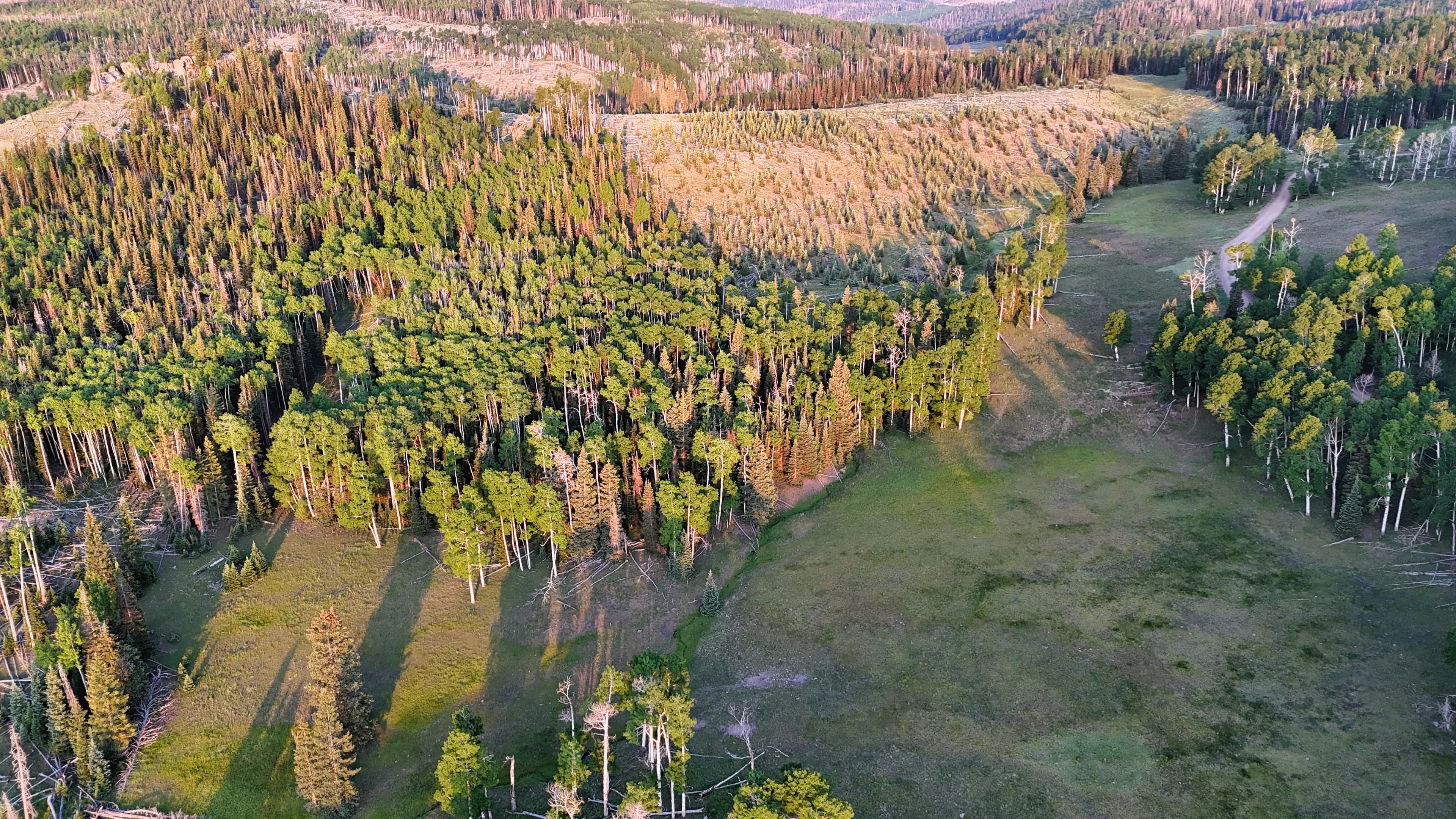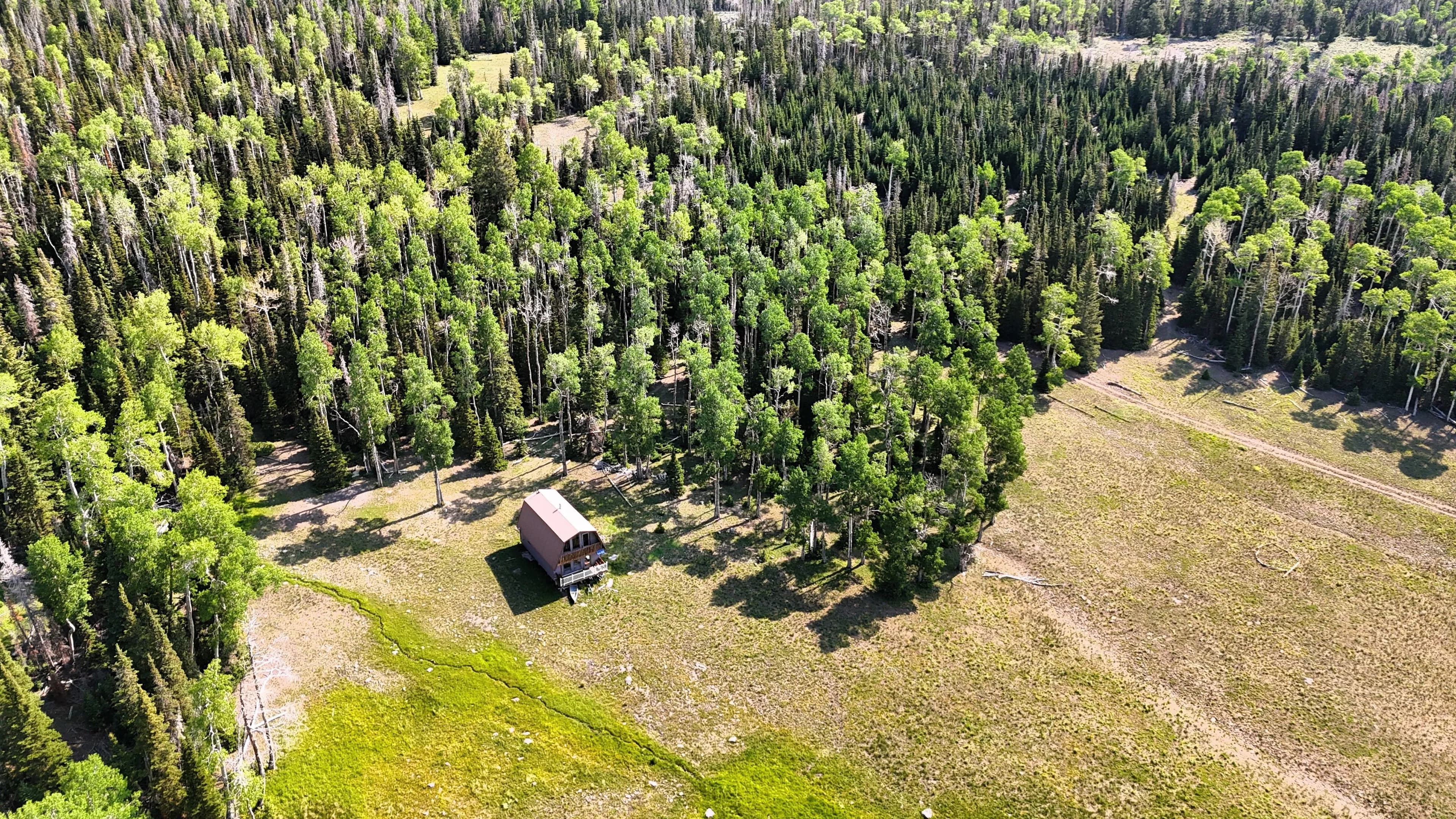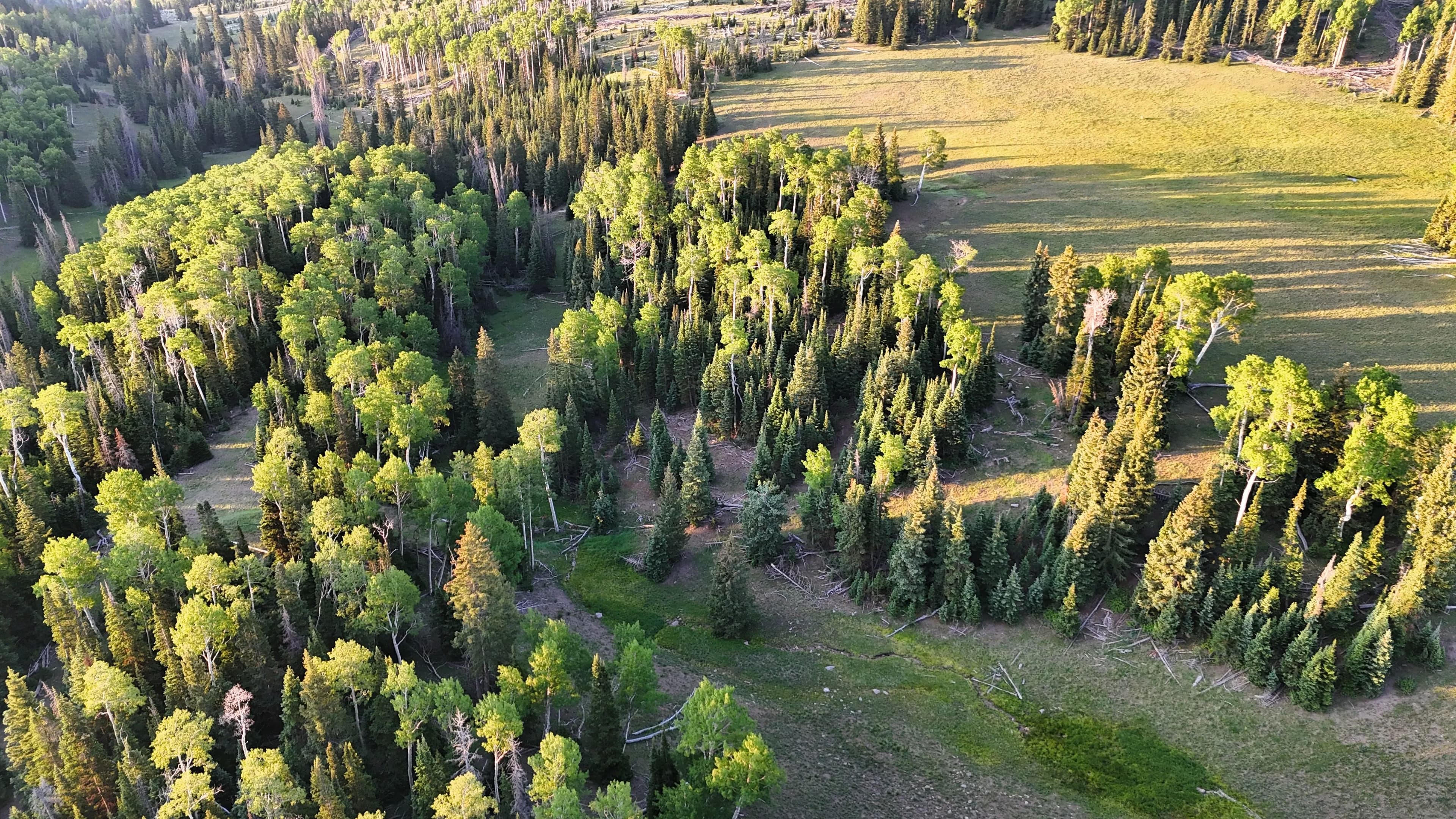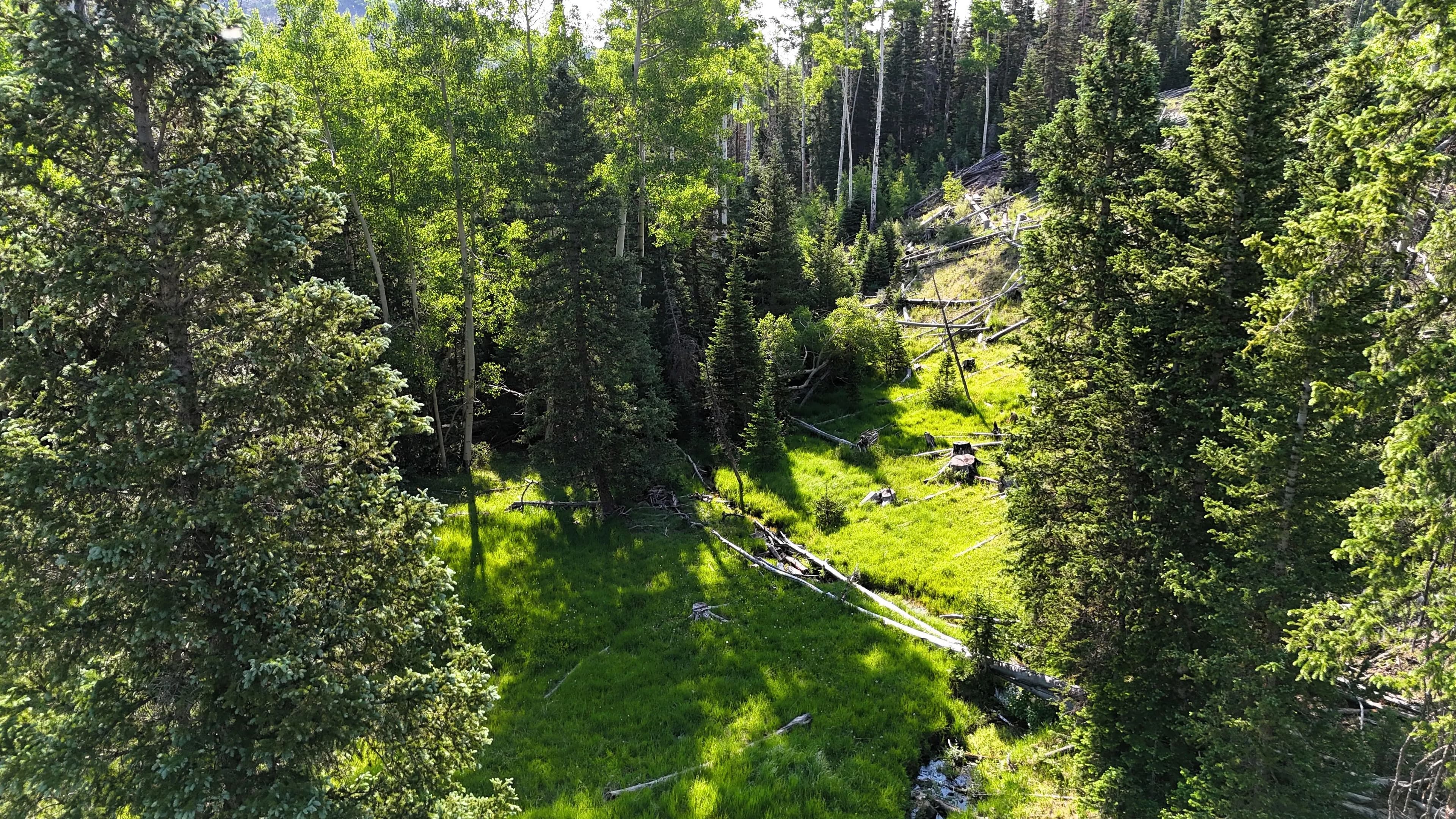 This square mile of high-elevation meadows is outlined with aspens and pines and full of wildlife. The same owners have been well managing this property for decades, taking time to remove stagnant stands of pines and encourage new growth, aspens, and abundant meadows. Elk, mule deer, and a myriad of other species are present across the property, using the meadows, old-growth forests, and abundant water to their advantage. Several small creeks flow through the property, providing over 1.5 miles of running water.