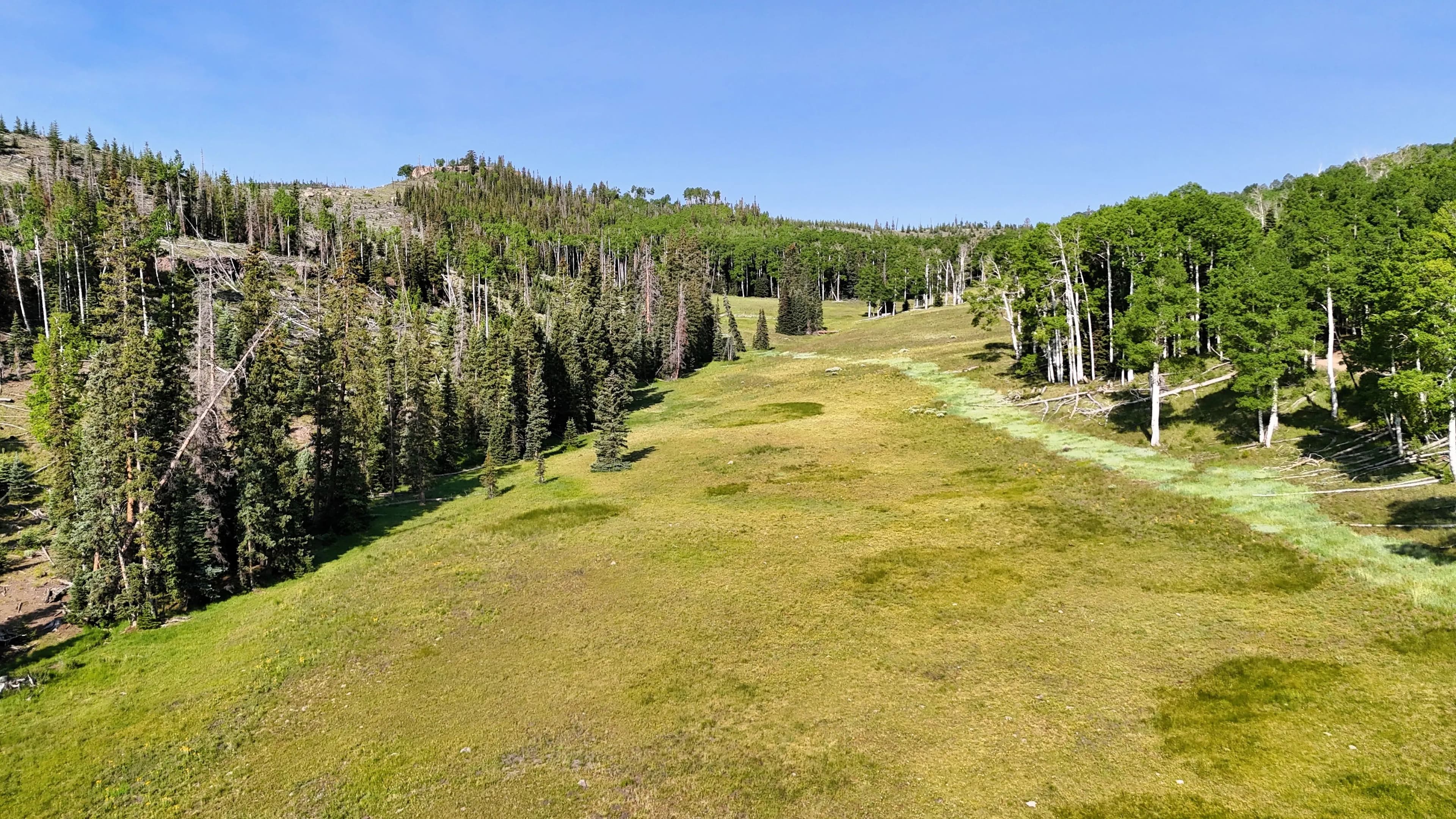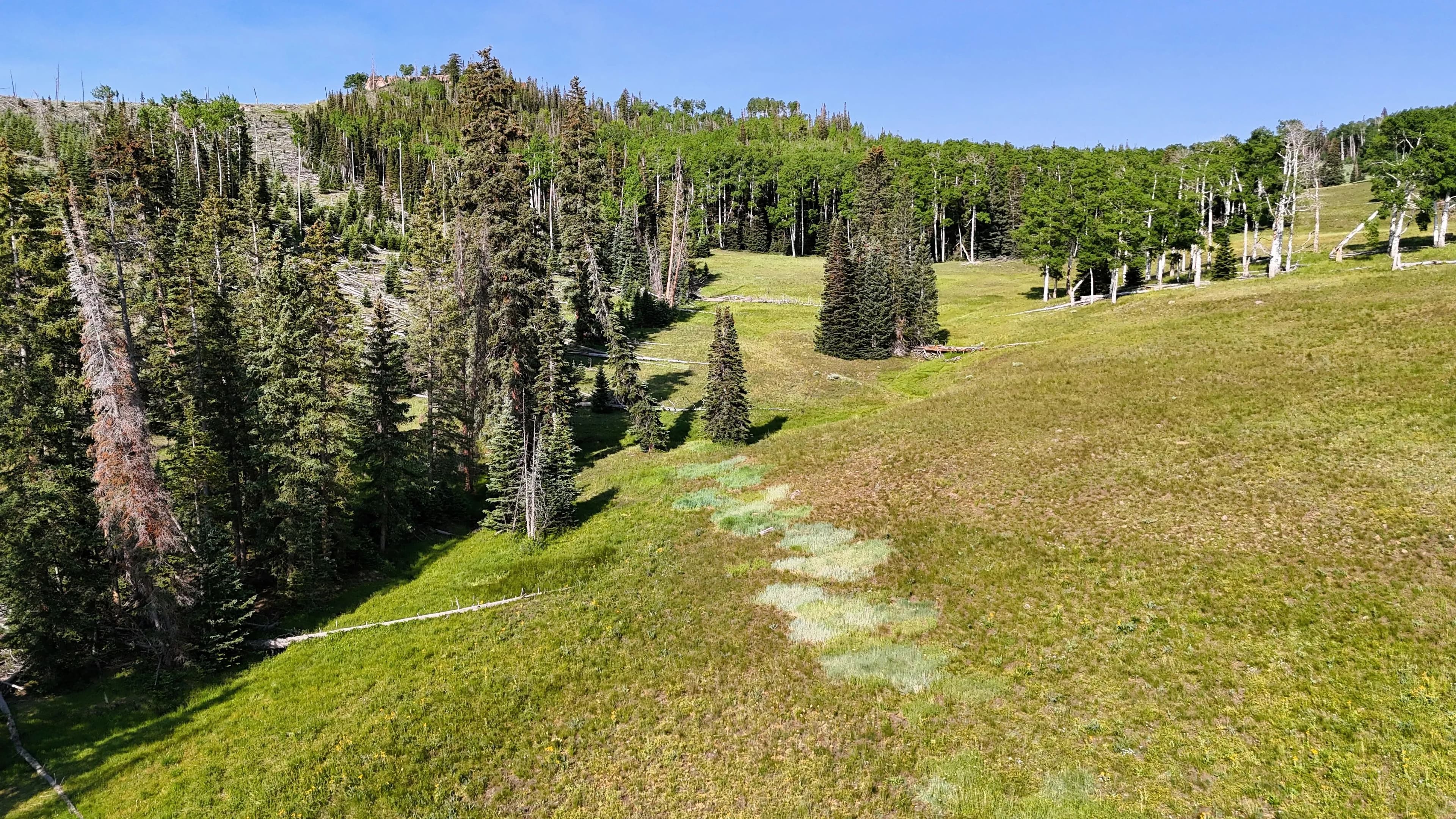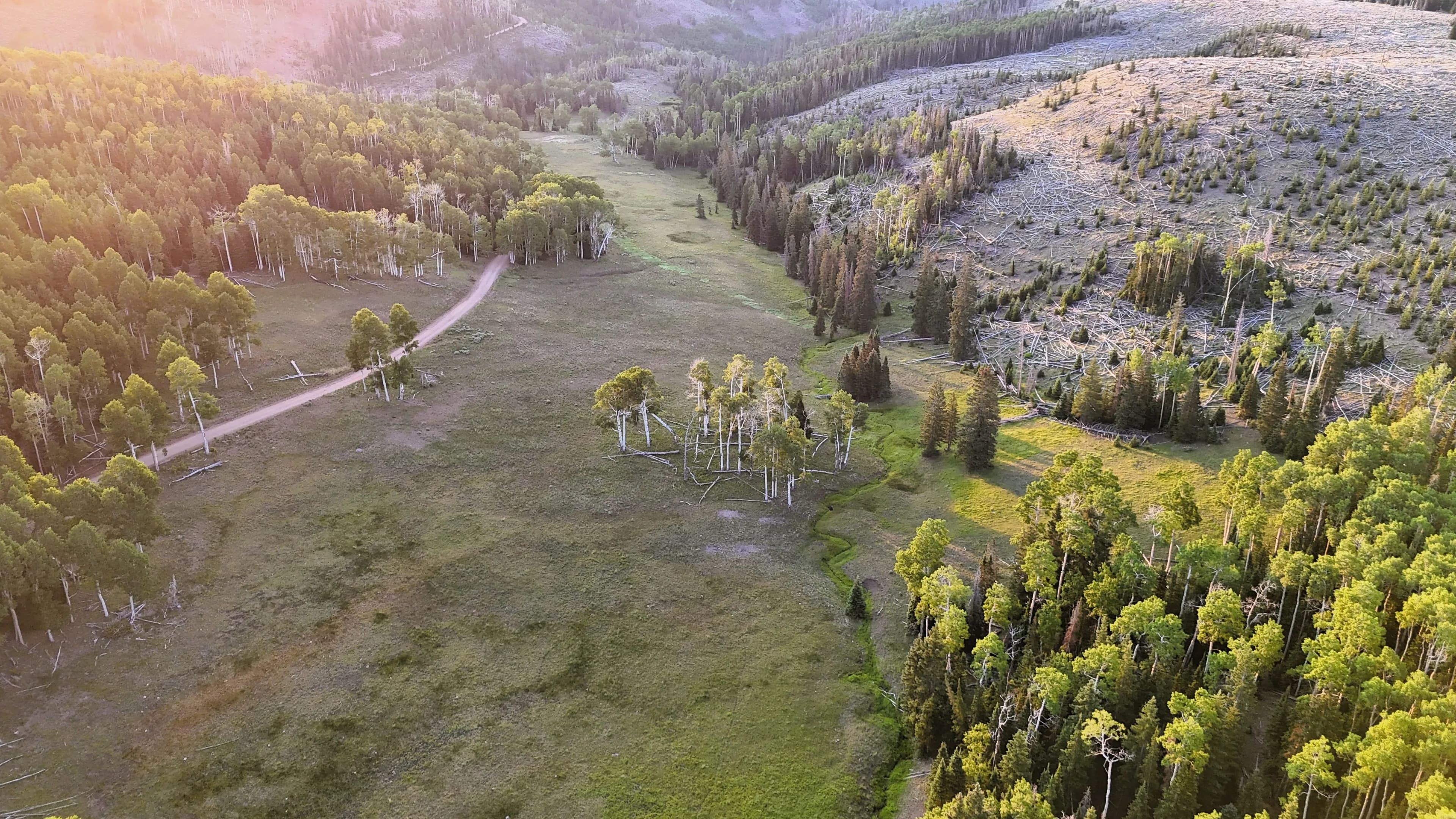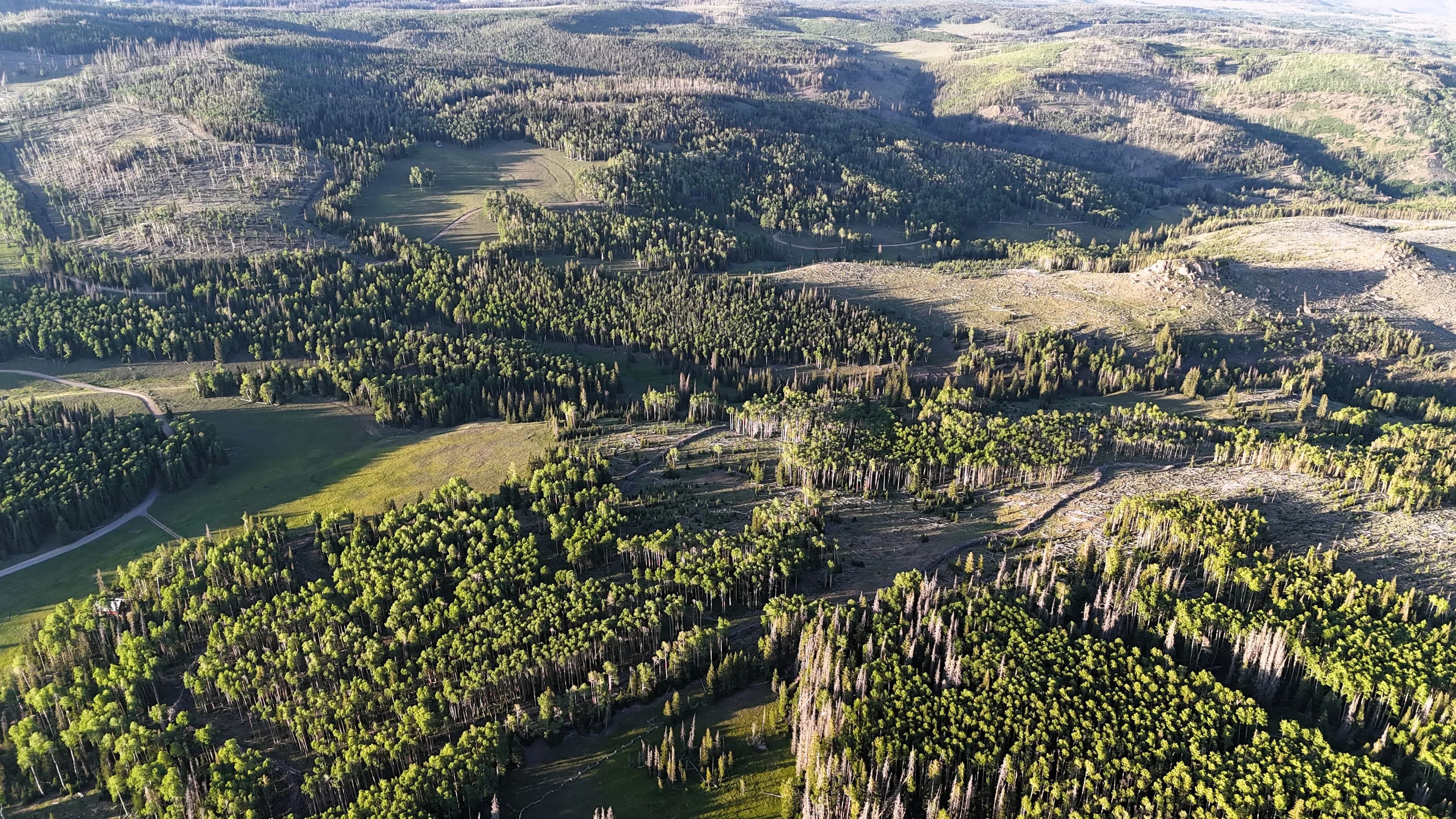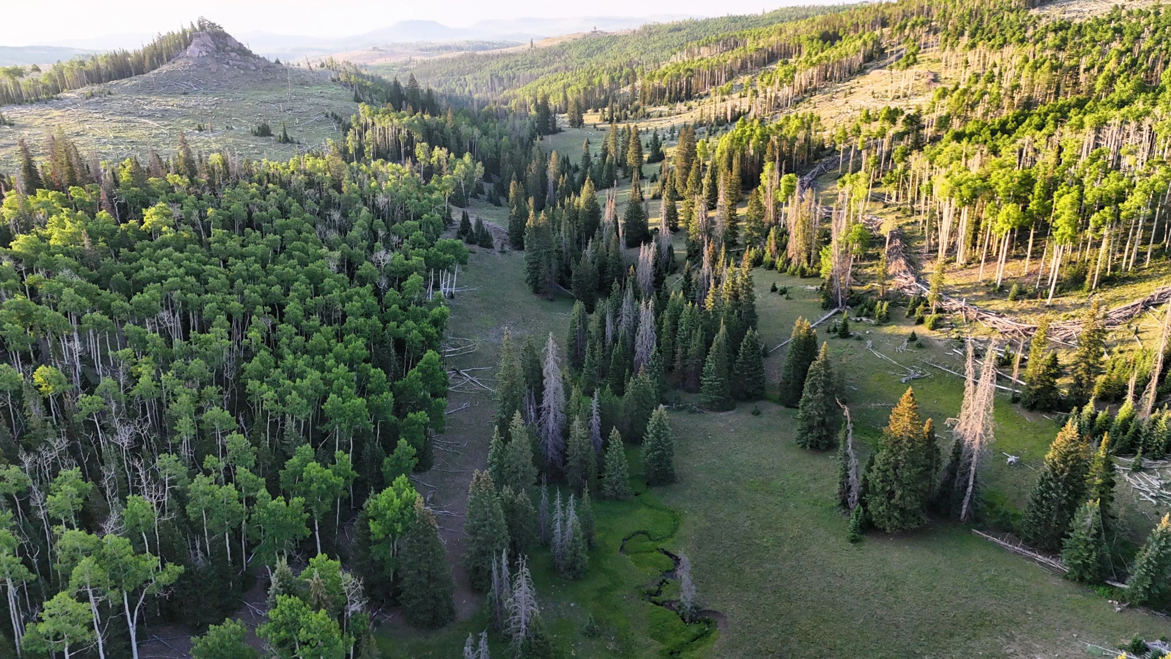 This square mile of high-elevation meadows is outlined with aspens and pines and full of wildlife. The same owners have been well managing this property for decades, taking time to remove stagnant stands of pines and encourage new growth, aspens, and abundant meadows. Elk, mule deer, and a myriad of other species are present across the property, using the meadows, old-growth forests, and abundant water to their advantage. Several small creeks flow through the property, providing over 1.5 miles of running water.