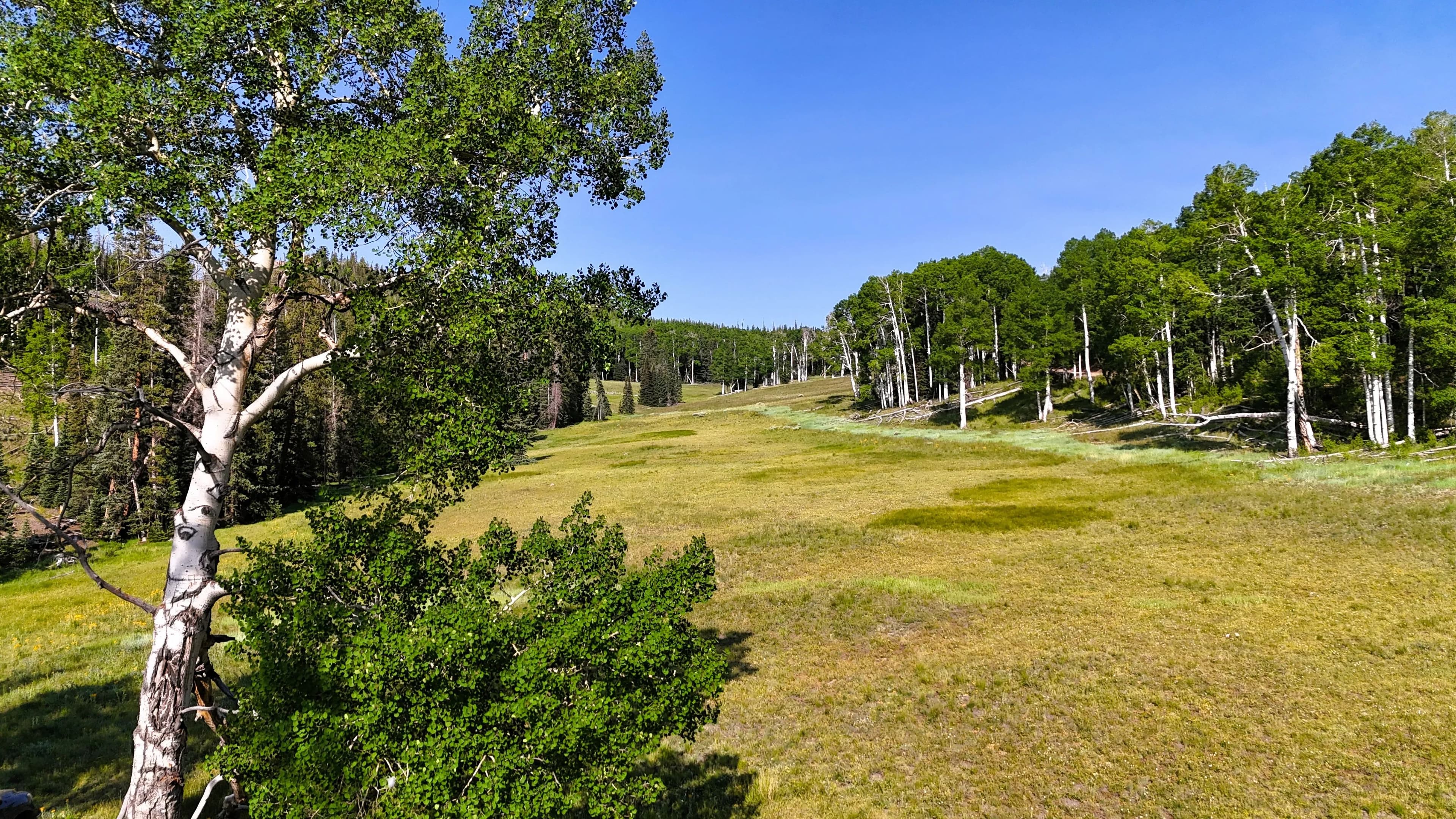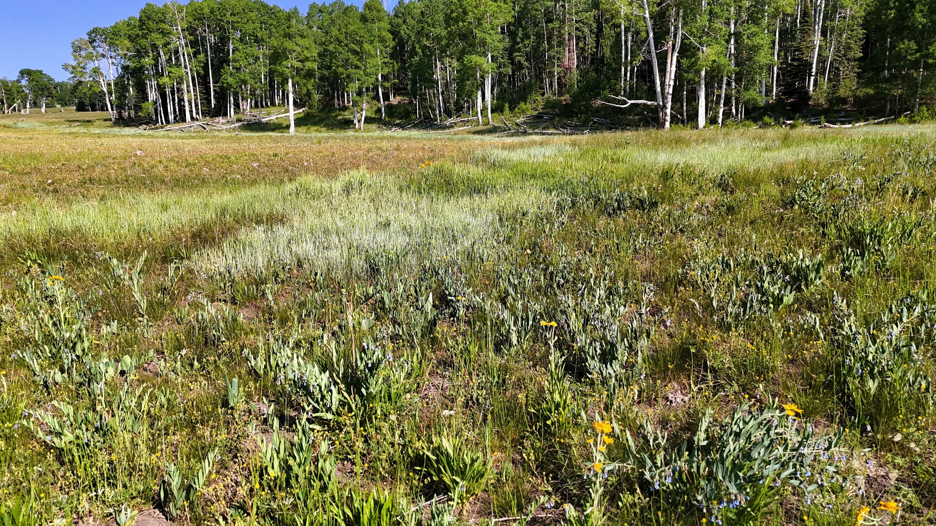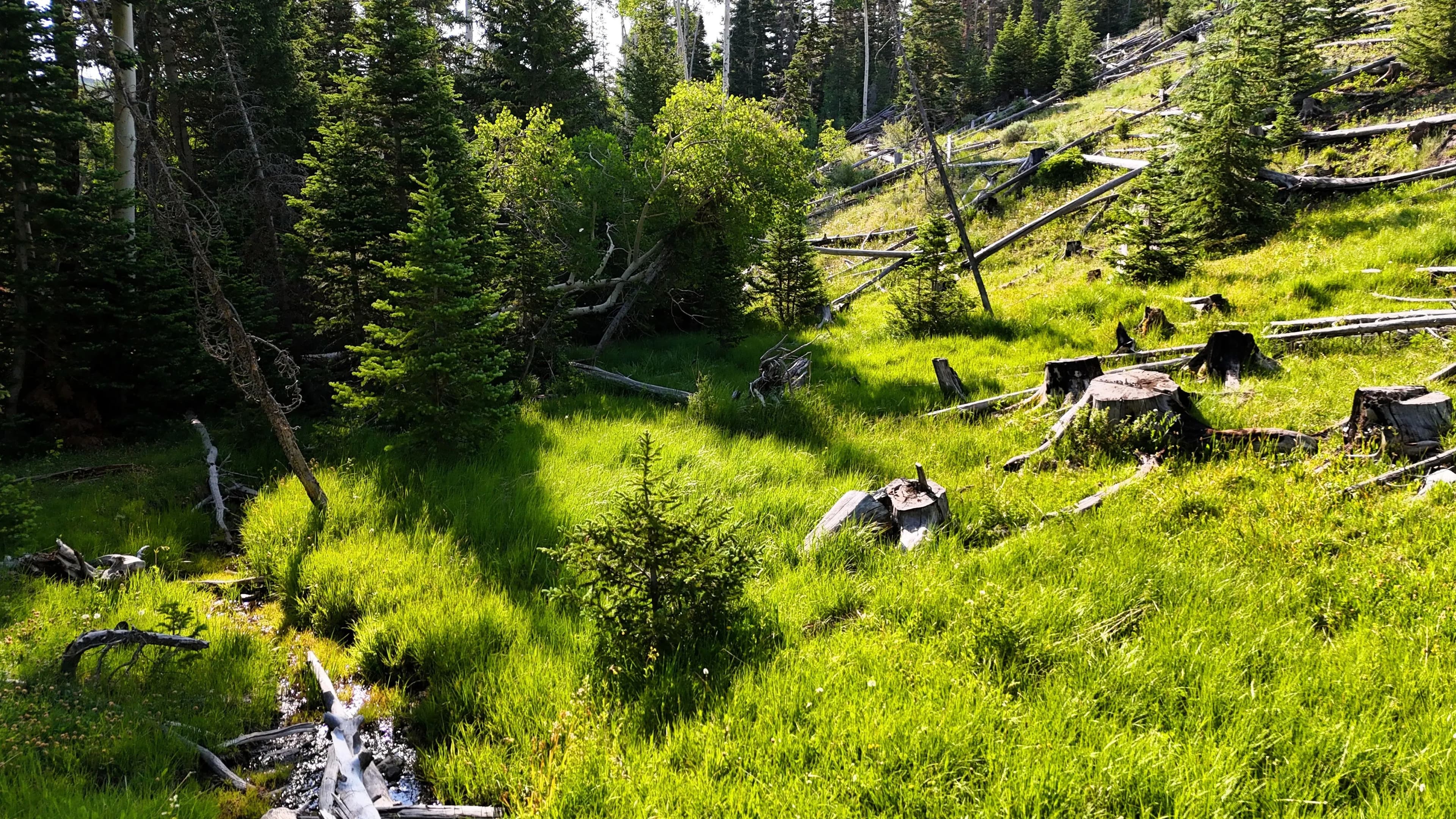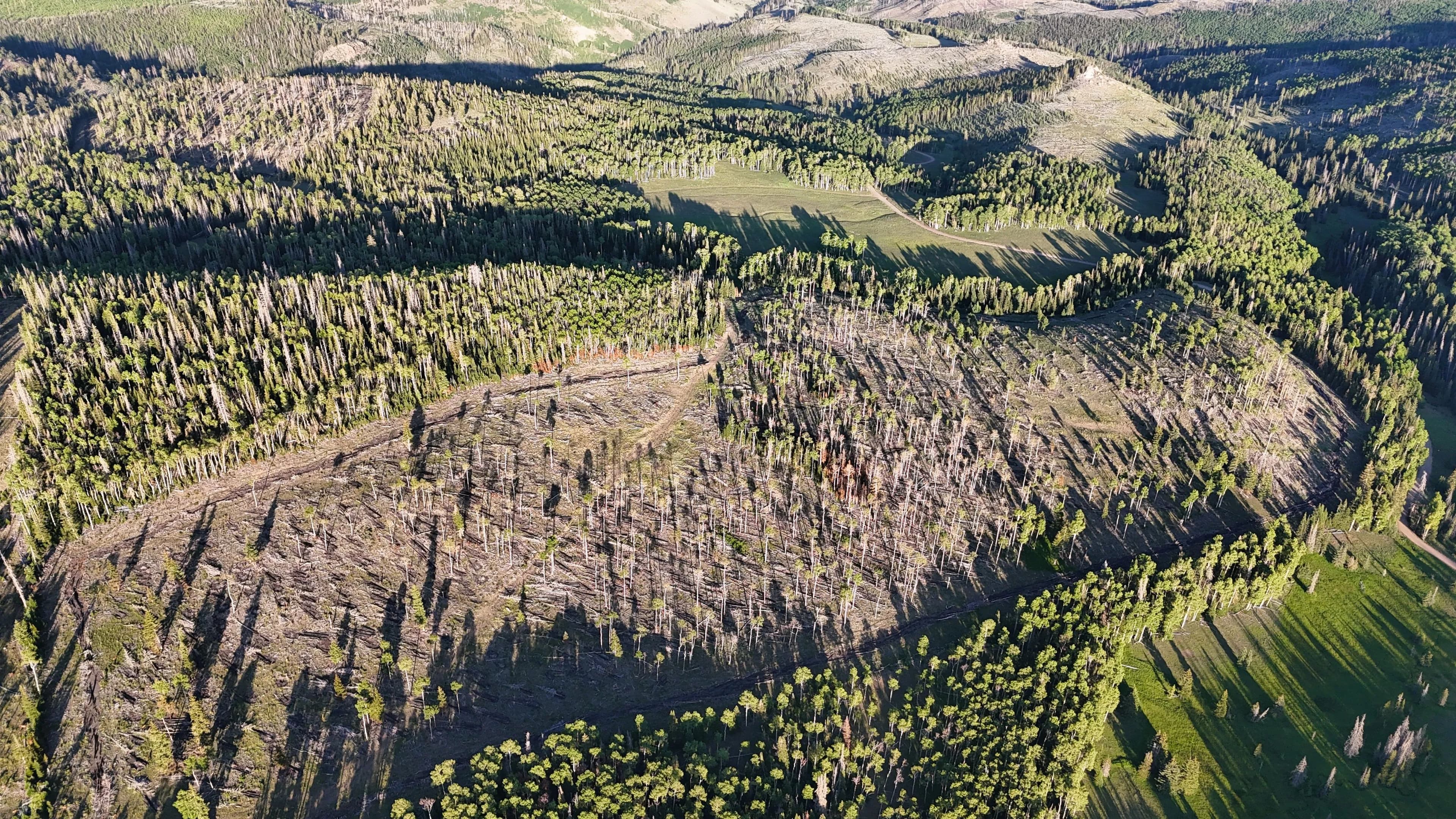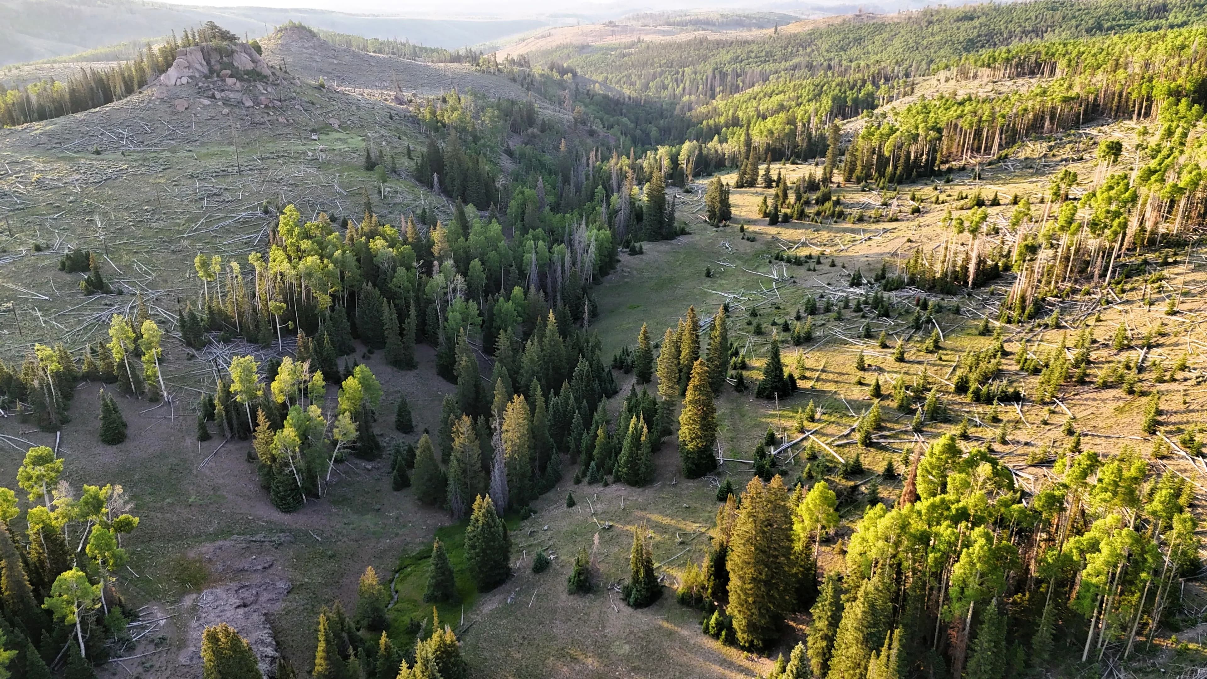 This square mile of high-elevation meadows is outlined with aspens and pines and full of wildlife. The same owners have been well managing this property for decades, taking time to remove stagnant stands of pines and encourage new growth, aspens, and abundant meadows. Elk, mule deer, and a myriad of other species are present across the property, using the meadows, old-growth forests, and abundant water to their advantage. Several small creeks flow through the property, providing over 1.5 miles of running water.