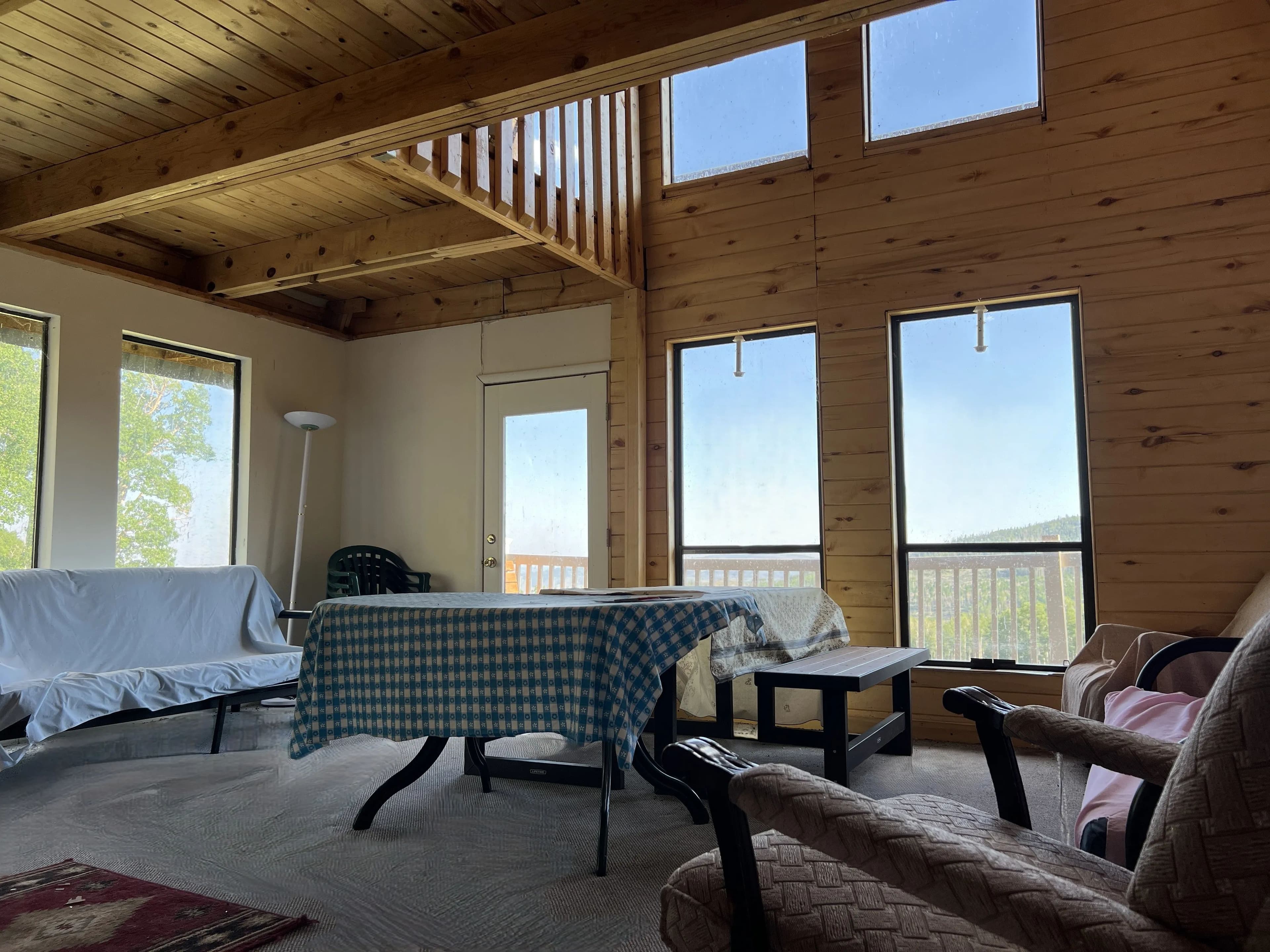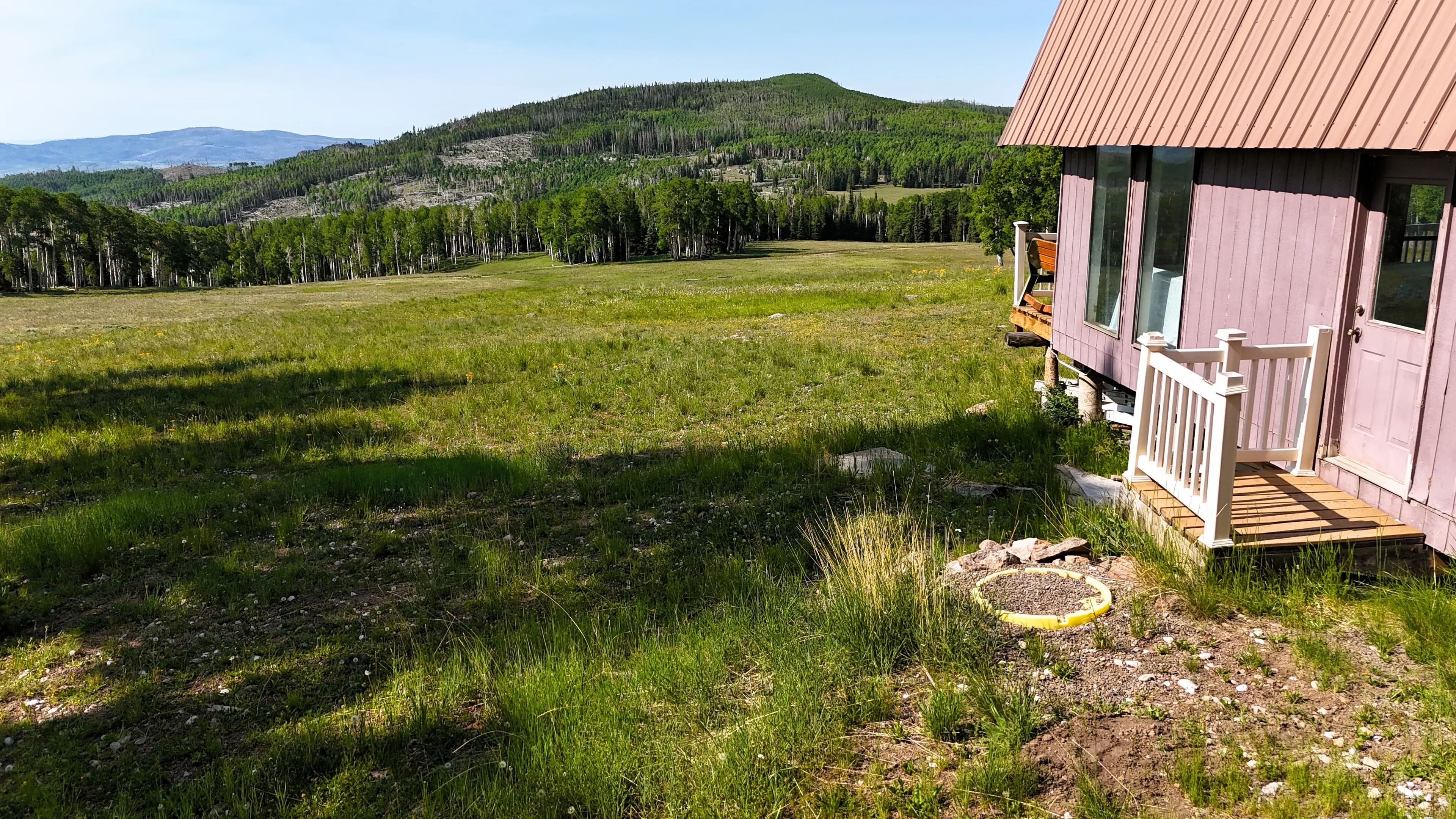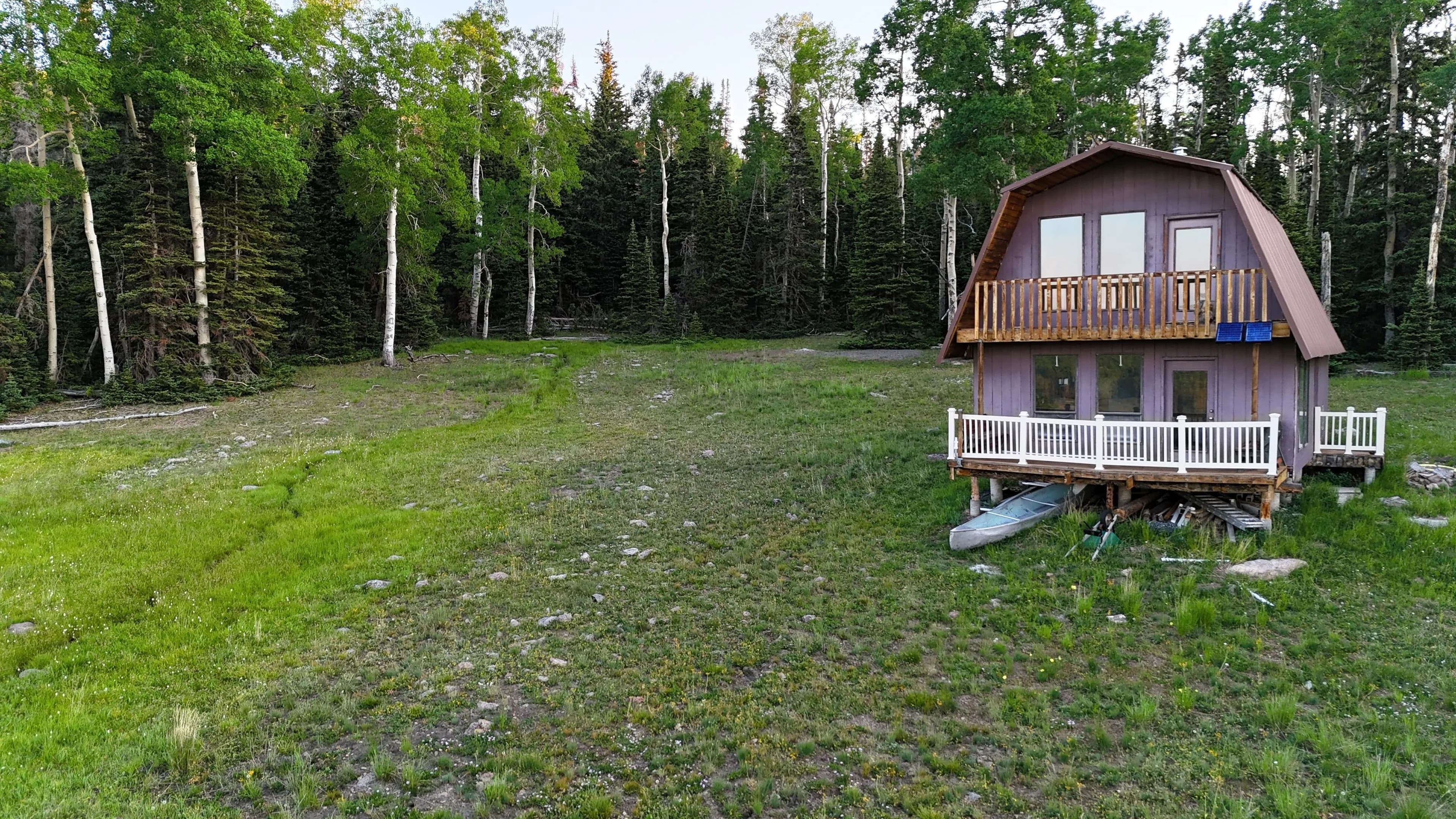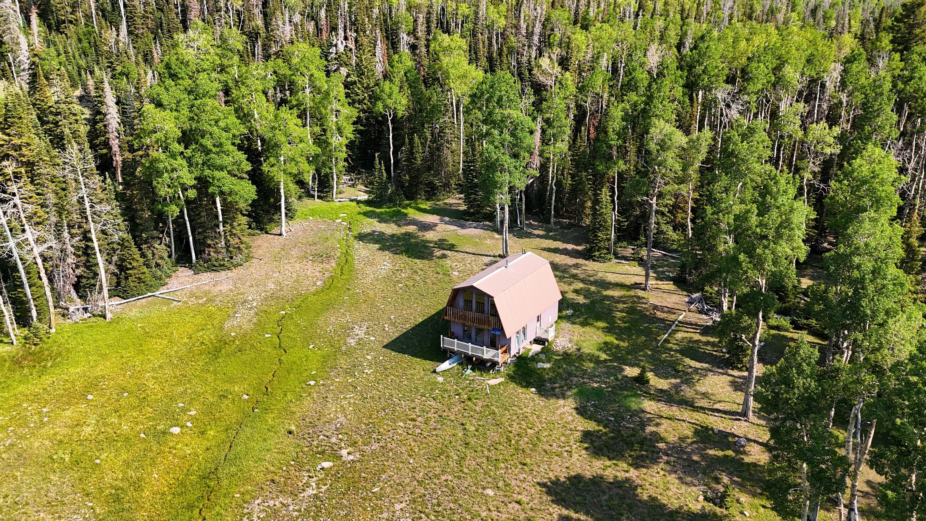 The cabin itself is 24’ x 36’, a 2-bedroom /1 bathroom with a loft, wood paneling, and a kitchen, dining area, and storage. The floor-to-ceiling wall of windows overlooks the property itself and provides plenty of natural light throughout. A deck and upstairs porch further add to the opportunities for wildlife viewing and enjoying looking over the mountain meadow, wildlife, and abundant trees. With the road access and multiple flat, clear areas, this parcel provides multiple additional cabin sites and would be well suited for subdividing with power lines running 1,400 feet from the Western border.