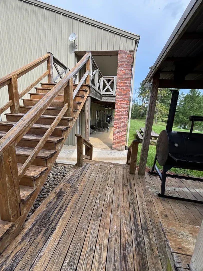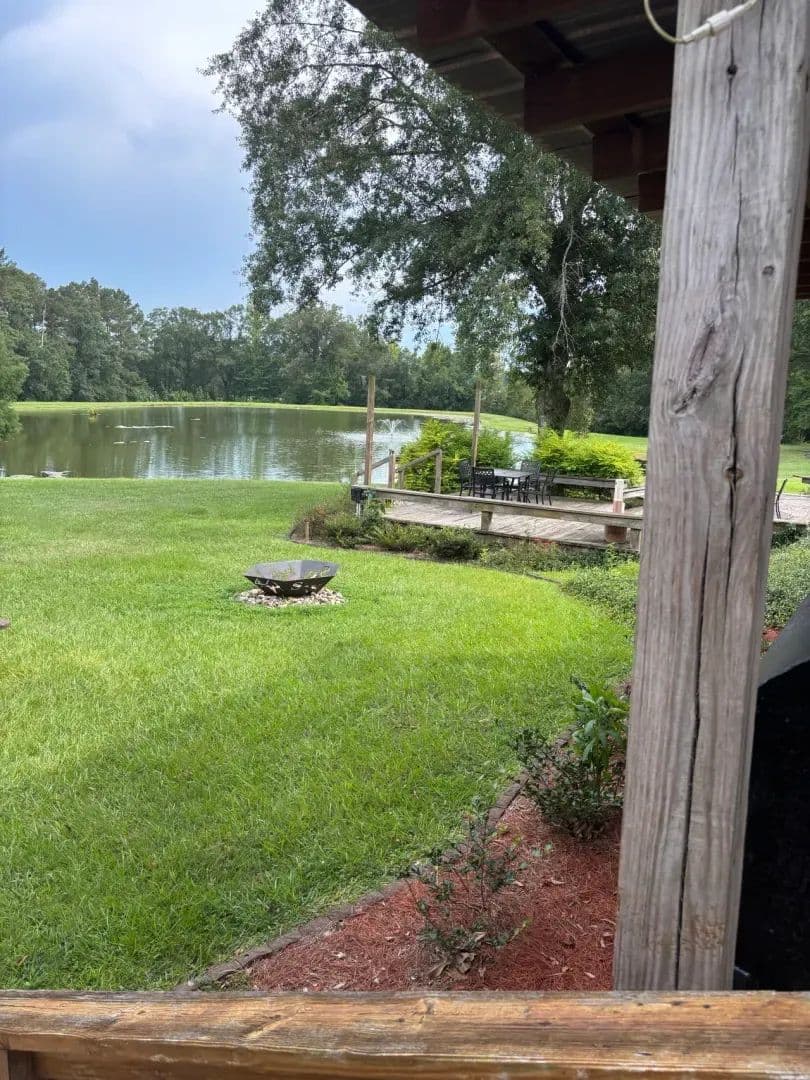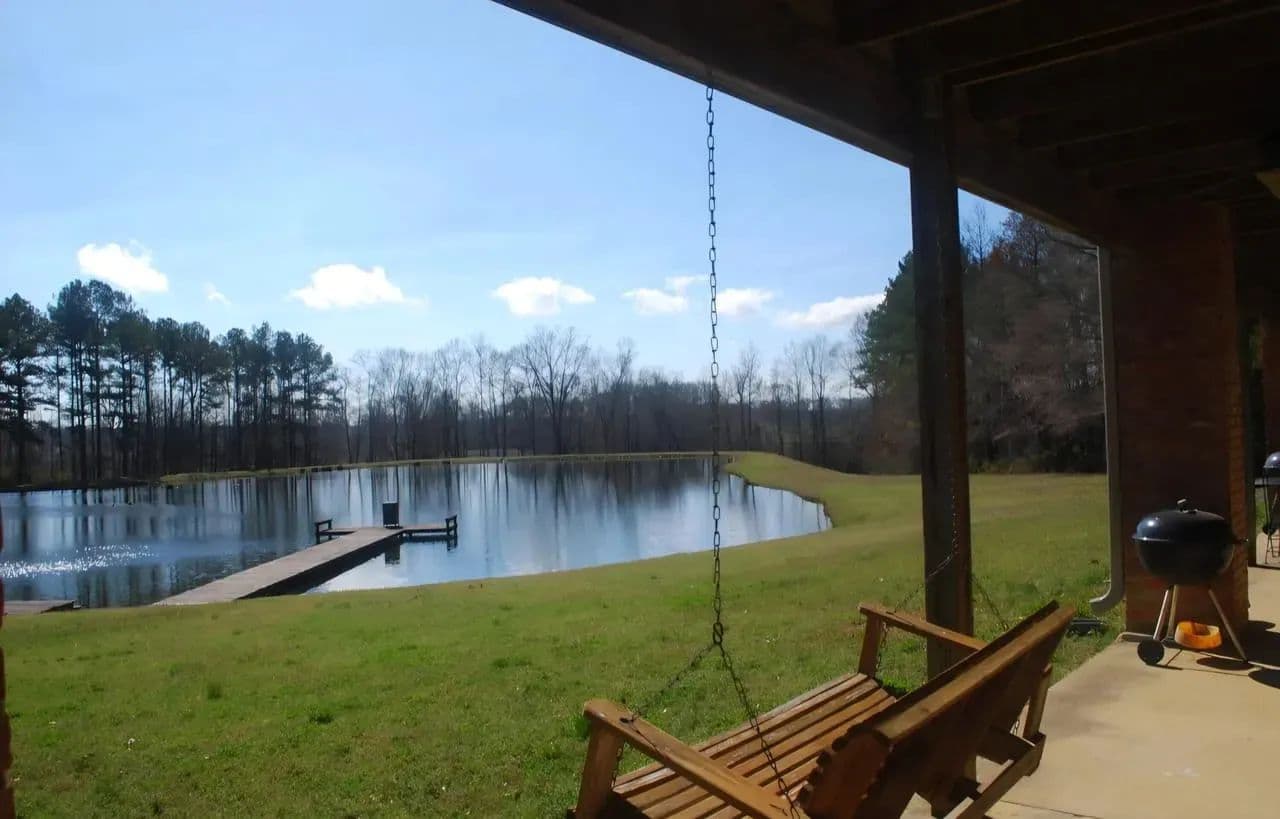 Back porch lake views, and easy access to shared outdoor amenities like a fire pit, grill, and smoker area (implied by the property's overall amenities) for gatherings and relaxation.