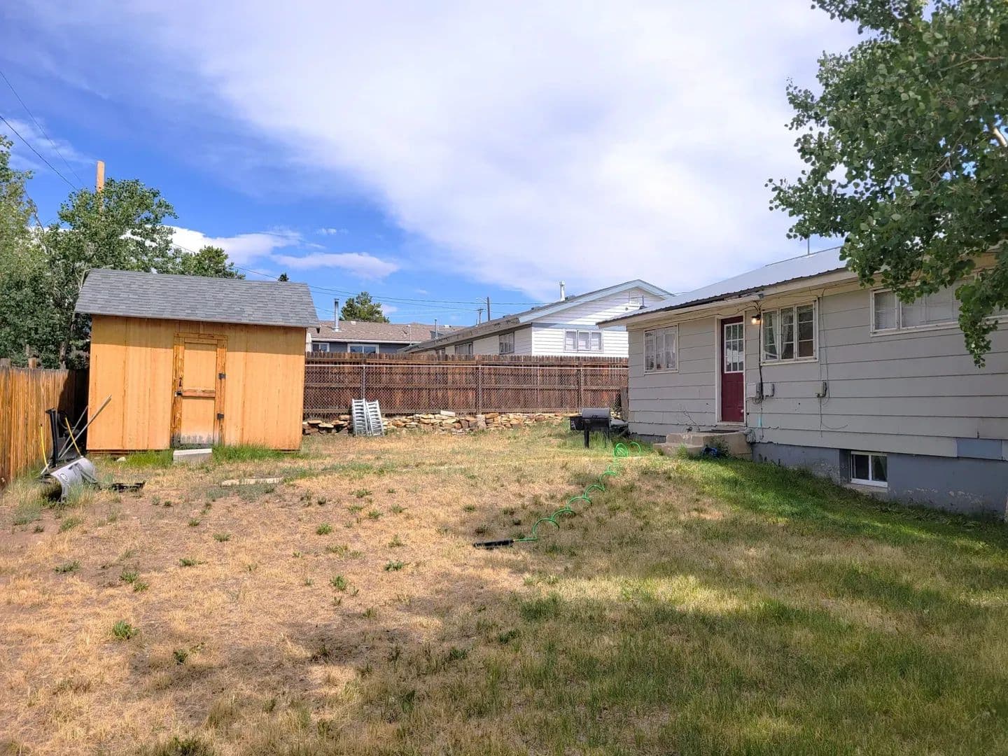 Improvements The home features a recently updated kitchen and 2 full bathrooms. Features include wood-grained flooring throughout the living room, dining room and both bathrooms, and upgraded tile in the kitchen. The full basement features the second bath and full family living area as well as a separate office/workout room. Head outside to the large, privacy fenced back yard and enjoy the shade of the mature aspen trees. The 12×12 storage shed provides great space for your yard tools, equipment and outdoor adventure toys.