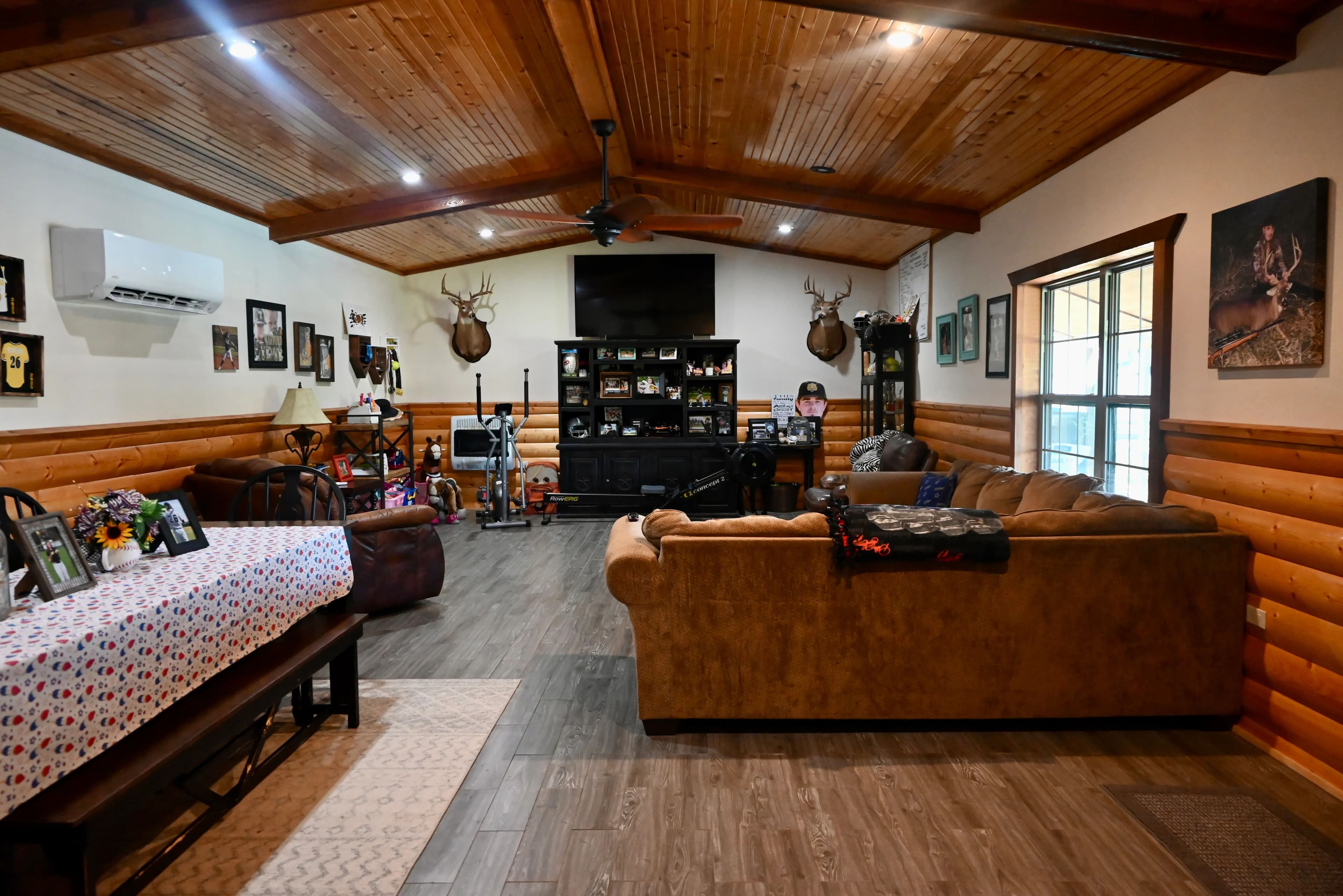The property includes a 2,600 sq. ft. metal shop with an attached awning ideal for equipment, hobbies, or additional storage.