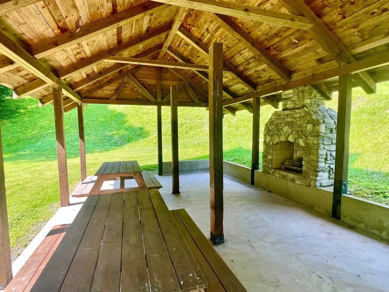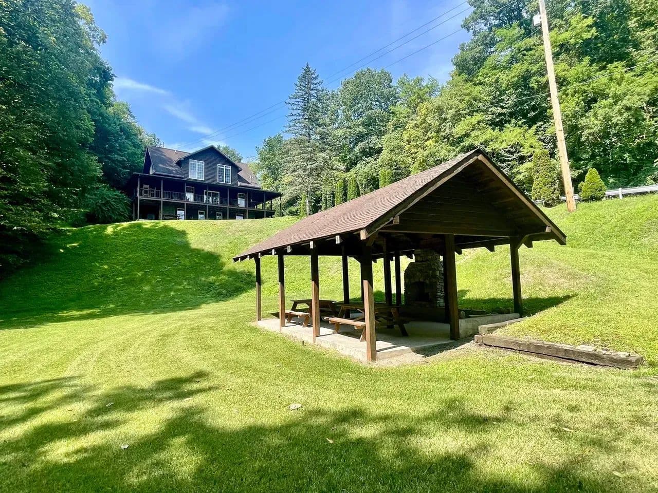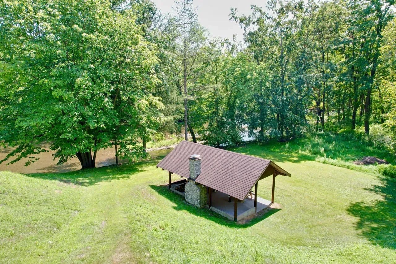 The walk-out basement is pre-plumbed for an additional full bathroom and ready for your finishing touch. Outside, a charming 16x12 riverside pavilion with a stone fireplace invites you to gather with friends, enjoy outdoor dining, or simply unwind to the soothing sound of flowing water.
