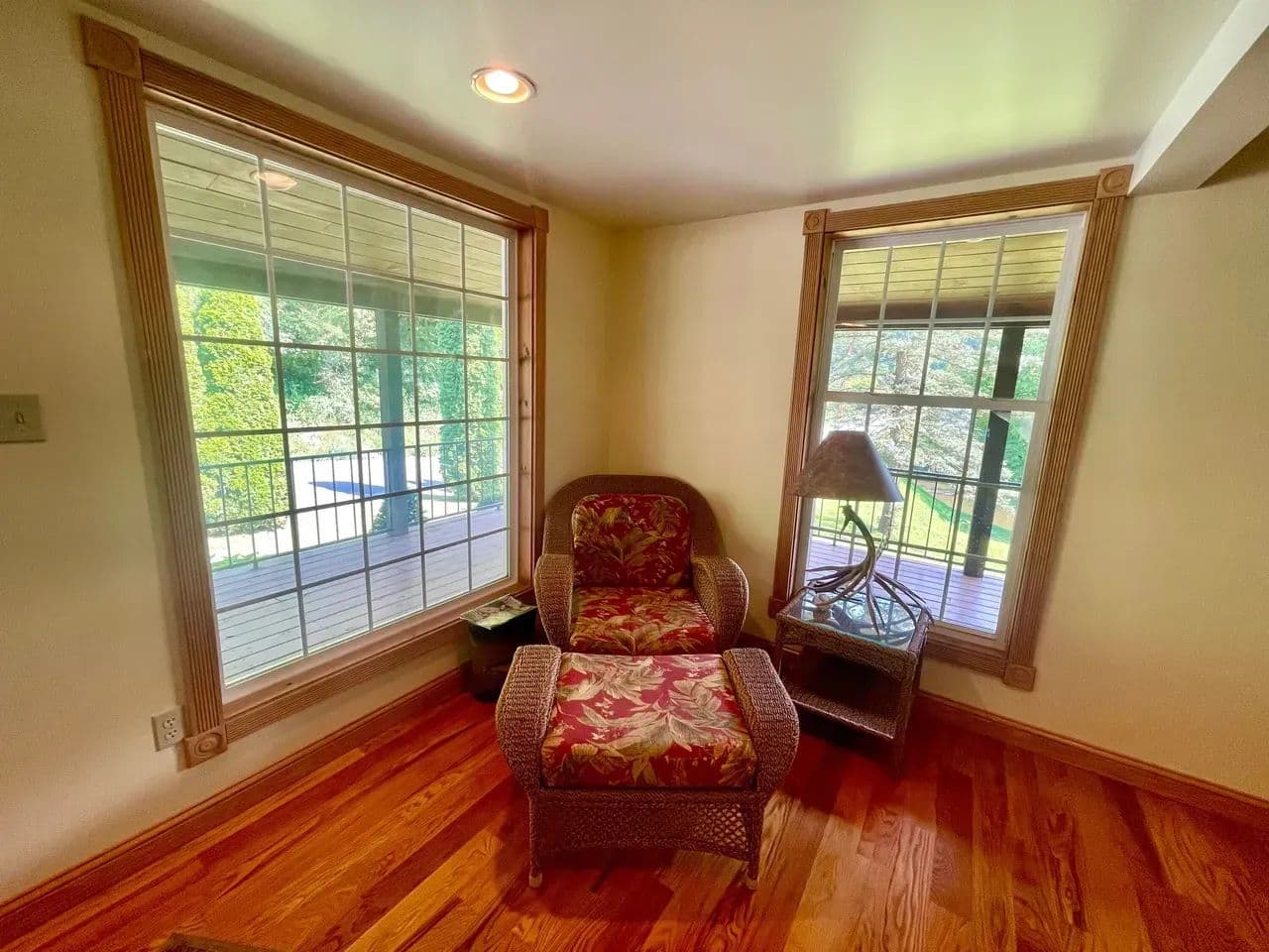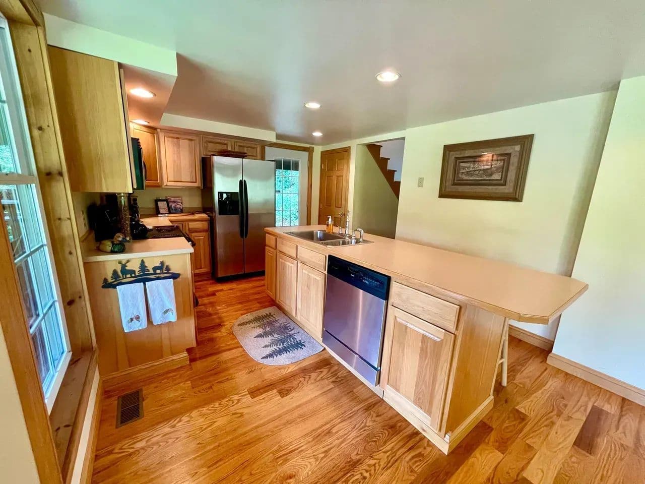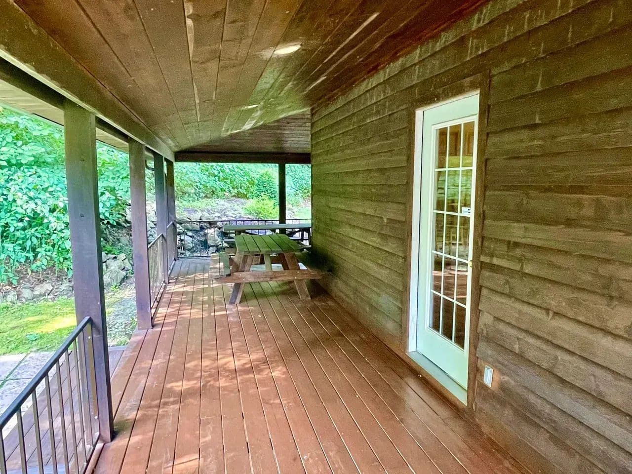 This beautifully updated 3-bedroom, 3-bath chalet, with its warm cedar siding, is nestled in a serene, wooded setting with direct river frontage. A spacious wraparound covered porch offers panoramic views and the perfect perch to relax after a day on the water. Inside, the home features hardwood flooring throughout, modernized electrical and plumbing systems, updated windows, doors, insulation, and stylish lighting fixtures—all blending rustic charm with contemporary comfort.