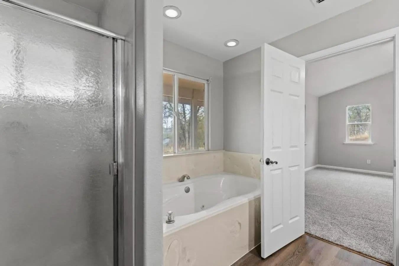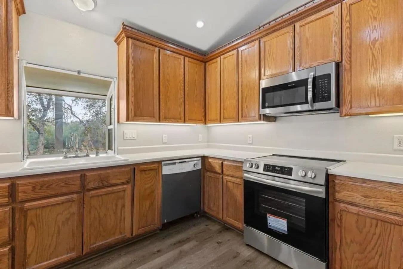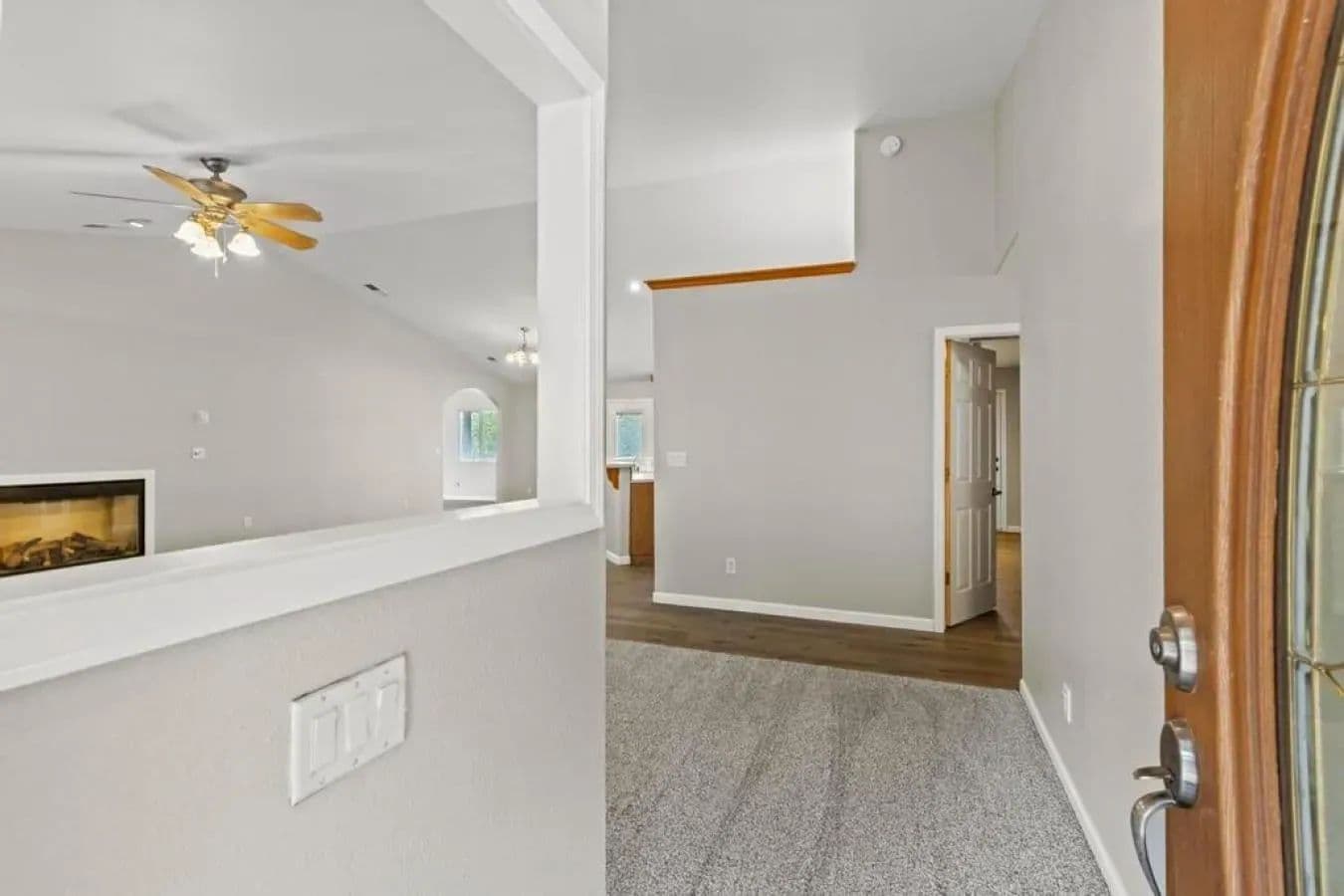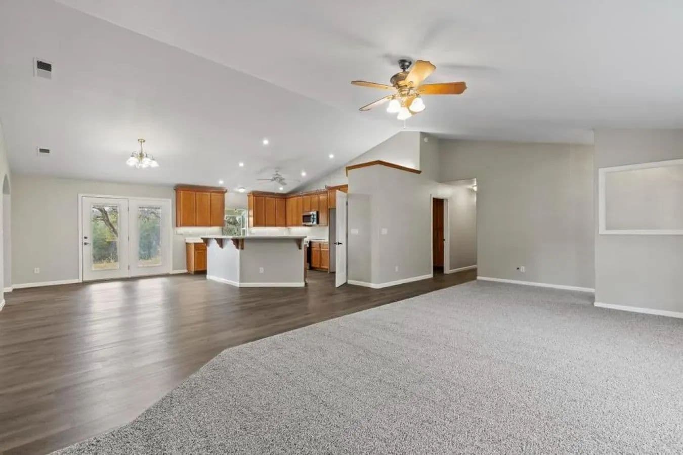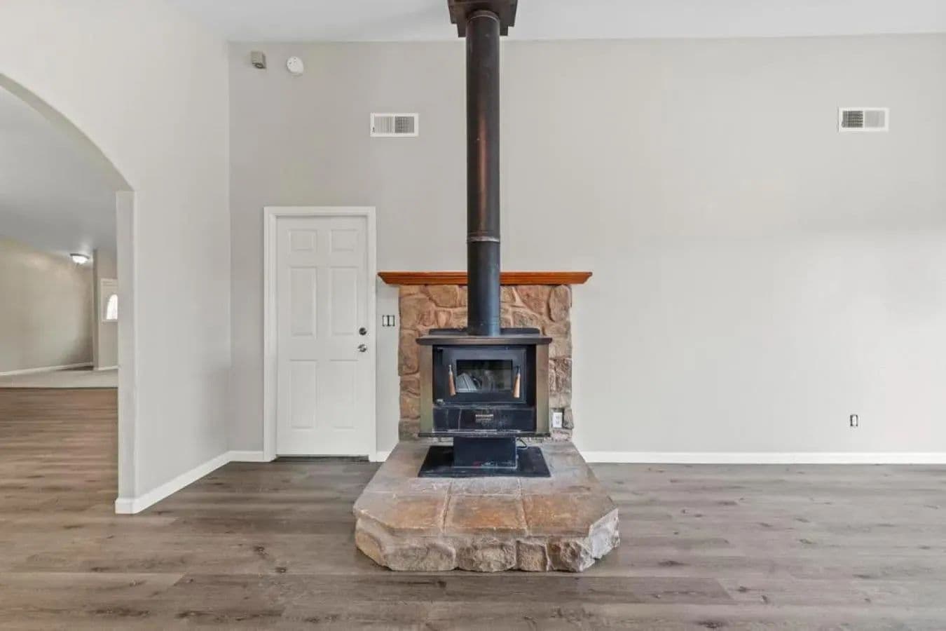 Discover ultimate privacy and breathtaking views on this expansive 10+ acre property! This spacious home offers an open floor plan, with a kitchen overlooking the family and dining rooms, which feature a gas fireplace and vaulted ceilings. A versatile bonus room with a wood-burning stove and outside access could serve as a second living room or be converted into guest quarters. The kitchen is equipped with a pantry closet and garden window. The primary suite is a true retreat with vaulted ceilings, walk-in closet, outside access, and bathroom featuring a separate tub, shower, and dual sinks. The spacious hall bath boasts a skylight and double sinks, while the large laundry room offers abundant storage. Recent updates include new flooring and fresh interior paint throughout, as well as a tankless water heater for added efficiency. Outside, enjoy the serenity of nature from two long covered patios on each side of the house, perfect for morning coffee or evening relaxation. Wildlife abounds, with deer and turkeys frequenting the property, adding to the peaceful ambiance. With over 10 acres and BVID irrigation water, it's perfect for animals. Plus, a pad is ready for a shop if you desire additional workspace. This private, gated property with all the conveniences and plenty of space to make it your own!