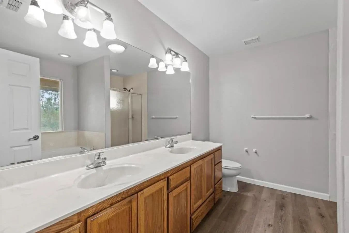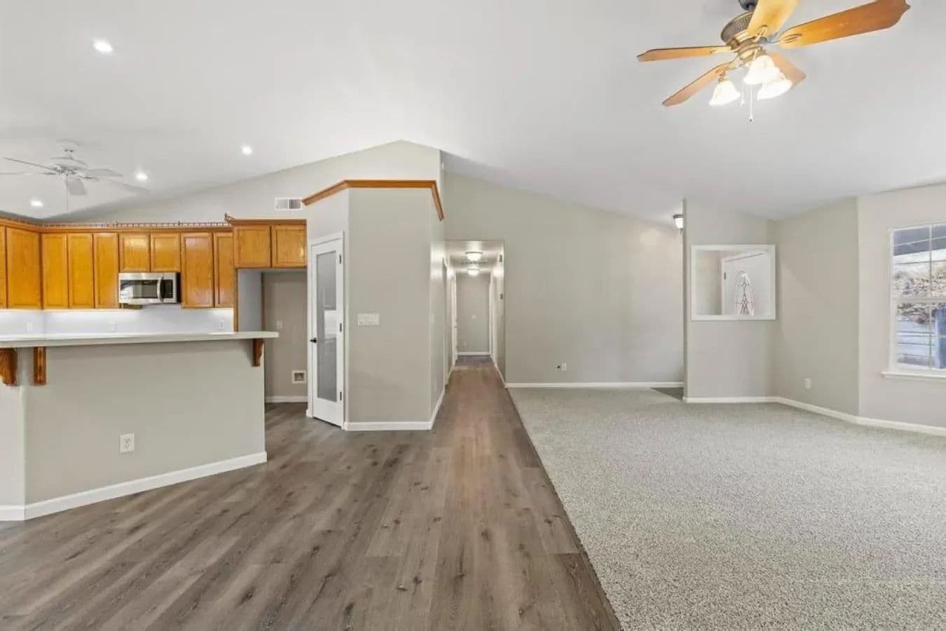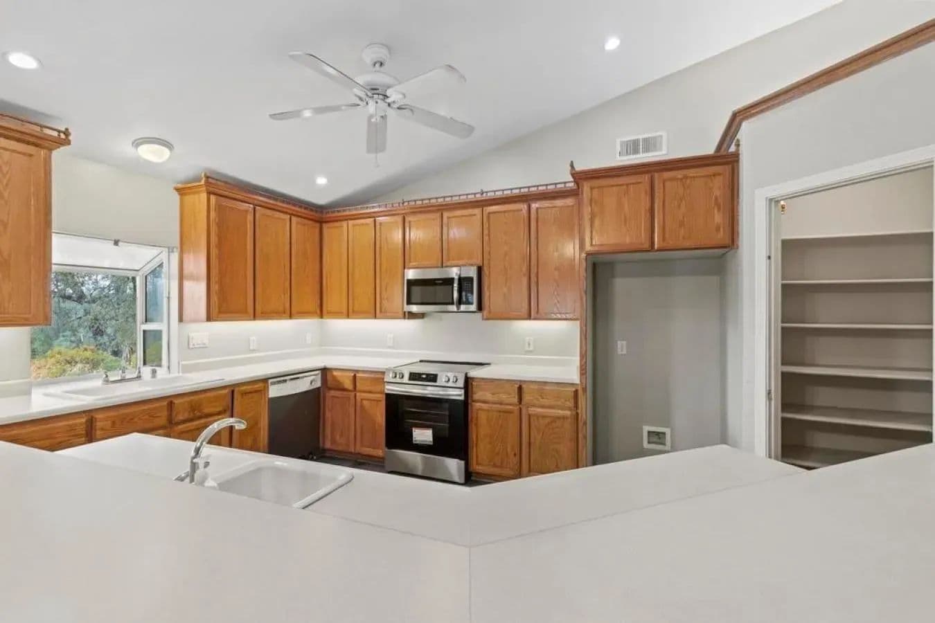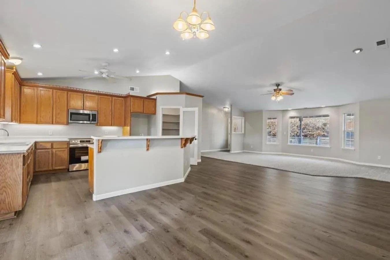 Discover ultimate privacy and breathtaking views on this expansive 10+ acre property! This spacious home offers an open floor plan, with a kitchen overlooking the family and dining rooms, which feature a gas fireplace and vaulted ceilings. A versatile bonus room with a wood-burning stove and outside access could serve as a second living room or be converted into guest quarters. The kitchen is equipped with a pantry closet and garden window. The primary suite is a true retreat with vaulted ceilings, walk-in closet, outside access, and bathroom featuring a separate tub, shower, and dual sinks. The spacious hall bath boasts a skylight and double sinks, while the large laundry room offers abundant storage. Recent updates include new flooring and fresh interior paint throughout, as well as a tankless water heater for added efficiency. Outside, enjoy the serenity of nature from two long covered patios on each side of the house, perfect for morning coffee or evening relaxation. Wildlife abounds, with deer and turkeys frequenting the property, adding to the peaceful ambiance. With over 10 acres and BVID irrigation water, it's perfect for animals. Plus, a pad is ready for a shop if you desire additional workspace. This private, gated property with all the conveniences and plenty of space to make it your own!
