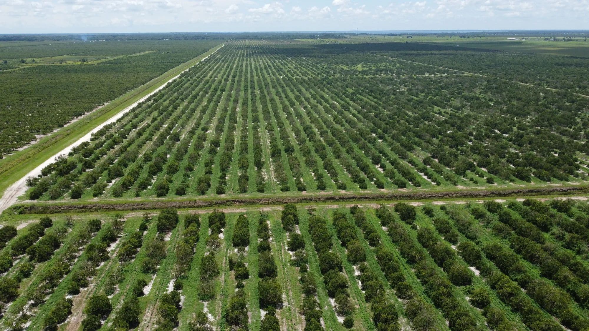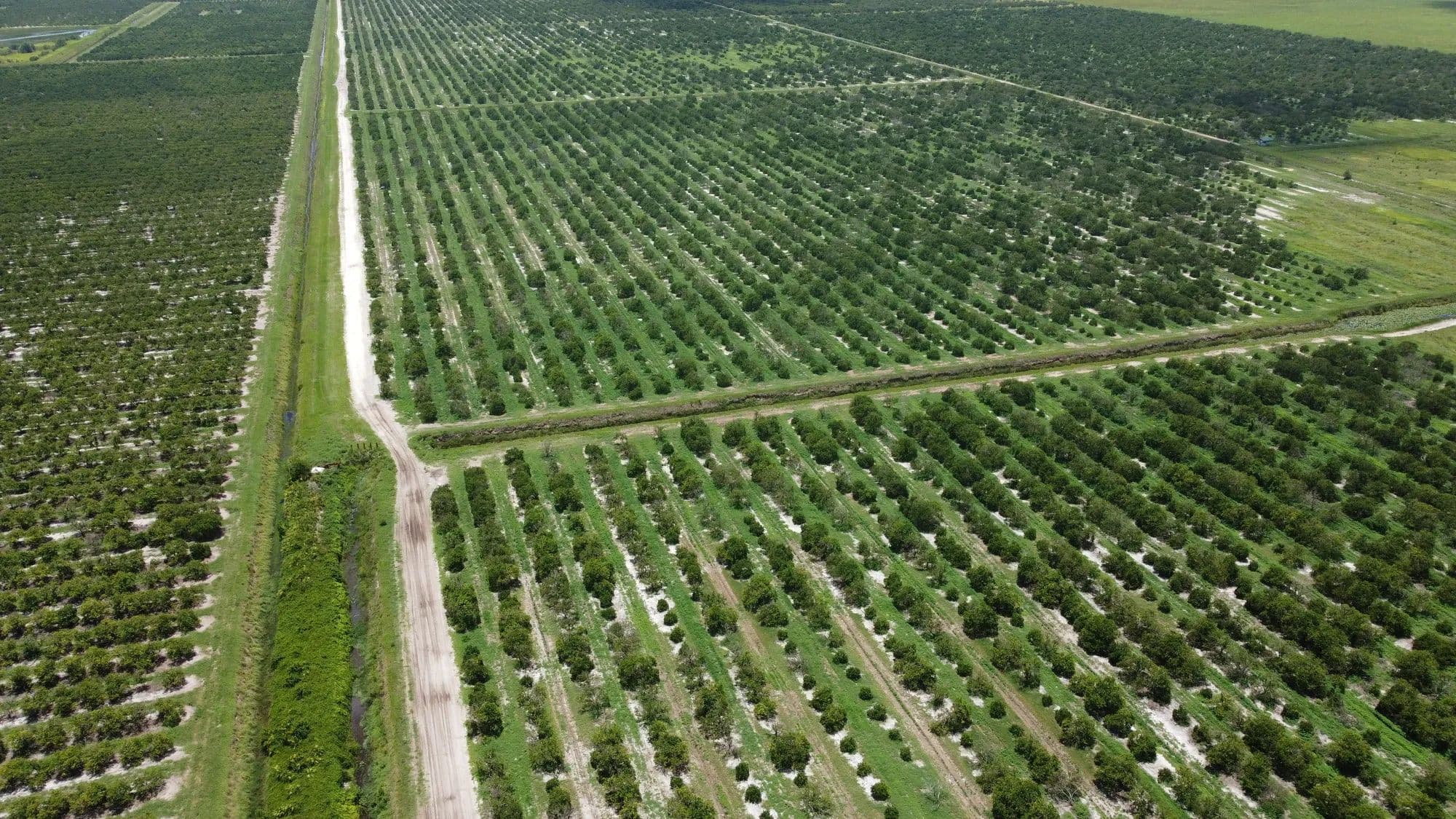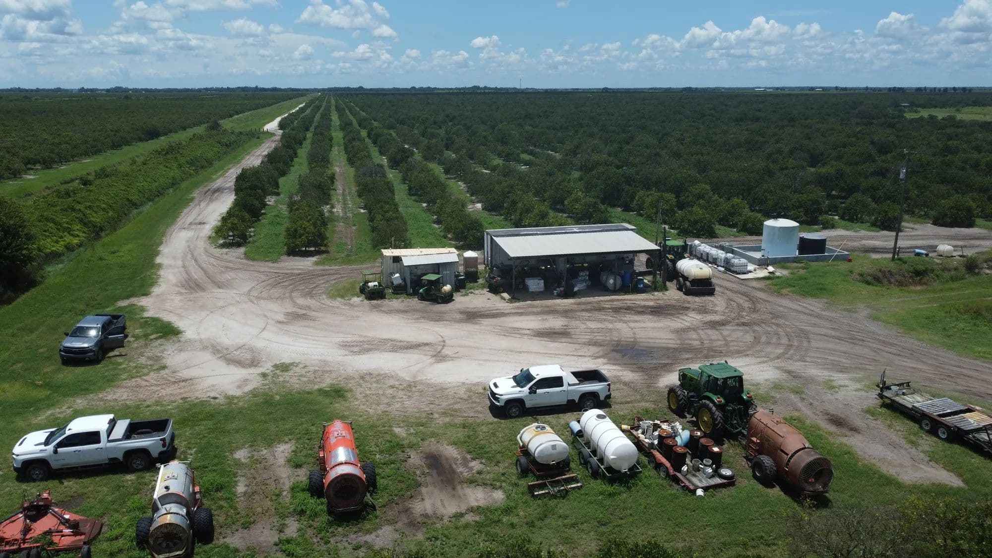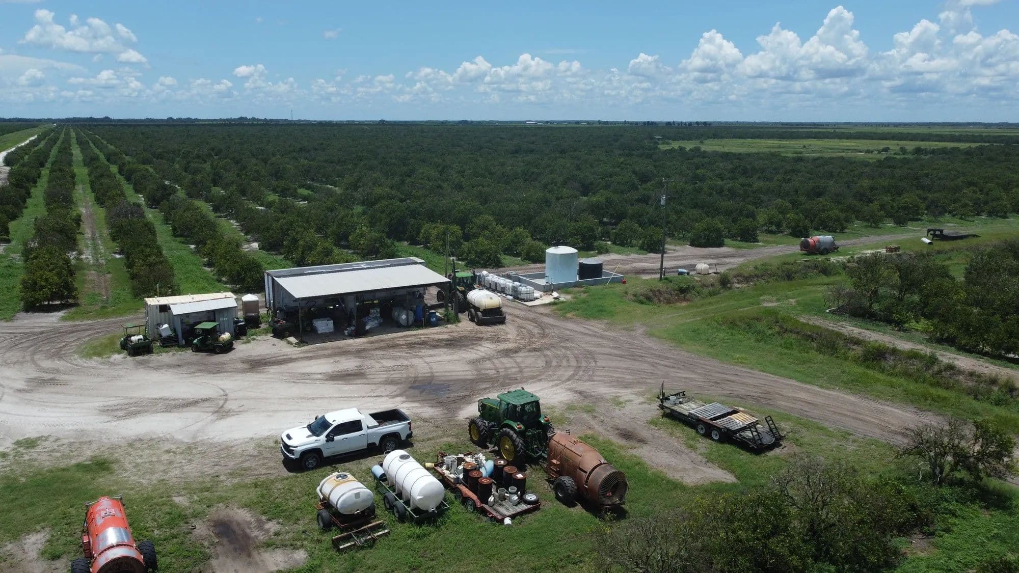 Improvements include a barn, a 1,287± square foot caretaker’s home built in 2004, seven 12-inch wells, and a reservoir with a lift pump. The grove is currently leased and professionally managed through 2027, with an optional one-year extension. The property may be divided.