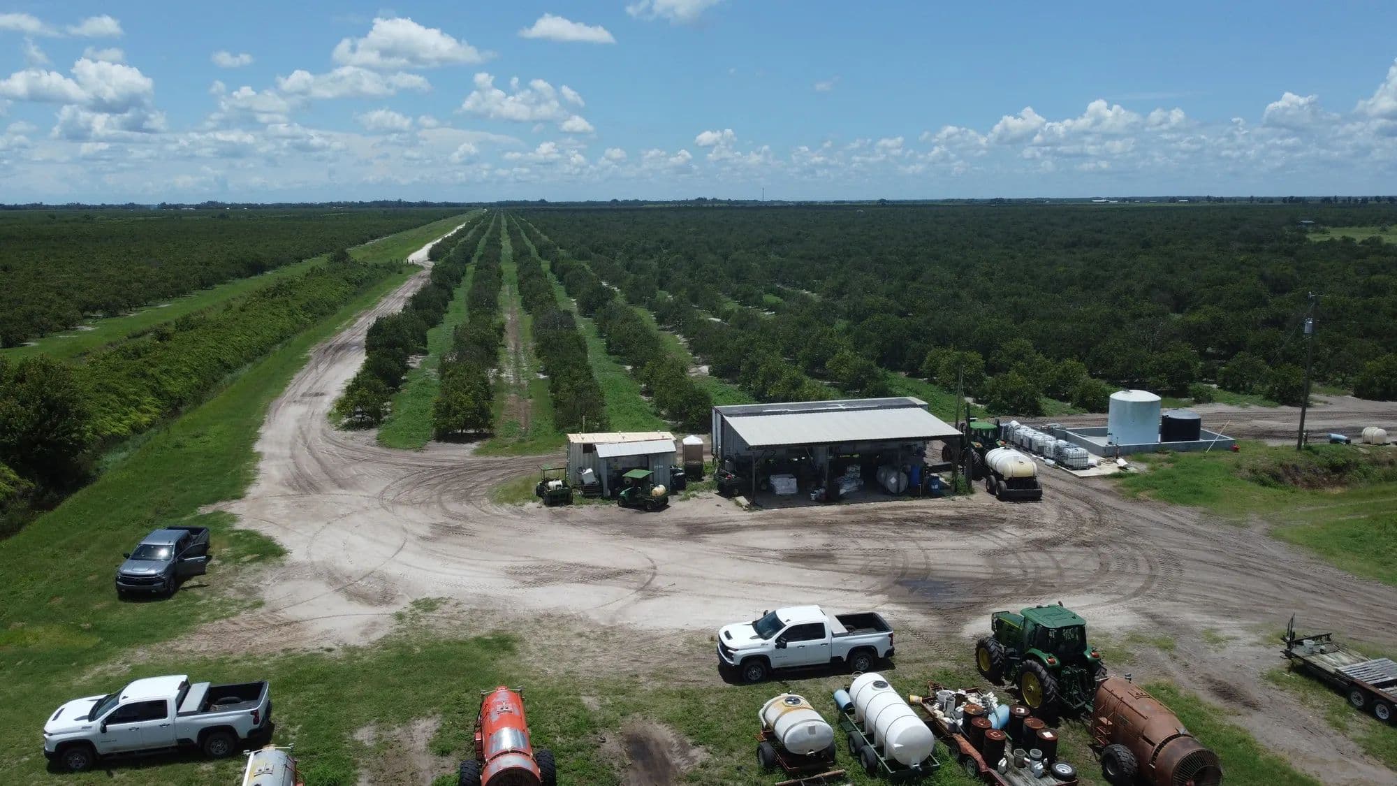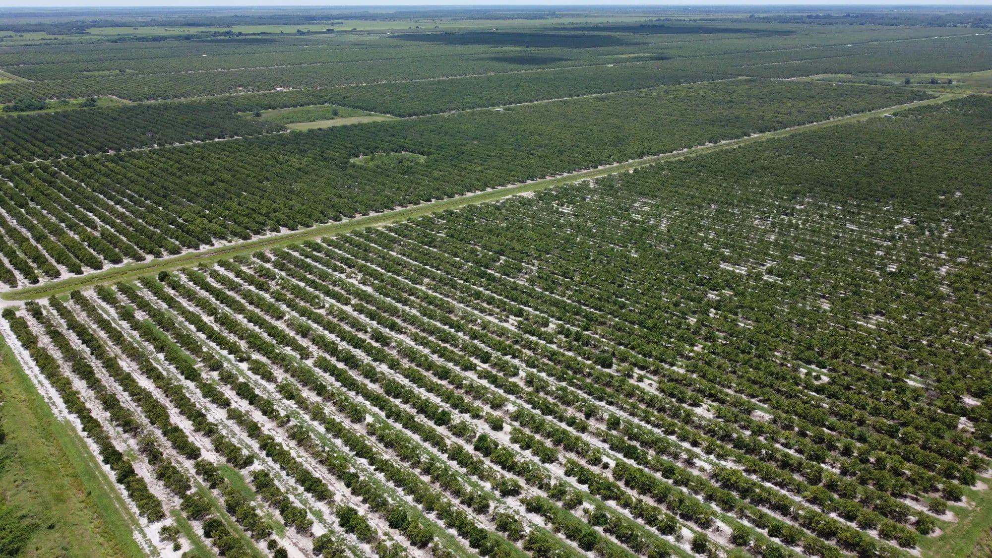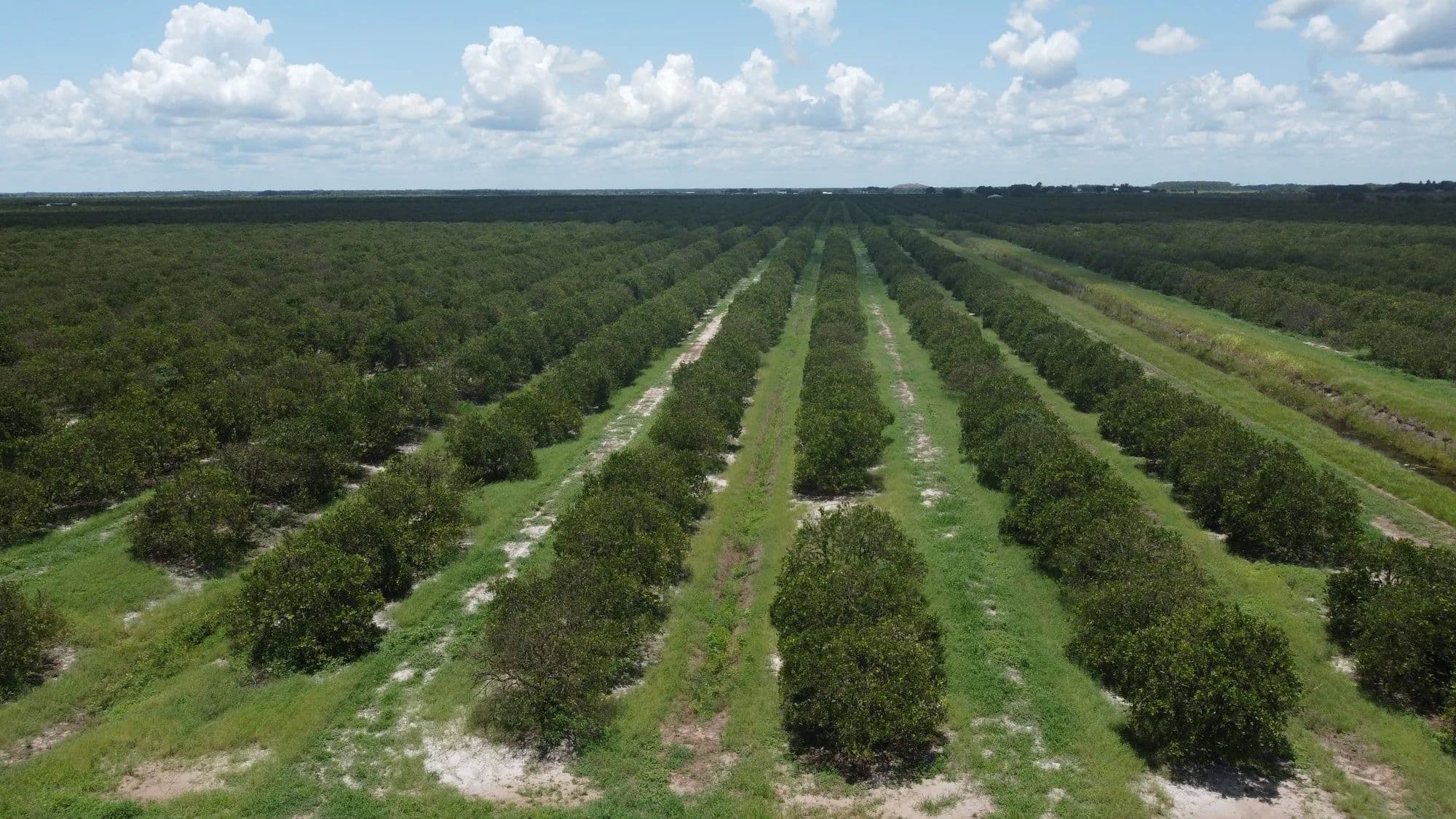 Improvements include a barn, a 1,287± square foot caretaker’s home built in 2004, seven 12-inch wells, and a reservoir with a lift pump. The grove is currently leased and professionally managed through 2027, with an optional one-year extension. The property may be divided.