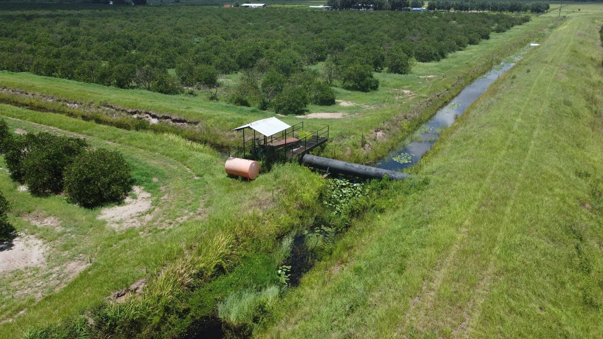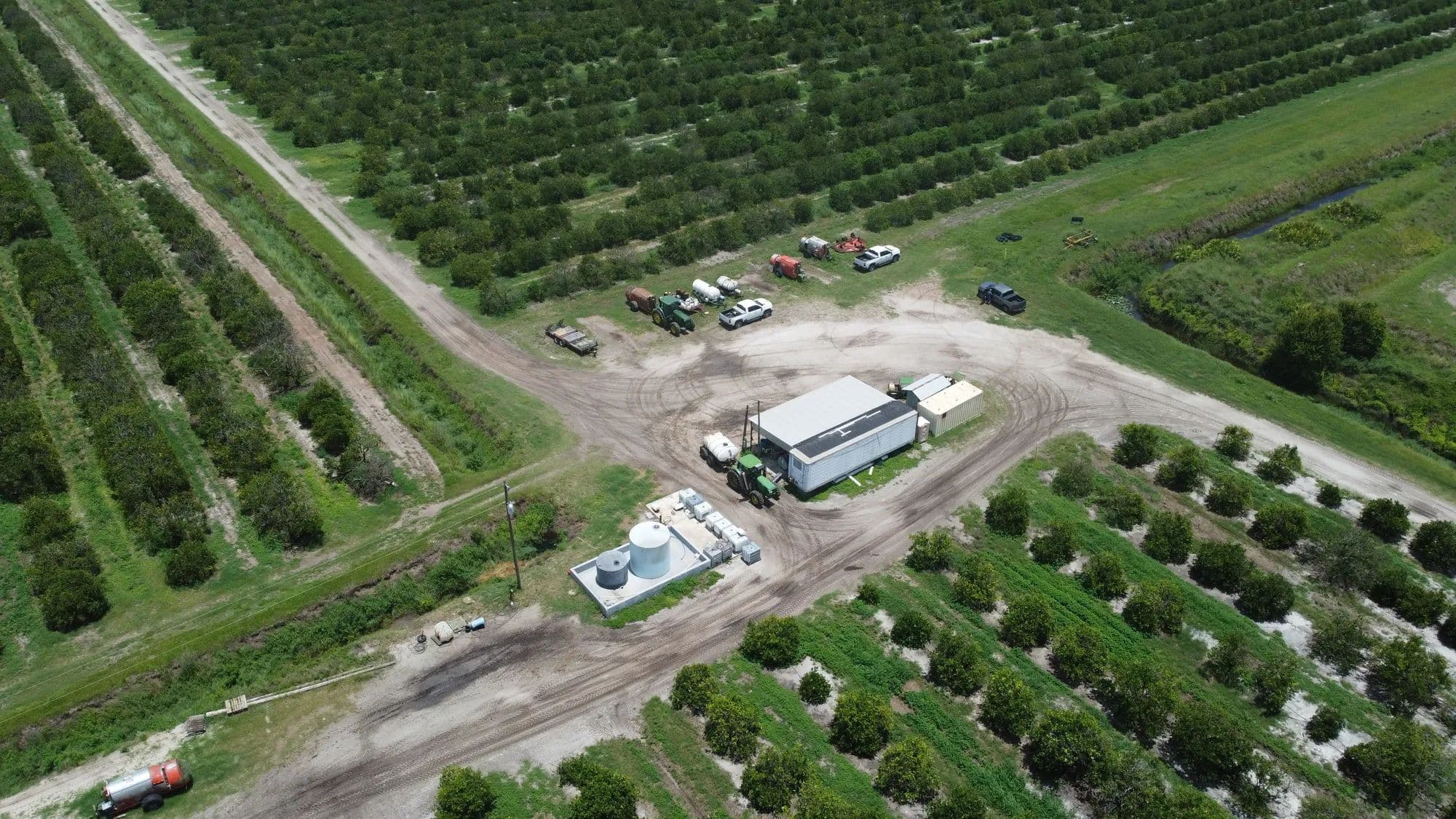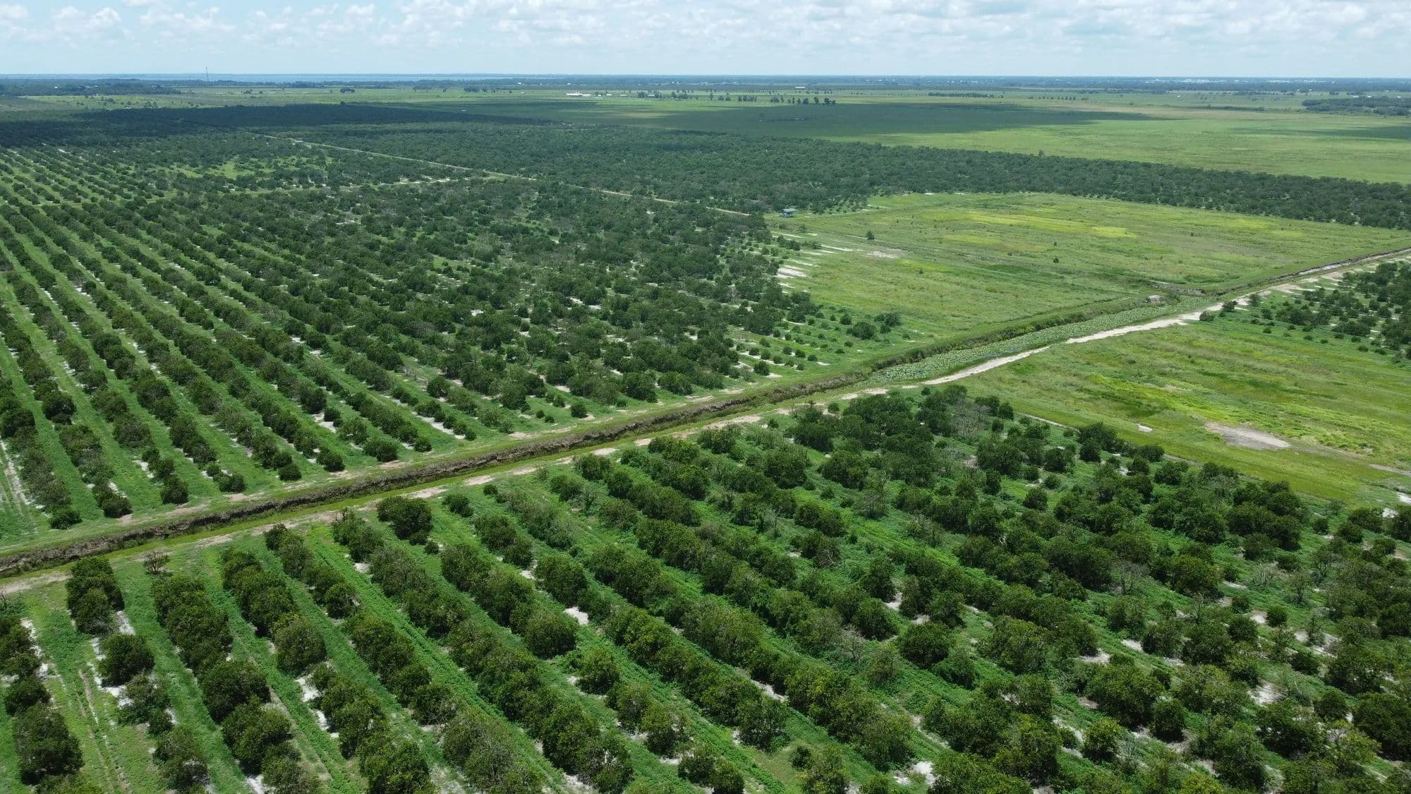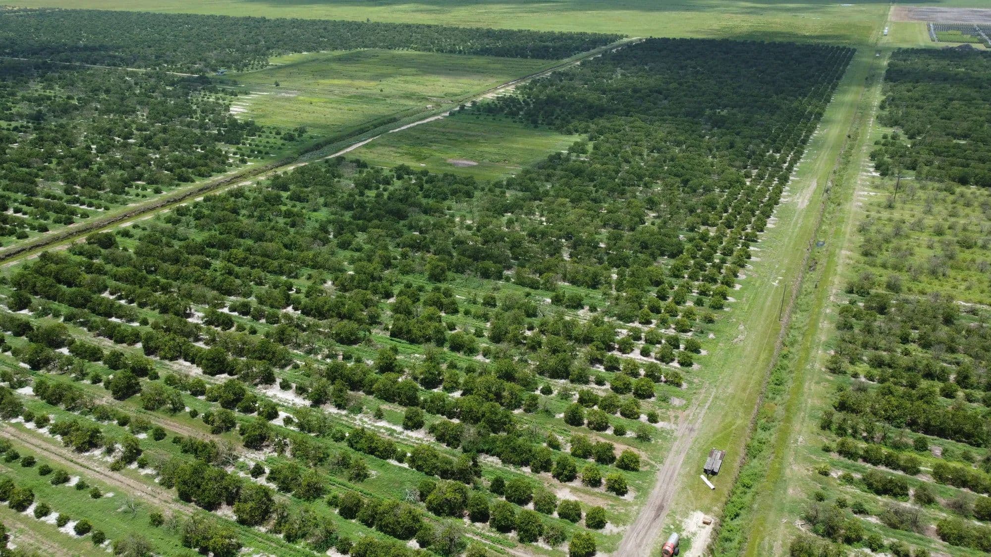 Improvements include a barn, a 1,287± square foot caretaker’s home built in 2004, seven 12-inch wells, and a reservoir with a lift pump. The grove is currently leased and professionally managed through 2027, with an optional one-year extension. The property may be divided.