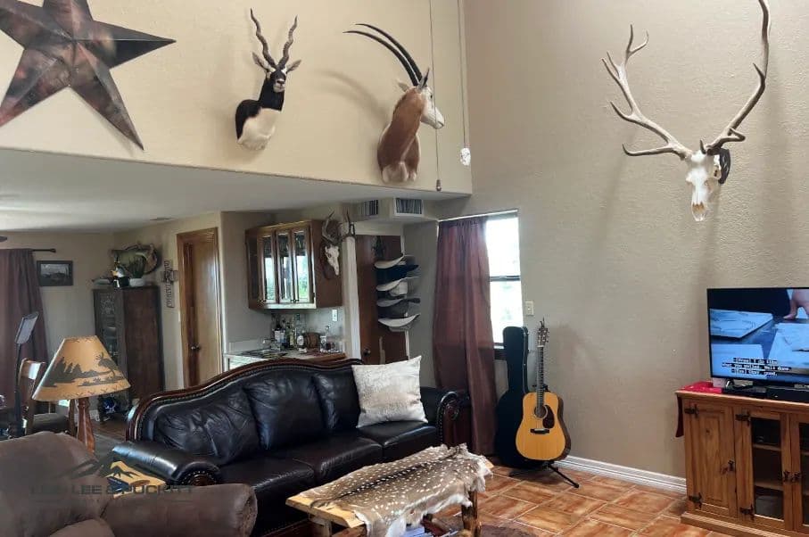 The 300+/- ac. Horn & Antler Ranch includes a magnificent herd of exotic animals, including Axis, Whitetail, Fallow, Addax, Oryx, Gemsbok, Blackbuck, Llamas, and guardian donkey. All indigenous Whitetails have been removed, and the ranch is stocked with a small amount of genetic Whitetail Deer. Two large hunting blinds, all season protein and corn feeders.