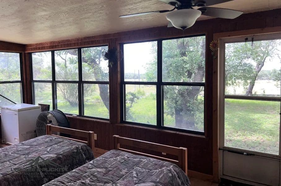 A perfect getaway ranch with many possibilities whether it be a hunting facility, an exotic breeding ranch, a personal recreational ranch or corporate retreat. Fully furnished equipped with all furniture, appliances, and household items needed for comfortable living. The Texas sized lodge has a great floor plan with one bedroom downstairs and a large sleeping loft with ensuite upstairs with a total of 7 beds to sleep 9 people comfortably. Soaring ceilings in the great room provide plenty of space for your mounts! The main lodge has a wood burning fireplace, a full kitchen, dining area, 2 bedrooms, 2 baths, sleeping sunroom, and an outdoor fire pit. Plus, a bunk house that sleeps two and has a full bath. There is a barn, walk-in cooler, meat processing room, and 700-yard shooting range. A new propane Cummins generator that kicks on automatically in event of a power outage. A shipping container for additional storage with a solar powered vent and 20x24 carport were added. 5 newly built concrete dog kennels under-roof plus 2 addition concrete dog kennels. In addition, there are 2 high fence kennels.