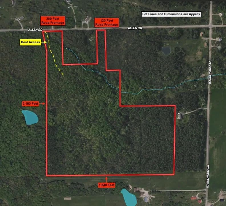 Great opportunity to own a large tract of acreage in a prime location. This 59 acres is a mixture of hardwoods, some scattered pines and some open brush areas. Access off Allen Road is walkable and once you are on the property, you can manage to get anywhere easily. The terrain is mostly level with small rolling hills. There was as a select timber cut done recently but there is plenty of timber standing for the new owner. There is a nice creek that runs in a few different directions throughout the property. Whitetail deer sign is abundant throughout for excellent hunting. There are numerous trails through the property that can be added onto for ATVs and side-by-side accessibility. Electric is located at the road. There are two areas with road frontage totaling 400 feet.
