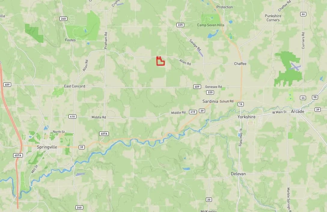 The property is located approximately 15 minutes to Springville NY and Arcade NY, 30 minutes to Ellicottville NY, 39 minutes to Buffalo NY, 55 minutes to Batavia NY, and 1 hour 23 minutes to Mayville NY and Rochester NY.