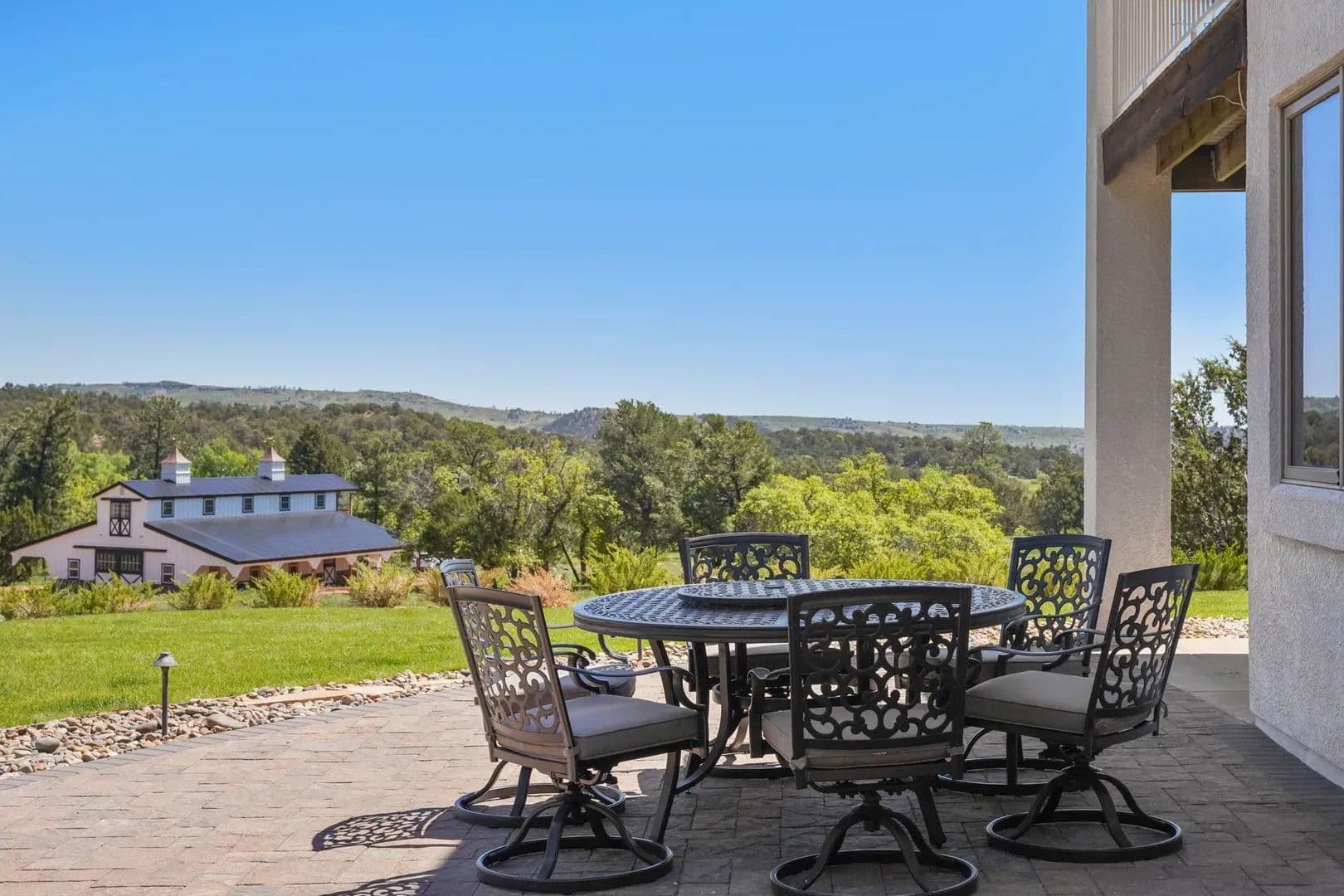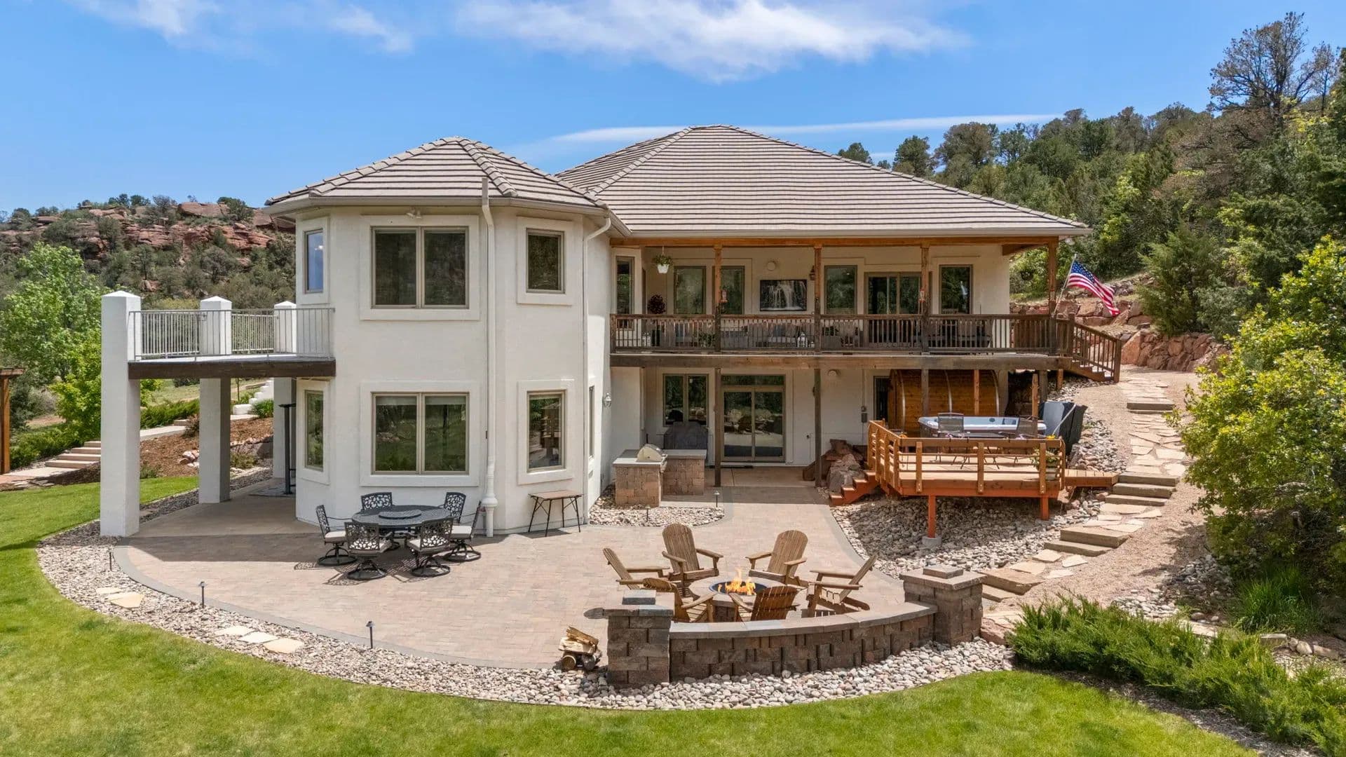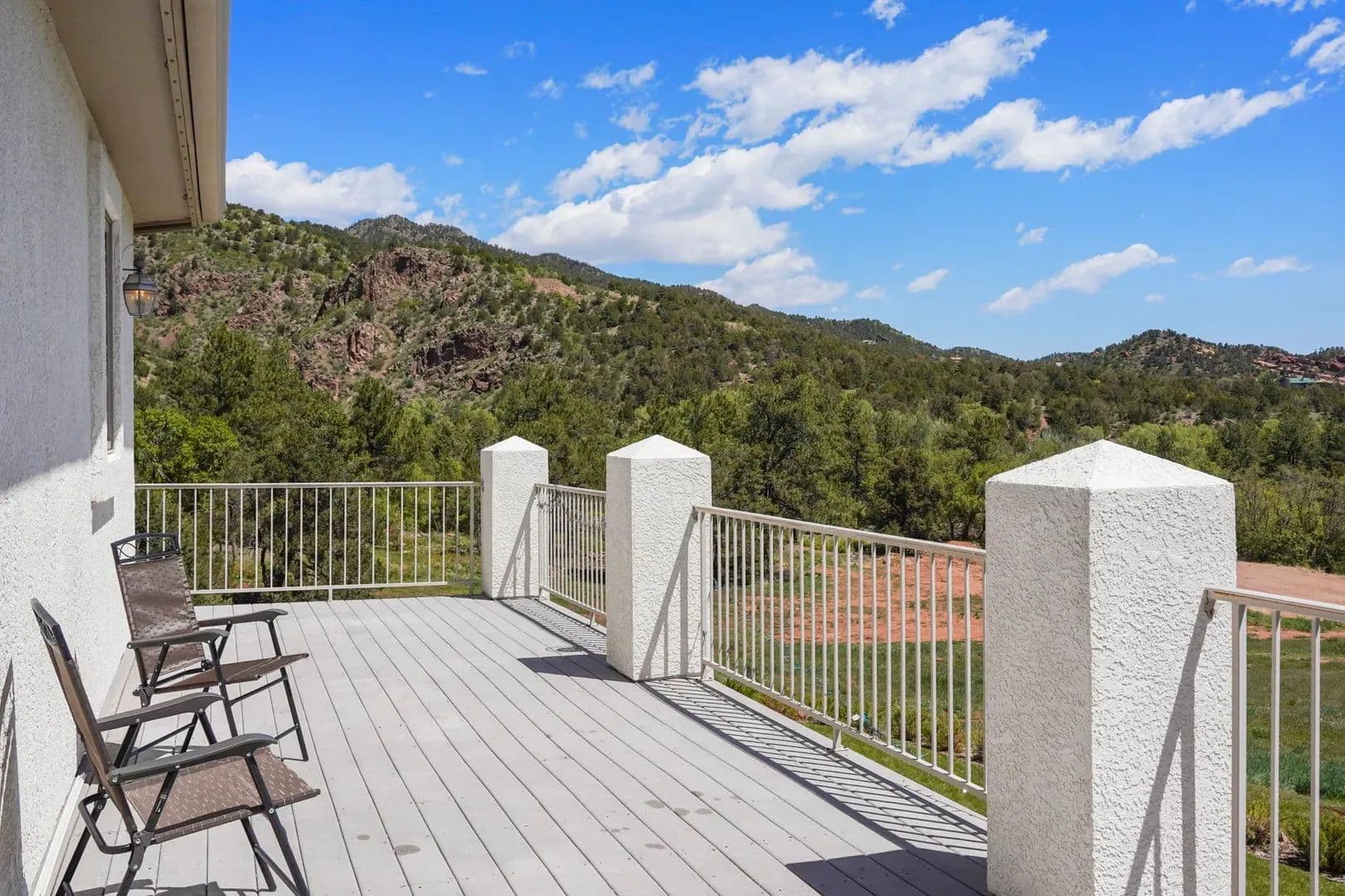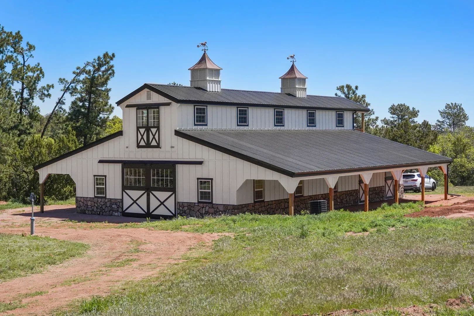 For those seeking a stunning and functional executive horse estate, Red Rock Sterling Ranch will surely suit your needs. This incredible property is located just 20 minutes southwest of downtown Colorado Springs within the prestigious gated community of Turkey Canon Ranch Estates. Tucked up against the mountains, this area abounds with natural beauty, and vistas of rugged mountain peaks and red rimrock remarkable property features a stunning 6,372 square foot home set on 35.01 acres adorned with pinion pine, juniper, cottonwood trees, scrub oak, and open meadows. Offering the convenience of main floor living, the residence includes five bedrooms and six bathrooms. The main floor primary suite is a true retreat, complete with a fireplace, a comfortable sitting area, and a walkout to the two decks for relaxing and recharging. It also features his and her closets and a luxurious five-piece master bath where the breathtaking views of the surrounding landscape are perfectly framed by the living room boasts impressive, vaulted ceilings and flows easily into the formal dining and kitchen areas. A gourmet kitchen is well-appointed with a large island, adjoining breakfast nook, fireplace sitting area, and a walkout to an expansive covered deck – the perfect spot to relax and savor the wonders of nature displayed in rock outcroppings and mountains. On the upper level, you will find two additional bedrooms, each with its own private bathroom and a walkout to a private exceptional home features a walkout basement level with an expansive recreation area, complete with a fireplace, pool table, bar and gym. A guest suite offers a walk-in closet, adjoining bathroom, sitting area, and convenient walkout access to patio space. The walkout basement also features an additional bedroom with an attached bath. You'll also find a flexible room that is currently used as a child's playroom, but it can easily be adapted to suit your specific needs. This level of the home provides seamless access to the amazing outdoor living area, an entertainer's dream featuring a large patio, hot tub, sauna, fire pit, and fully appointed grilling kitchen. The meticulously landscaped grounds include a beautiful pond with a waterfall feature. Extensive solar was added which dramatically reduces the utility costs for a home this size. A new and architecturally stunning 36 X 60 five-stall barn stands as a true highlight of the property. It features a functional drive-through design with storage overhangs and a metal roof with cupola detail. The horse enthusiast will appreciate barn automatic waterers both in the barn and in pastures, rubber mats, wash rack, ample feed storage, and a secure tack room. With a few final details needed, the end result will create a very functional setup. Above the barn, there is an unfinished 12 x 60 space that offers exciting potential for customization into additional living quarters. Additional features are the base for an exercise arena, round pen, chicken coop with a covered run, kids playground and storage shed. Red Rock Sterling Ranch is frequented by wild turkey, mule deer, black bear, various small game such as fox, coyote and bobcat, as well numerous birds. Turkey Canon Ranch Estates boasts exclusive access for homeowners to BLM through Turkey Canon Ranch Road. Aiken Canyon Preserve, with the wonderful Aiken Canyon Loop Trail is near the entrance to this gated community for hiking and birding. Recreation abounds in this region, as the area is a vacation destination with The Pikes Peak Highway, Garden of the Gods, and the Royal Gorge nearby. Colorado Springs, with all of its amenities, is an easy 15-20 minute drive via State Highway 115. The Colorado Springs Airport can be easily reached within approximately Rock Sterling Ranch truly offers a unique opportunity for those seeking a luxurious home and exceptional equestrian facilities in a prime location.