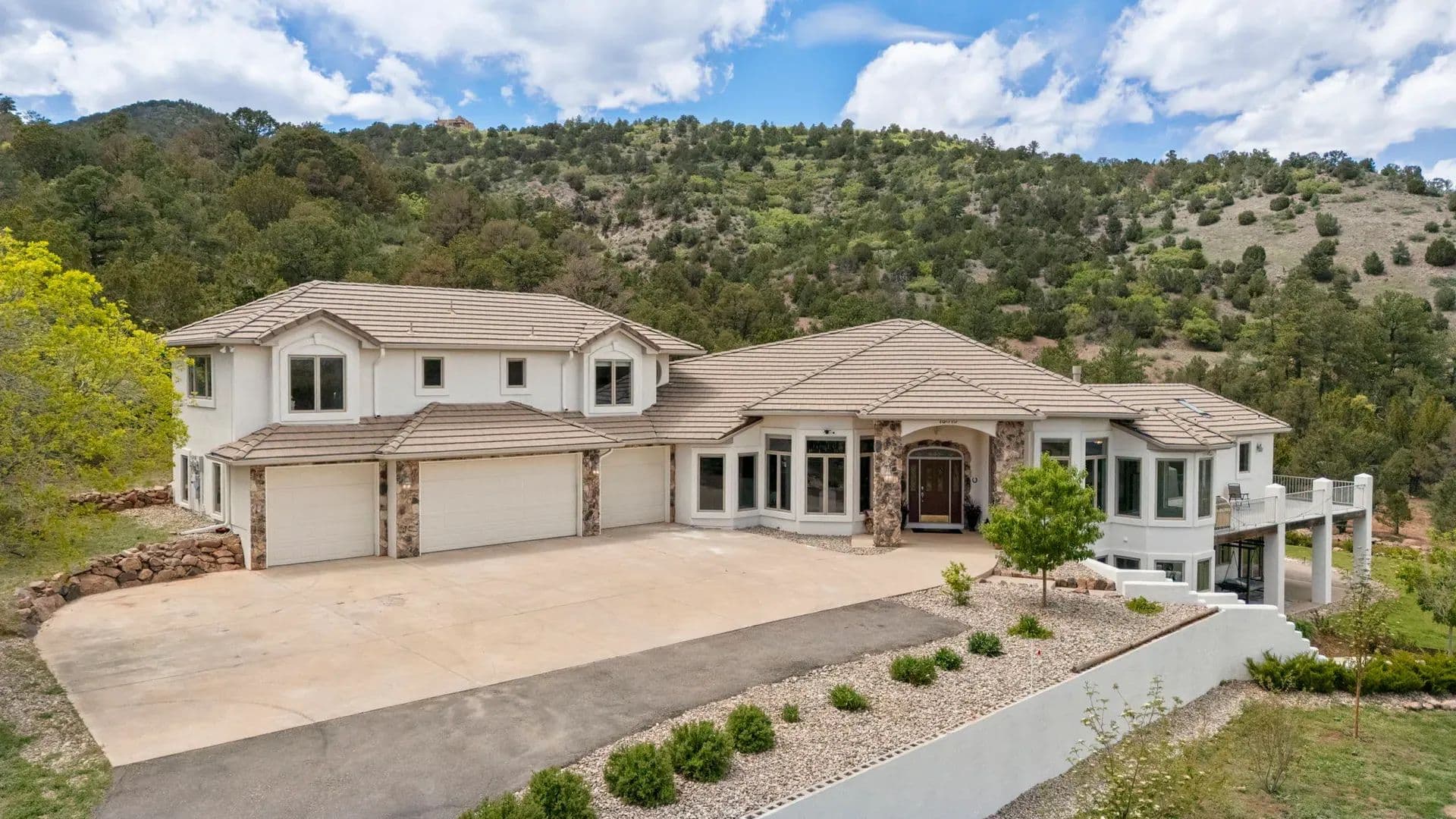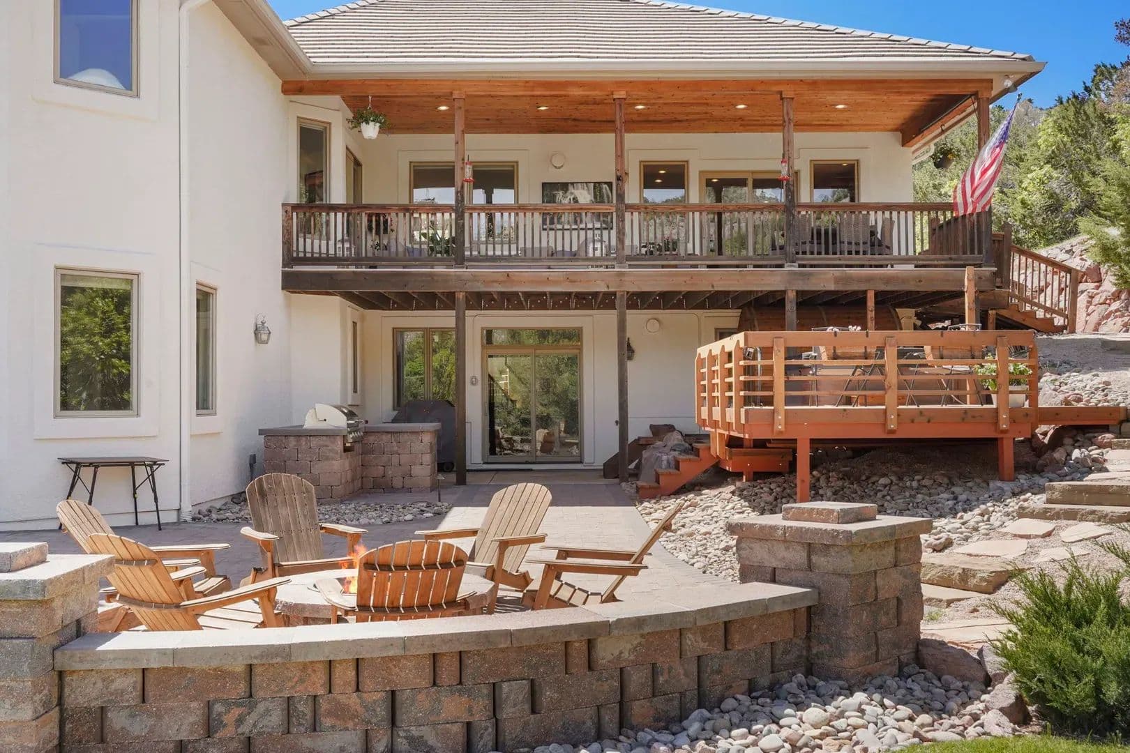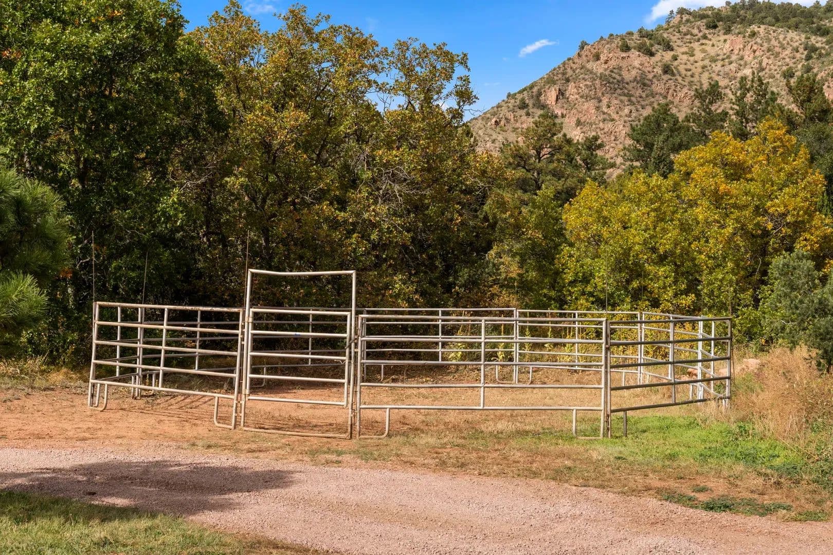 For those seeking a stunning and functional executive horse estate, Red Rock Sterling Ranch will surely suit your needs. This incredible property is located just 20 minutes southwest of downtown Colorado Springs within the prestigious gated community of Turkey Canon Ranch Estates. Tucked up against the mountains, this area abounds with natural beauty, and vistas of rugged mountain peaks and red rimrock remarkable property features a stunning 6,372 square foot home set on 35.01 acres adorned with pinion pine, juniper, cottonwood trees, scrub oak, and open meadows. Offering the convenience of main floor living, the residence includes five bedrooms and six bathrooms. The main floor primary suite is a true retreat, complete with a fireplace, a comfortable sitting area, and a walkout to the two decks for relaxing and recharging. It also features his and her closets and a luxurious five-piece master bath where the breathtaking views of the surrounding landscape are perfectly framed by the living room boasts impressive, vaulted ceilings and flows easily into the formal dining and kitchen areas. A gourmet kitchen is well-appointed with a large island, adjoining breakfast nook, fireplace sitting area, and a walkout to an expansive covered deck – the perfect spot to relax and savor the wonders of nature displayed in rock outcroppings and mountains. On the upper level, you will find two additional bedrooms, each with its own private bathroom and a walkout to a private exceptional home features a walkout basement level with an expansive recreation area, complete with a fireplace, pool table, bar and gym. A guest suite offers a walk-in closet, adjoining bathroom, sitting area, and convenient walkout access to patio space. The walkout basement also features an additional bedroom with an attached bath. You'll also find a flexible room that is currently used as a child's playroom, but it can easily be adapted to suit your specific needs. This level of the home provides seamless access to the amazing outdoor living area, an entertainer's dream featuring a large patio, hot tub, sauna, fire pit, and fully appointed grilling kitchen. The meticulously landscaped grounds include a beautiful pond with a waterfall feature. Extensive solar was added which dramatically reduces the utility costs for a home this size. A new and architecturally stunning 36 X 60 five-stall barn stands as a true highlight of the property. It features a functional drive-through design with storage overhangs and a metal roof with cupola detail. The horse enthusiast will appreciate barn automatic waterers both in the barn and in pastures, rubber mats, wash rack, ample feed storage, and a secure tack room. With a few final details needed, the end result will create a very functional setup. Above the barn, there is an unfinished 12 x 60 space that offers exciting potential for customization into additional living quarters. Additional features are the base for an exercise arena, round pen, chicken coop with a covered run, kids playground and storage shed. Red Rock Sterling Ranch is frequented by wild turkey, mule deer, black bear, various small game such as fox, coyote and bobcat, as well numerous birds. Turkey Canon Ranch Estates boasts exclusive access for homeowners to BLM through Turkey Canon Ranch Road. Aiken Canyon Preserve, with the wonderful Aiken Canyon Loop Trail is near the entrance to this gated community for hiking and birding. Recreation abounds in this region, as the area is a vacation destination with The Pikes Peak Highway, Garden of the Gods, and the Royal Gorge nearby. Colorado Springs, with all of its amenities, is an easy 15-20 minute drive via State Highway 115. The Colorado Springs Airport can be easily reached within approximately Rock Sterling Ranch truly offers a unique opportunity for those seeking a luxurious home and exceptional equestrian facilities in a prime location.