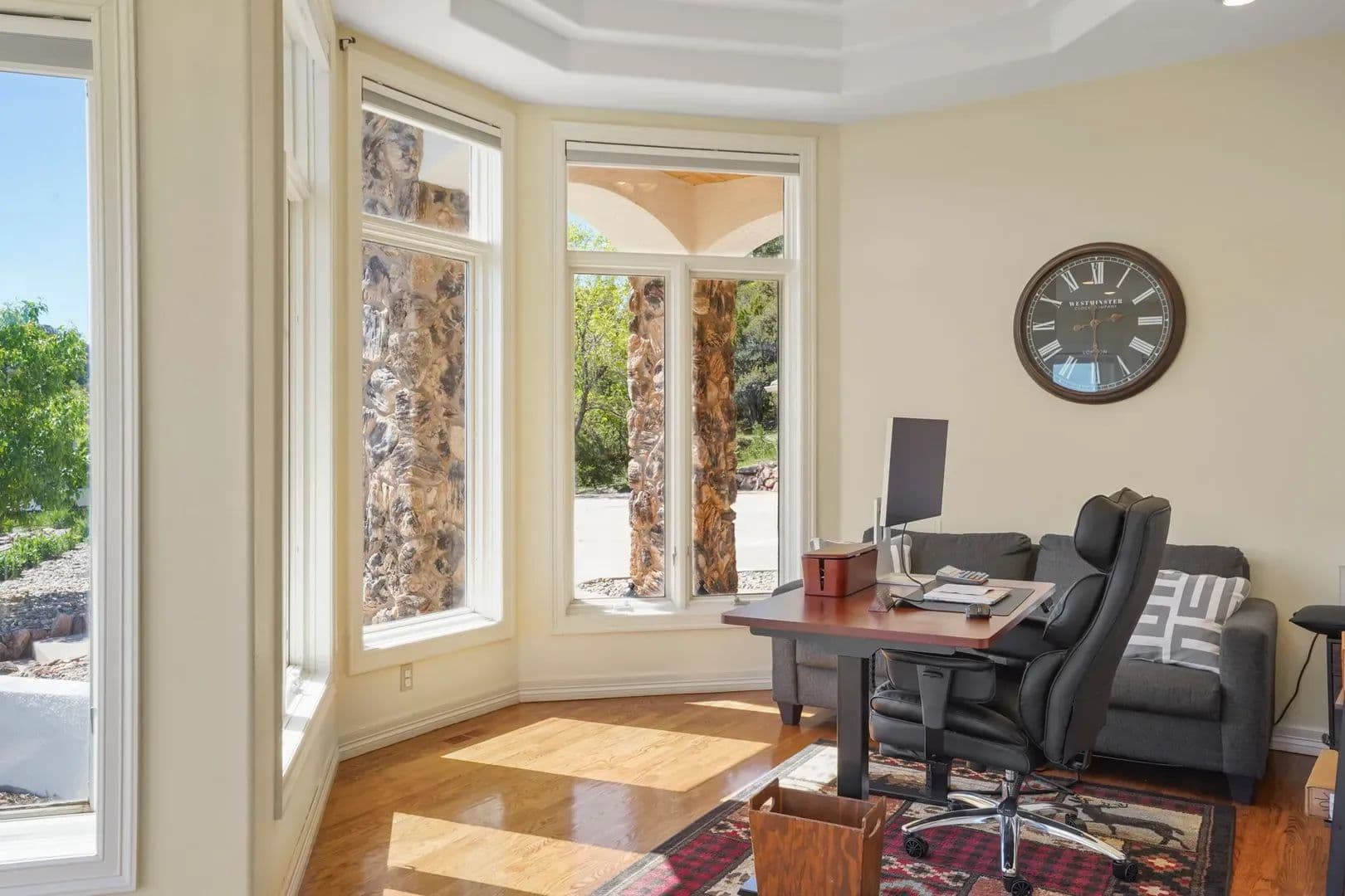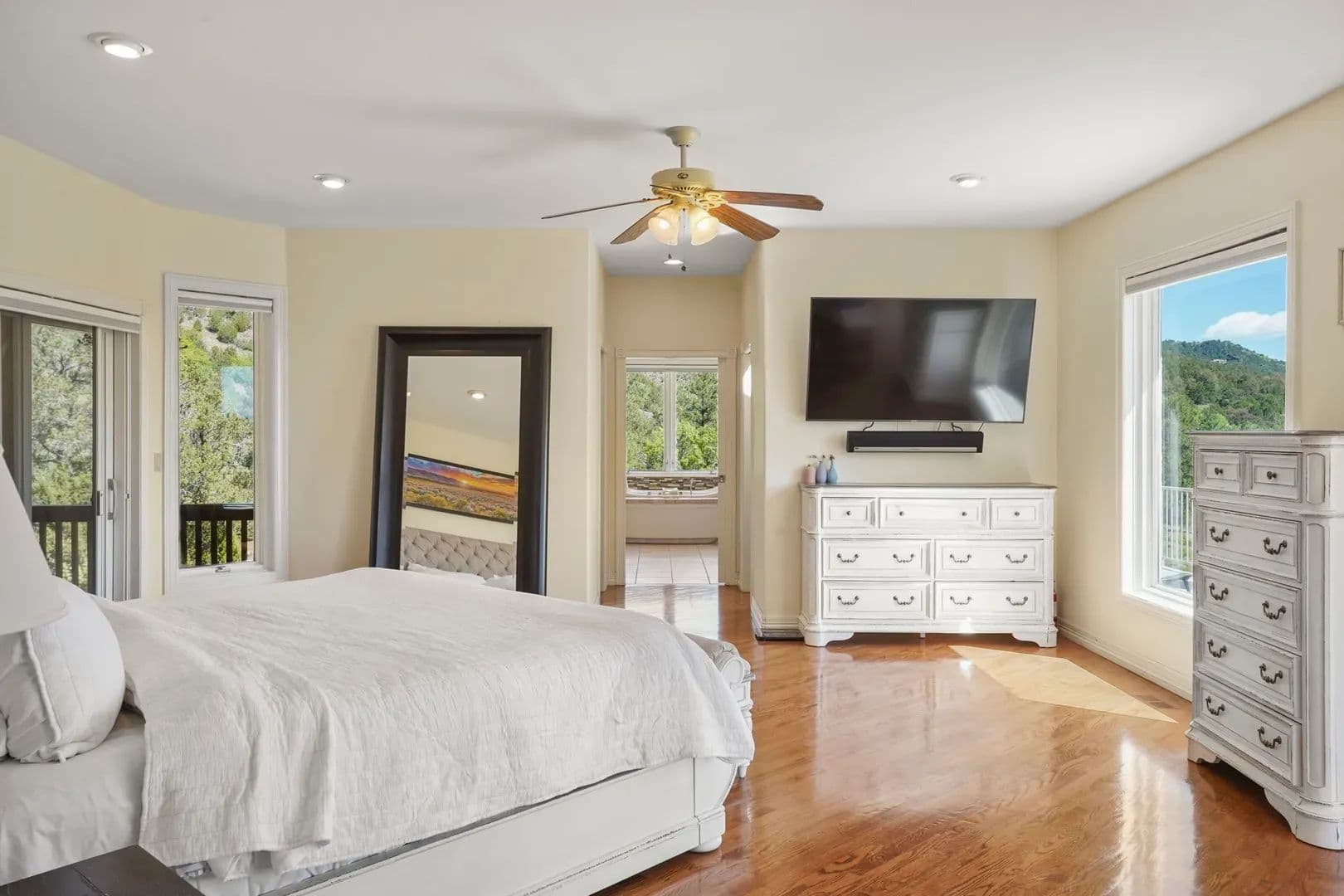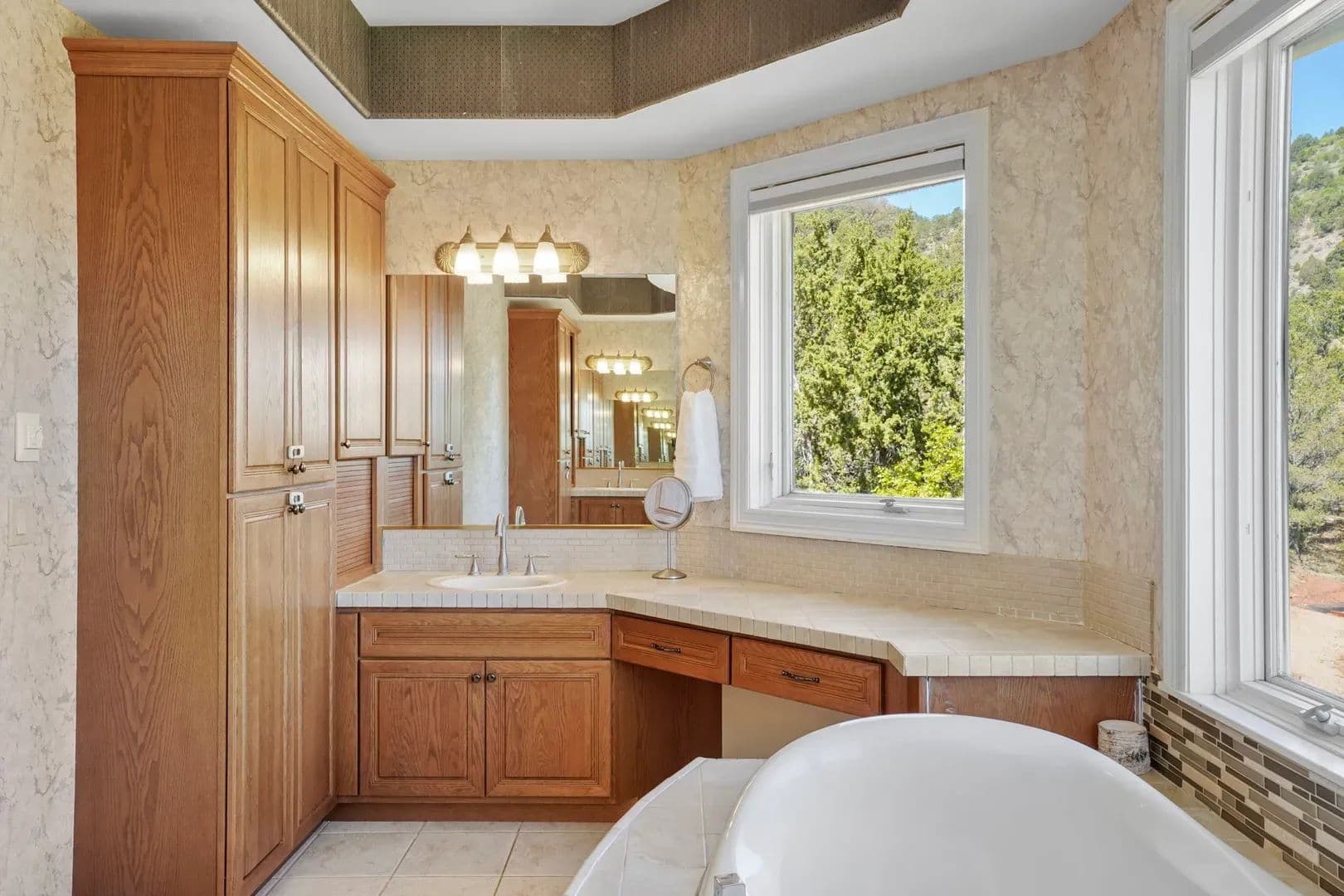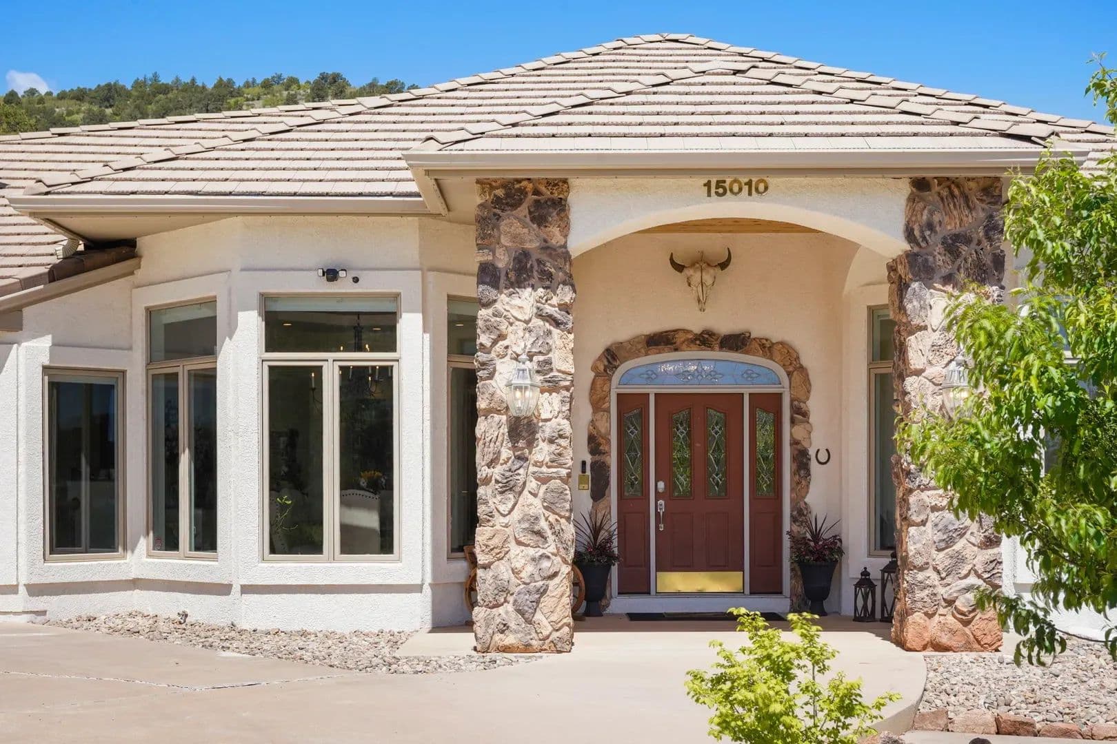 For those seeking a stunning and functional executive horse estate, Red Rock Sterling Ranch will surely suit your needs. This incredible property is located just 20 minutes southwest of downtown Colorado Springs within the prestigious gated community of Turkey Canon Ranch Estates. Tucked up against the mountains, this area abounds with natural beauty, and vistas of rugged mountain peaks and red rimrock remarkable property features a stunning 6,372 square foot home set on 35.01 acres adorned with pinion pine, juniper, cottonwood trees, scrub oak, and open meadows. Offering the convenience of main floor living, the residence includes five bedrooms and six bathrooms. The main floor primary suite is a true retreat, complete with a fireplace, a comfortable sitting area, and a walkout to the two decks for relaxing and recharging. It also features his and her closets and a luxurious five-piece master bath where the breathtaking views of the surrounding landscape are perfectly framed by the living room boasts impressive, vaulted ceilings and flows easily into the formal dining and kitchen areas. A gourmet kitchen is well-appointed with a large island, adjoining breakfast nook, fireplace sitting area, and a walkout to an expansive covered deck – the perfect spot to relax and savor the wonders of nature displayed in rock outcroppings and mountains. On the upper level, you will find two additional bedrooms, each with its own private bathroom and a walkout to a private exceptional home features a walkout basement level with an expansive recreation area, complete with a fireplace, pool table, bar and gym. A guest suite offers a walk-in closet, adjoining bathroom, sitting area, and convenient walkout access to patio space. The walkout basement also features an additional bedroom with an attached bath. You'll also find a flexible room that is currently used as a child's playroom, but it can easily be adapted to suit your specific needs. This level of the home provides seamless access to the amazing outdoor living area, an entertainer's dream featuring a large patio, hot tub, sauna, fire pit, and fully appointed grilling kitchen. The meticulously landscaped grounds include a beautiful pond with a waterfall feature. Extensive solar was added which dramatically reduces the utility costs for a home this size. A new and architecturally stunning 36 X 60 five-stall barn stands as a true highlight of the property. It features a functional drive-through design with storage overhangs and a metal roof with cupola detail. The horse enthusiast will appreciate barn automatic waterers both in the barn and in pastures, rubber mats, wash rack, ample feed storage, and a secure tack room. With a few final details needed, the end result will create a very functional setup. Above the barn, there is an unfinished 12 x 60 space that offers exciting potential for customization into additional living quarters. Additional features are the base for an exercise arena, round pen, chicken coop with a covered run, kids playground and storage shed. Red Rock Sterling Ranch is frequented by wild turkey, mule deer, black bear, various small game such as fox, coyote and bobcat, as well numerous birds. Turkey Canon Ranch Estates boasts exclusive access for homeowners to BLM through Turkey Canon Ranch Road. Aiken Canyon Preserve, with the wonderful Aiken Canyon Loop Trail is near the entrance to this gated community for hiking and birding. Recreation abounds in this region, as the area is a vacation destination with The Pikes Peak Highway, Garden of the Gods, and the Royal Gorge nearby. Colorado Springs, with all of its amenities, is an easy 15-20 minute drive via State Highway 115. The Colorado Springs Airport can be easily reached within approximately Rock Sterling Ranch truly offers a unique opportunity for those seeking a luxurious home and exceptional equestrian facilities in a prime location.