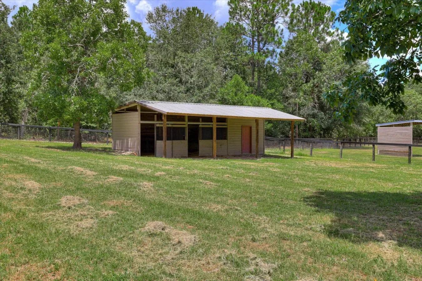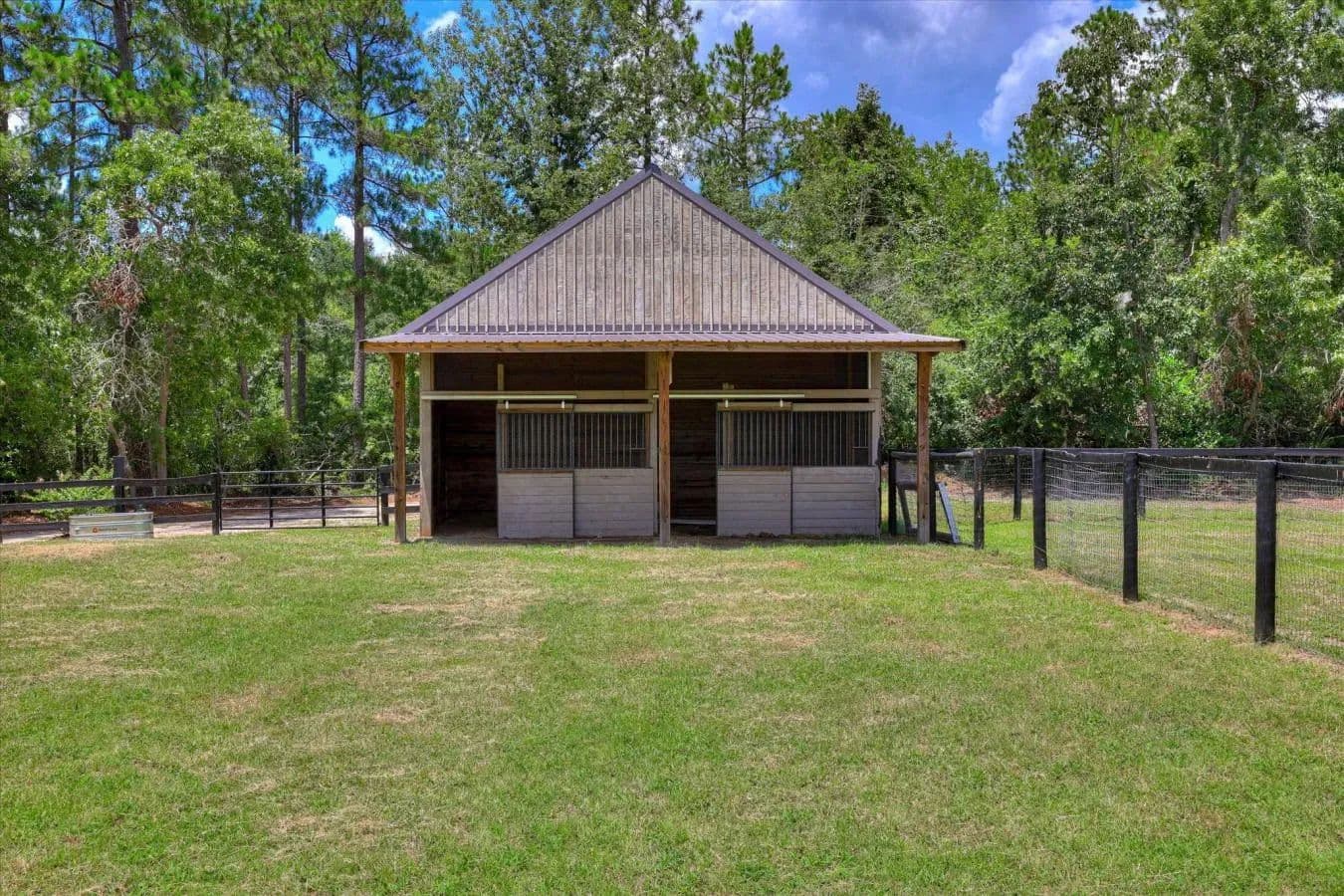Welcome to your private Farm/Equine retreat only a 15-minute drive to Aiken. The property is nestled among trees and features a gated private entrance with winding driveway-designed for both lifestyle and income potential. This custom 4-bedroom, 3.5-bath home features warm wood flooring, detailed finishes, and two screened porches, including one with a wood-burning fireplace overlooking the 18x36 saltwater pool and a second porch off the living room overlooking the pastures with gorgeous mature hardwood trees. The primary suite is located downstairs with beautiful reclaimed wood floors, walk-in closets and an ensuite bath with tub and shower and dual sinks The kitchen is open to the living area and features a large kitchen island, granite countertop, and stainless steel appliances. The two bedrooms upstairs share a spacious bathroom. The private attached cottage has a 4th bedroom with a kitchenette and a full bath and is accessible from the screened porch. It offers flexible use as a separate living space, an office or for guests. The large (~50'x80') Hoover-built shop (2017) features tall ceilings and is rough-plumbed for a bathroom and 90% insulated, making it ideal for equipment, hobbies, or could be converted into a barn. An additional detached garage with an upstairs one-bed, one-bath apartment with a kitchen, washer, and dryer, provides additional rental income or space for guests, trainers, clients or caretakers. Farm/Equine amenities include nearly 6 acres of wood-fenced pasture: an approximately one-acre pasture with a 2-stall barn, a second 2.5-acre pasture with a second 2-stall shedrow barn, and another 2.5-acre pasture with two run-in shelters. There's also a cleared 1-acre area behind the home-ideal for adding a riding arena. This versatile property blends comfort, functionality, and opportunity-perfect for hobby farmers, equestrians, investors, or anyone seeking a private space to live, ride, and relax. More acreage is available.