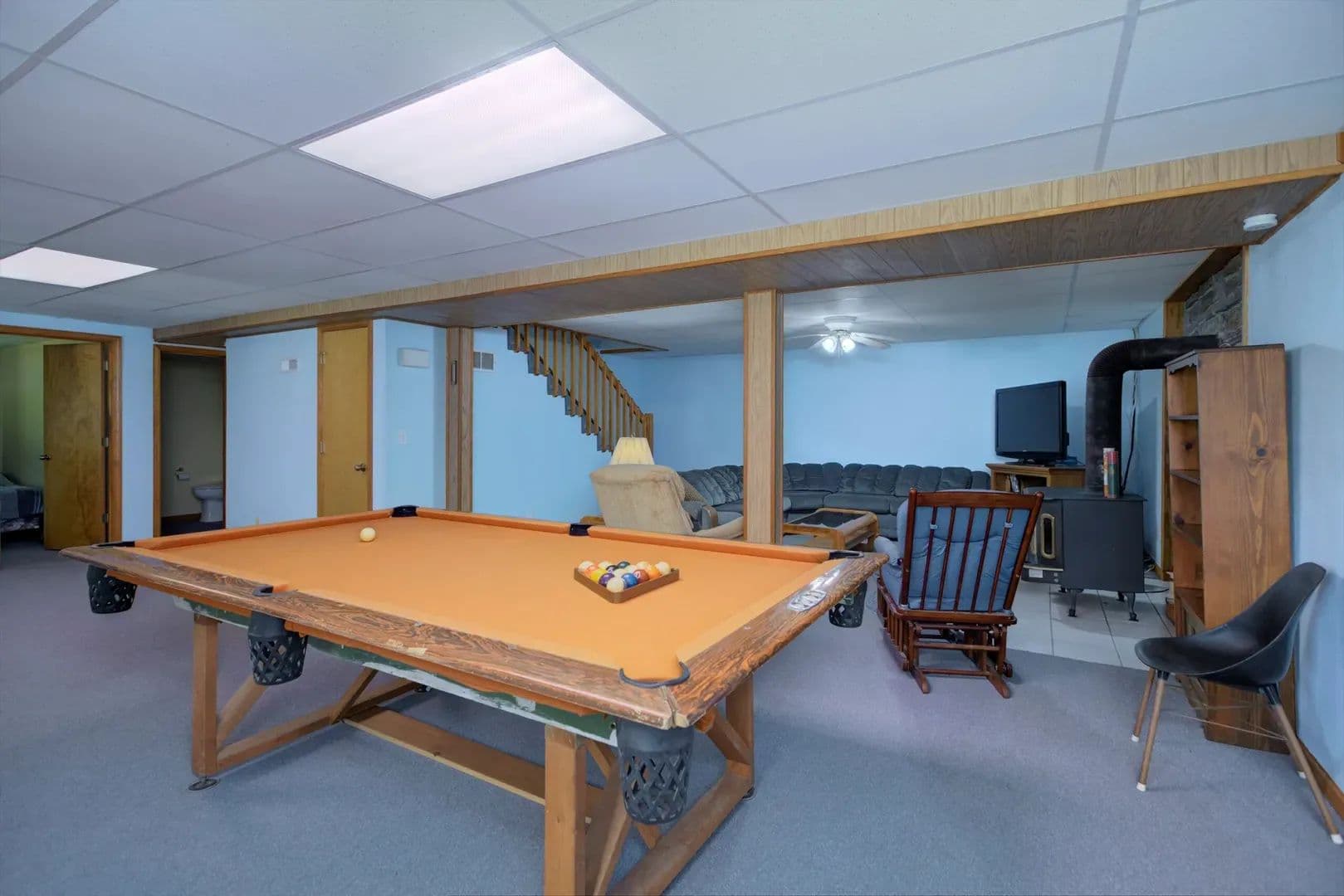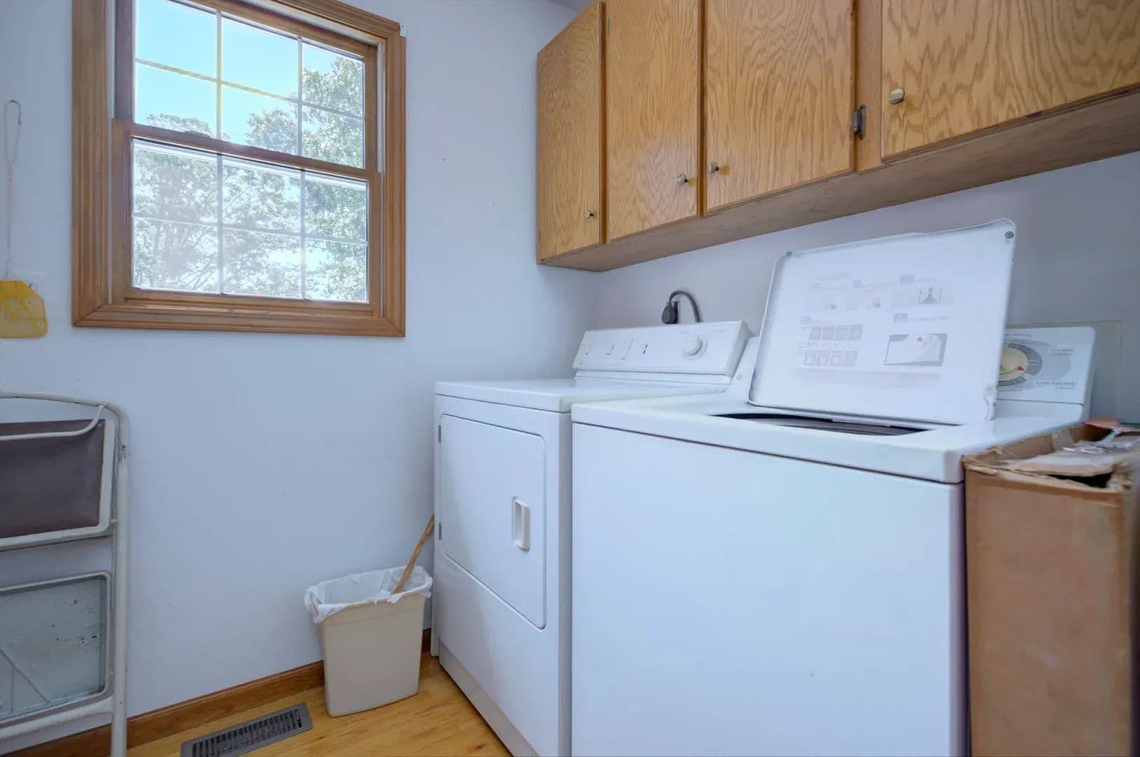 Main-level laundry room, ample storage, and a large open basement