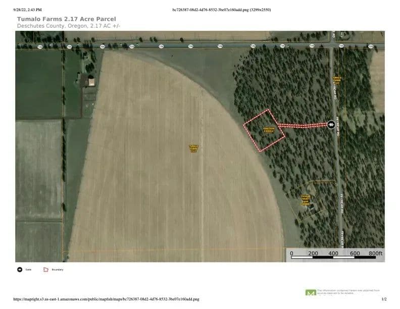Huge mountain views from the homesite on this 2.17 acre parcel. Almost completely surrounded by a 109 acre irrigated agricultural parcel gives privacy and space like no other 2 acre parcel and without the hassles and expense of owning such a large piece of property. Formerly a part of the Historic Tumalo Farms Thoroughbred Training Facility the view is west across the large remaining parcels of Tumalo Farms. A private driveway directly off Fryrear road and extensive CCR's makes for a pleasant environment all the way to your front door. There are several magnificent homes along this stretch of Fryrear Road. Close to Sisters, Bend, and Redmond and all amenities and recreation they have to offer. Conditional Use Permit in place for a dwelling. An additional 50' easement either side of deeded driveway flag lot that can be fenced adds additional area to the lot with limitations. Just south down Fryrear road is the BLM Fryrear trailhead giving access to thousands of acres of trails.