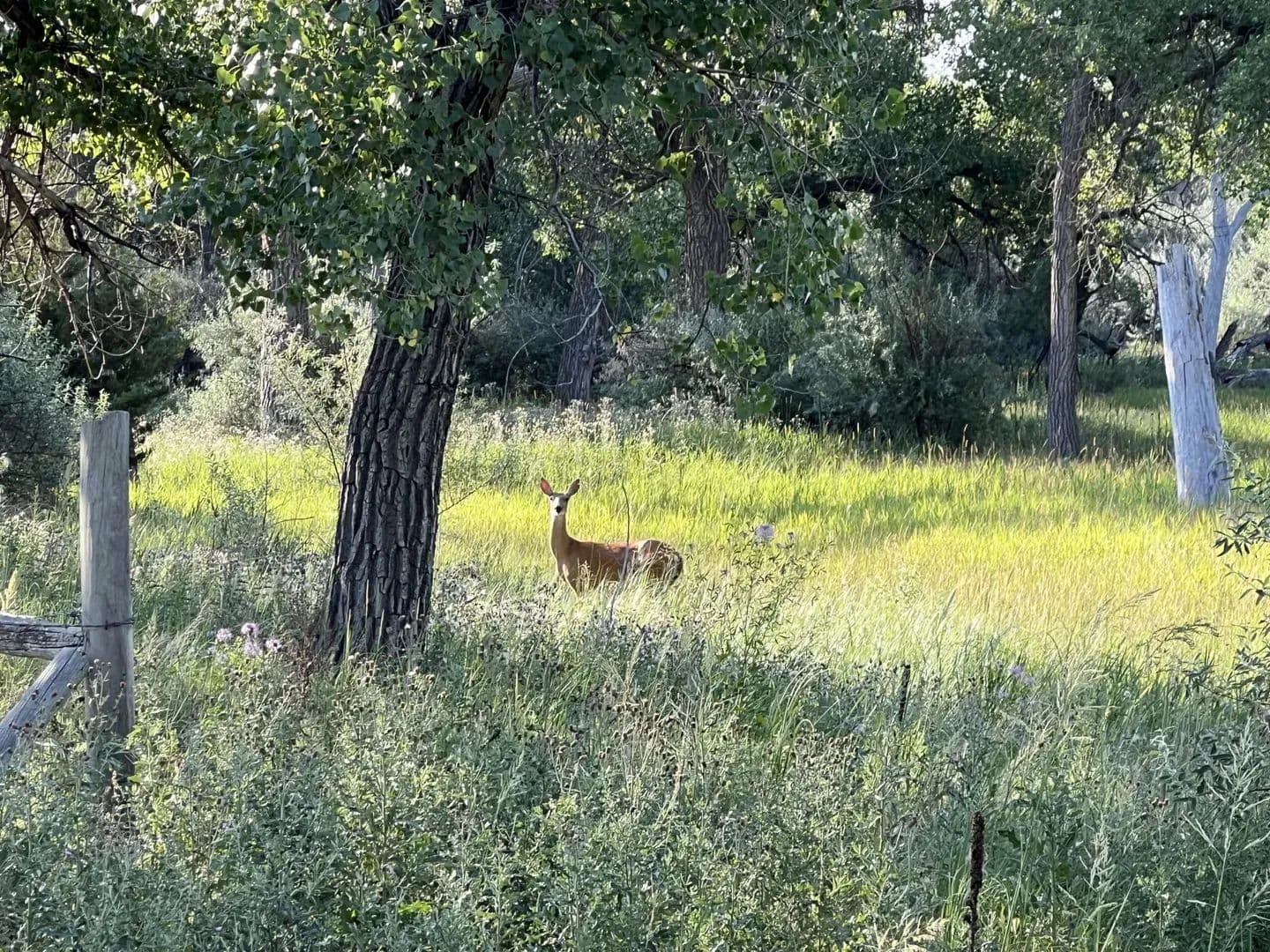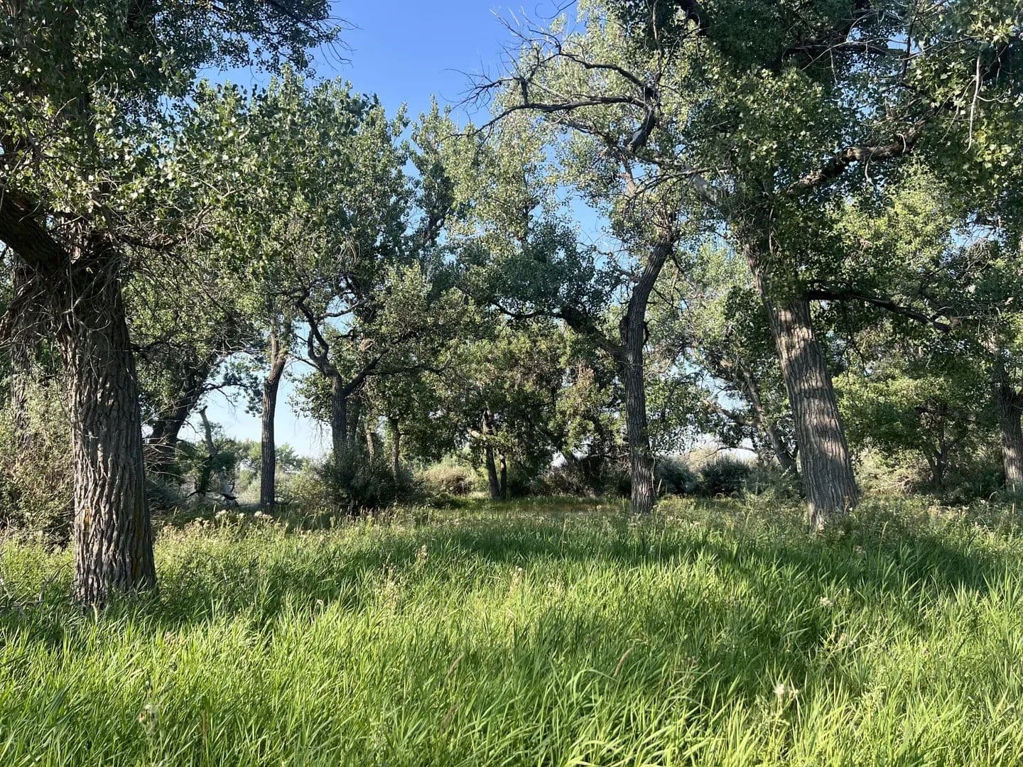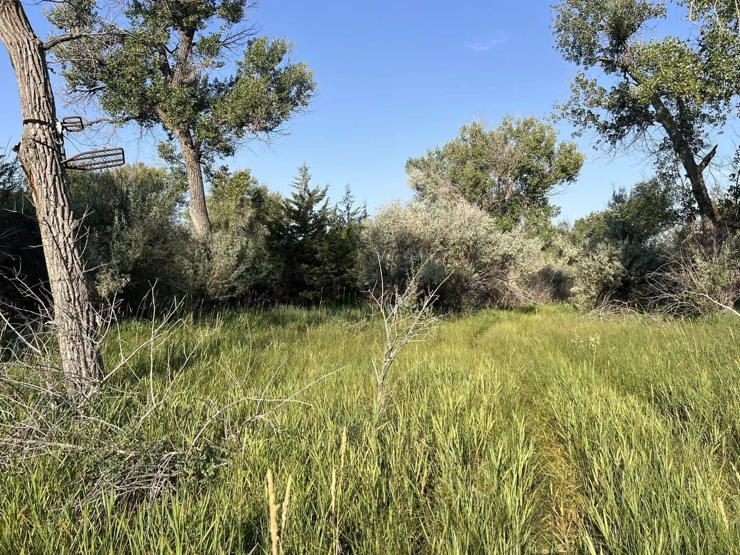 Bordering the North Platte National Wildlife Refuge to the south, this tract serves as a sanctuary for wildlife. Thick stands of mature cottonwoods and scattered cedar trees provide ideal cover and bedding habitat for whitetail deer, with well-worn trails crisscrossing the property in every direction. In spring, turkeys can often be seen strutting through the open glades and tree pockets, adding another dimension to this multifaceted hunting property.
