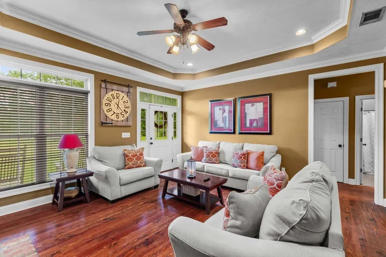 Tucked away in a wooded setting just seconds from the scenic Natchez Trace Parkway, this beautifully maintained home offers the perfect blend of privacy, comfort, and convenience. Situated on over two spacious acres, the property features mature trees, open green space, and plenty of room to roam, garden, or simply relax in nature.