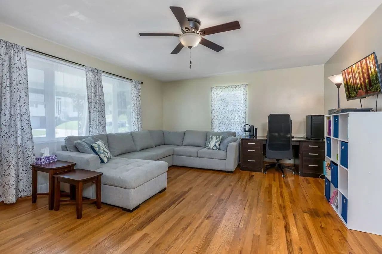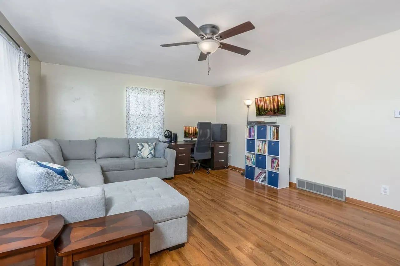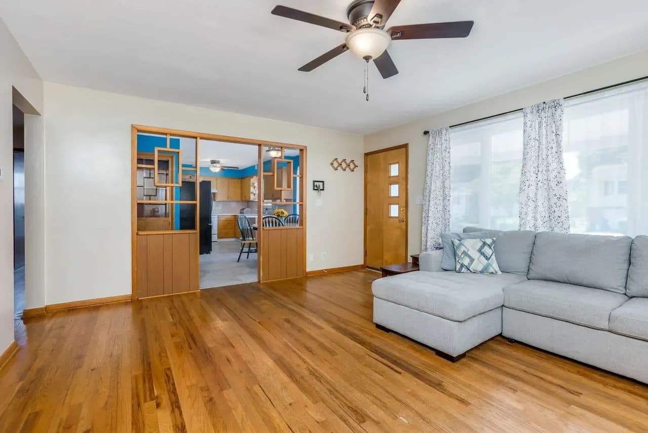Inside, enjoy new flooring in the kitchen, hardwood floors throughout the main living areas, and ample storage space in the basement. Recent upgrades include a new gas furnace and central air system, a new water heater, and a new stove, giving you peace of mind for years to come.