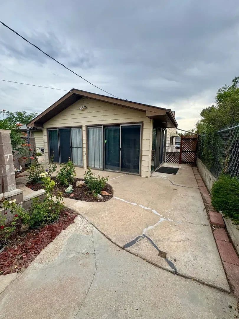 Welcome to this beautiful ranch style home featuring a flourishing yard, new kitchen, and 3 garage spaces. Upon entering the home, you are greeted with a living and dining room that flows into the kitchen. The kitchen has recently been renovated and includes new white shaker cabinets, granite countertops, under mount sink, dishwasher, and gas oven. The kitchen leads to the laundry room that has additional cabinets for storage and access to the HVAC system and hot water heater. There are 2 bedrooms with hardwood floors and 1 with carpet. The carpet in the 3rd bedroom has hardwood flooring underneath. Attached to the back of the home is a carpeted sunroom with sliding glass doors and screens leading to the back yard. There is a nice patio area attached to the sunroom, perfect for grilling. The perimeter of the yard is fully fenced with chain-link and has an additional block wall by the sunroom creating a nice space for a flower garden. There is also an abundant producing grape vine growing in the yard. In addition to the 1 car attached garage, there is a 2-car detached garage with alley access. On the south side of the garage there is poured concrete for extra parking. This home has it all, schedule your tour today and imagine building your life here!