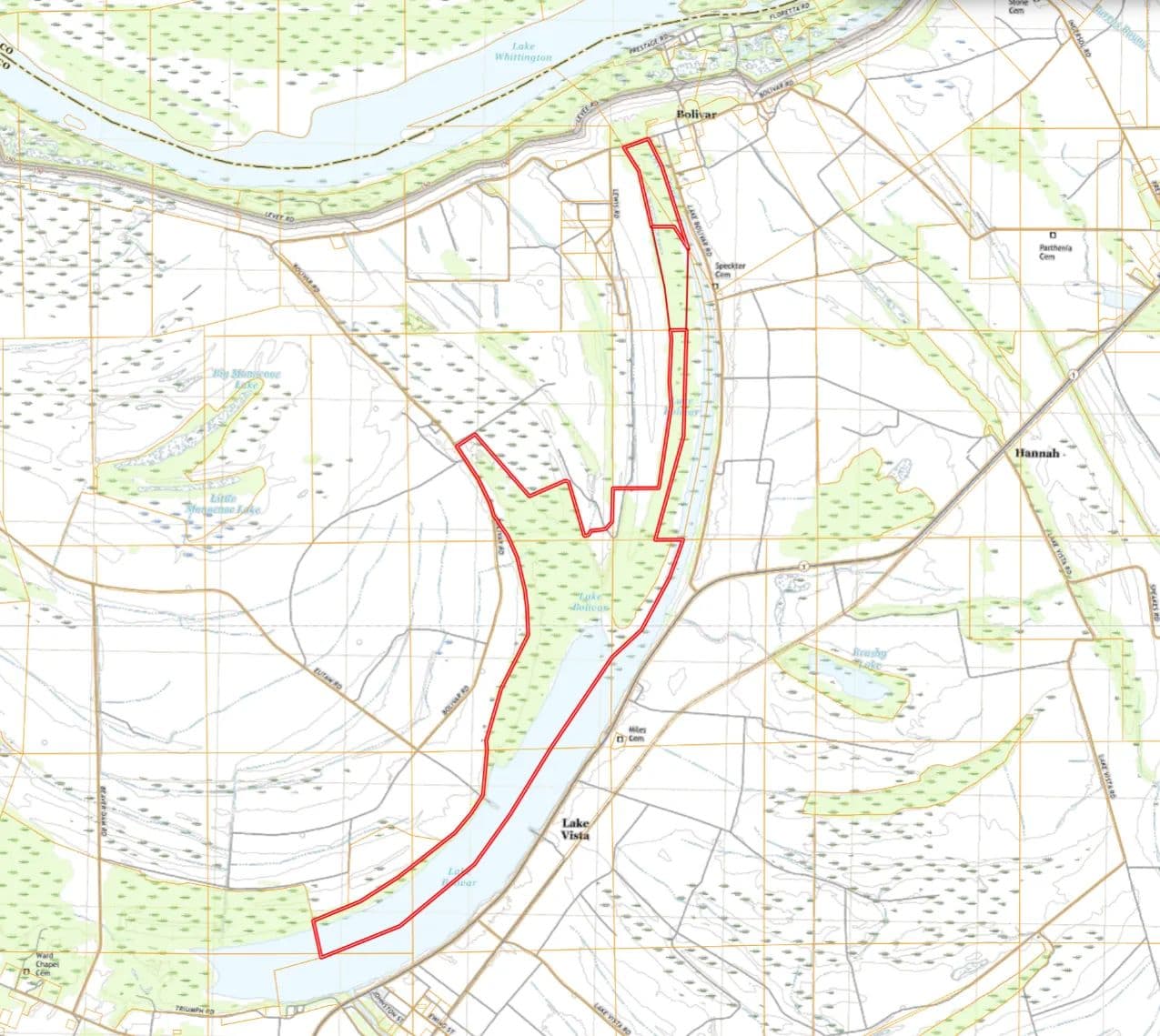 The landscape is a rich blend of mature hardwood woodlands, natural sloughs, and portions of Lake Bolivar. Depending on rainfall, the dry and wadeable hunting acreage consists of approximately 500-550 wooded acres along the lake’s western shoreline.