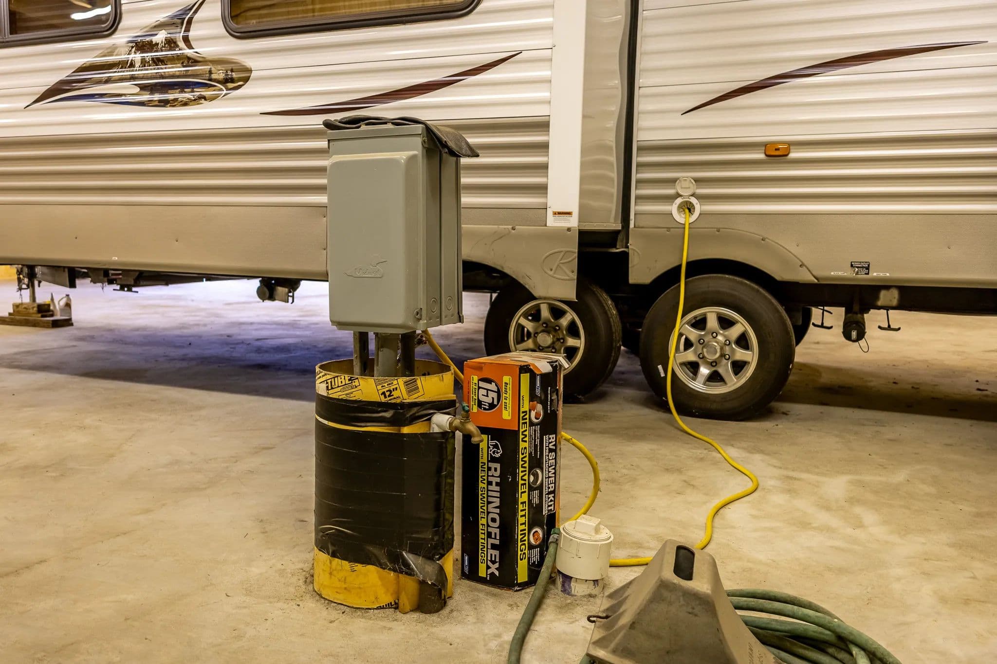 The property is serviced by electric power throughout, and co-op water provides a reliable water source. Water and septic hookups are available at multiple buildings. An underground storm shelter offers additional safety.