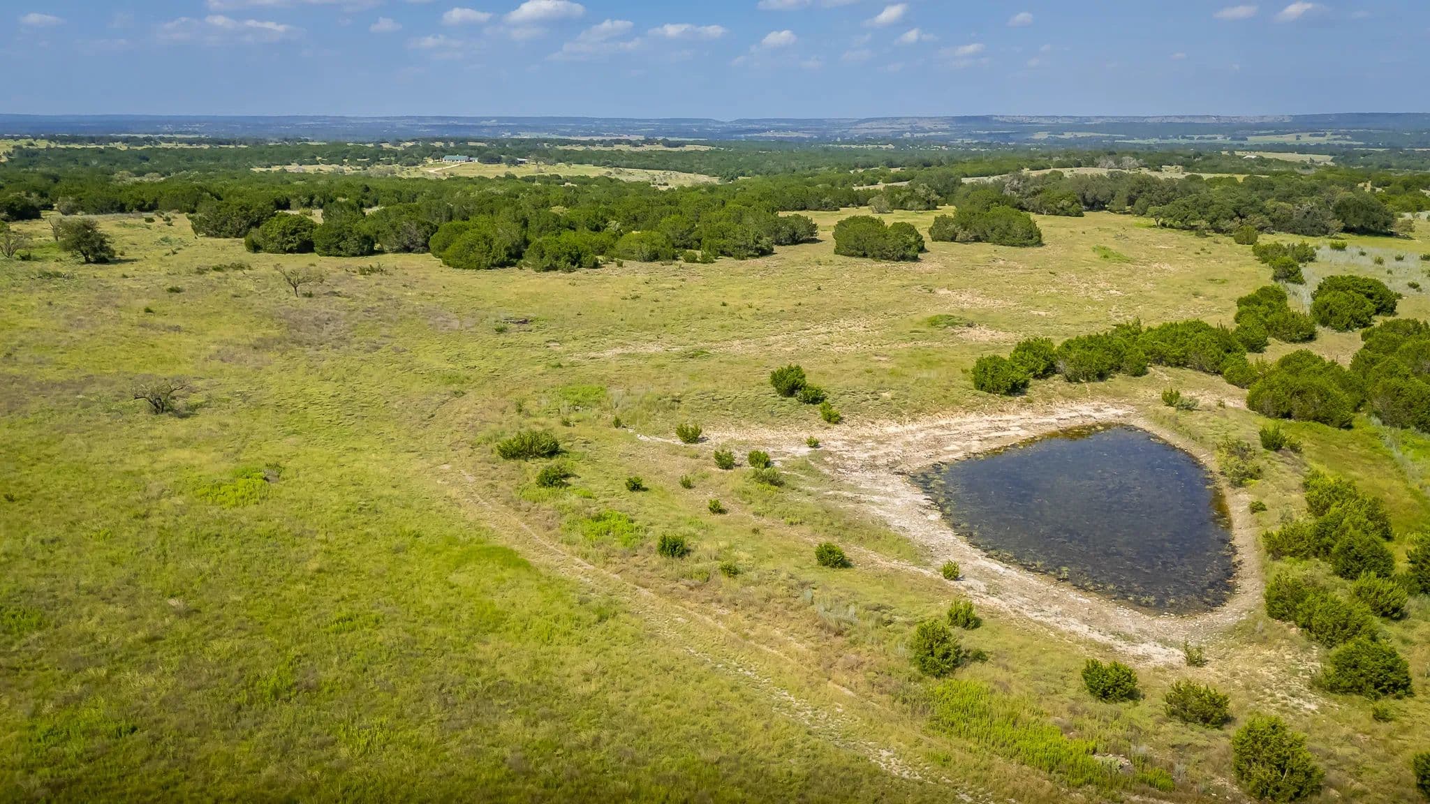 The ranch features a pond suitable for livestock or wildlife, along with coop water service and water lines extending to multiple improvement sites.