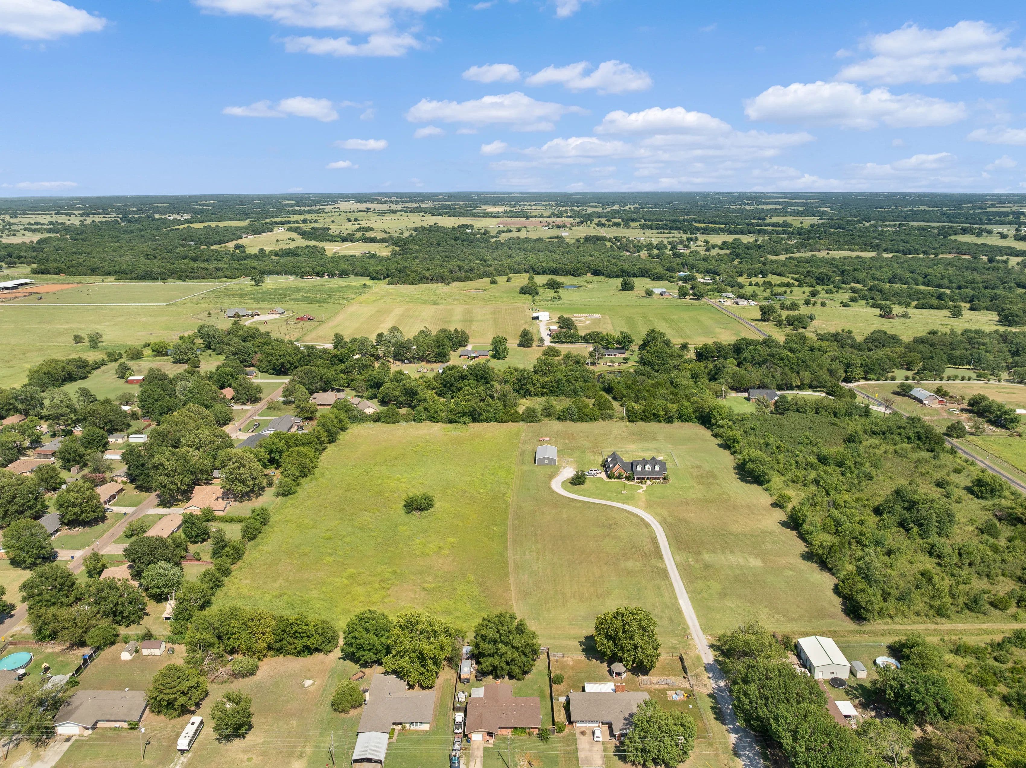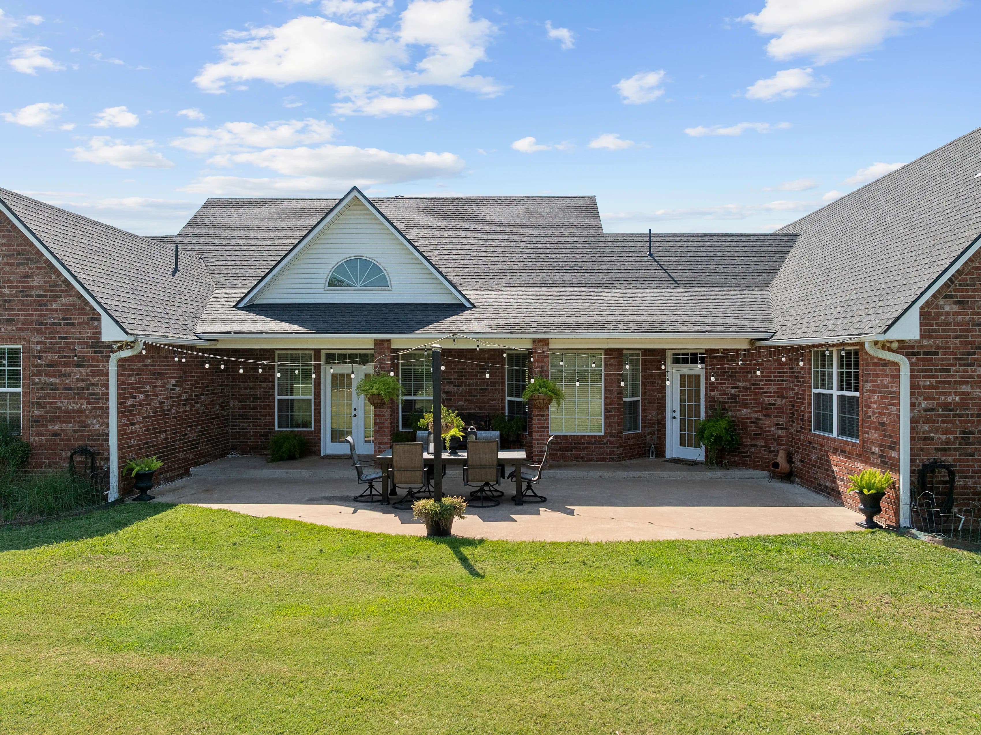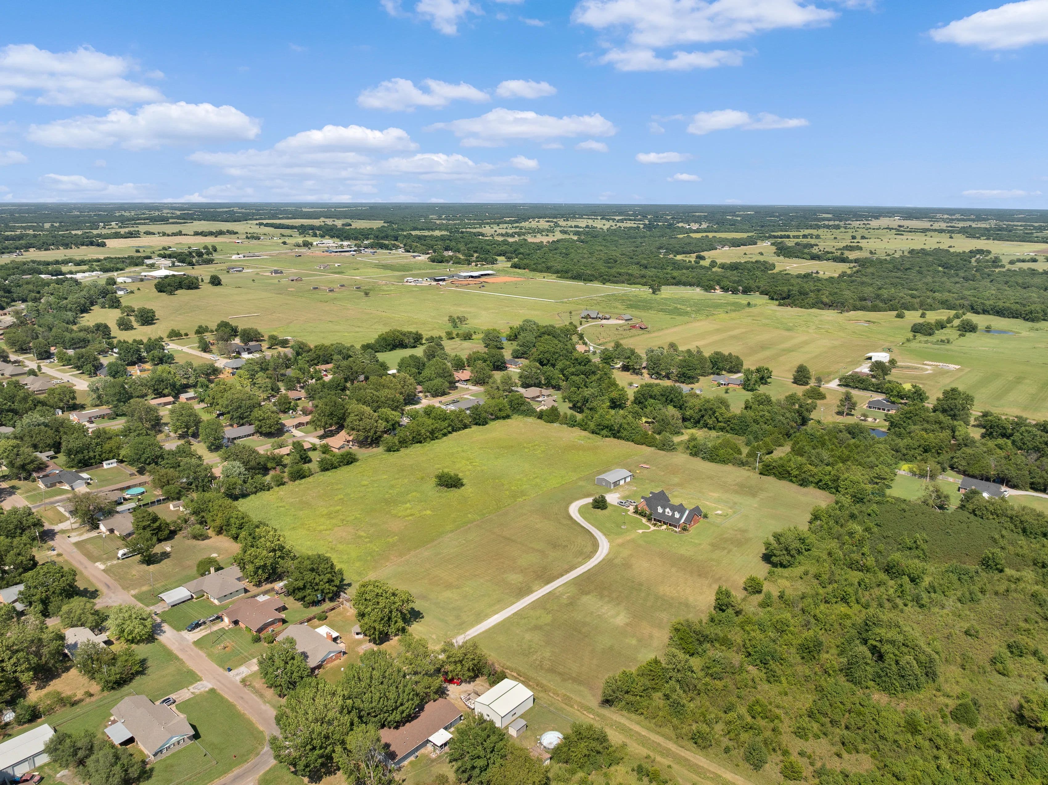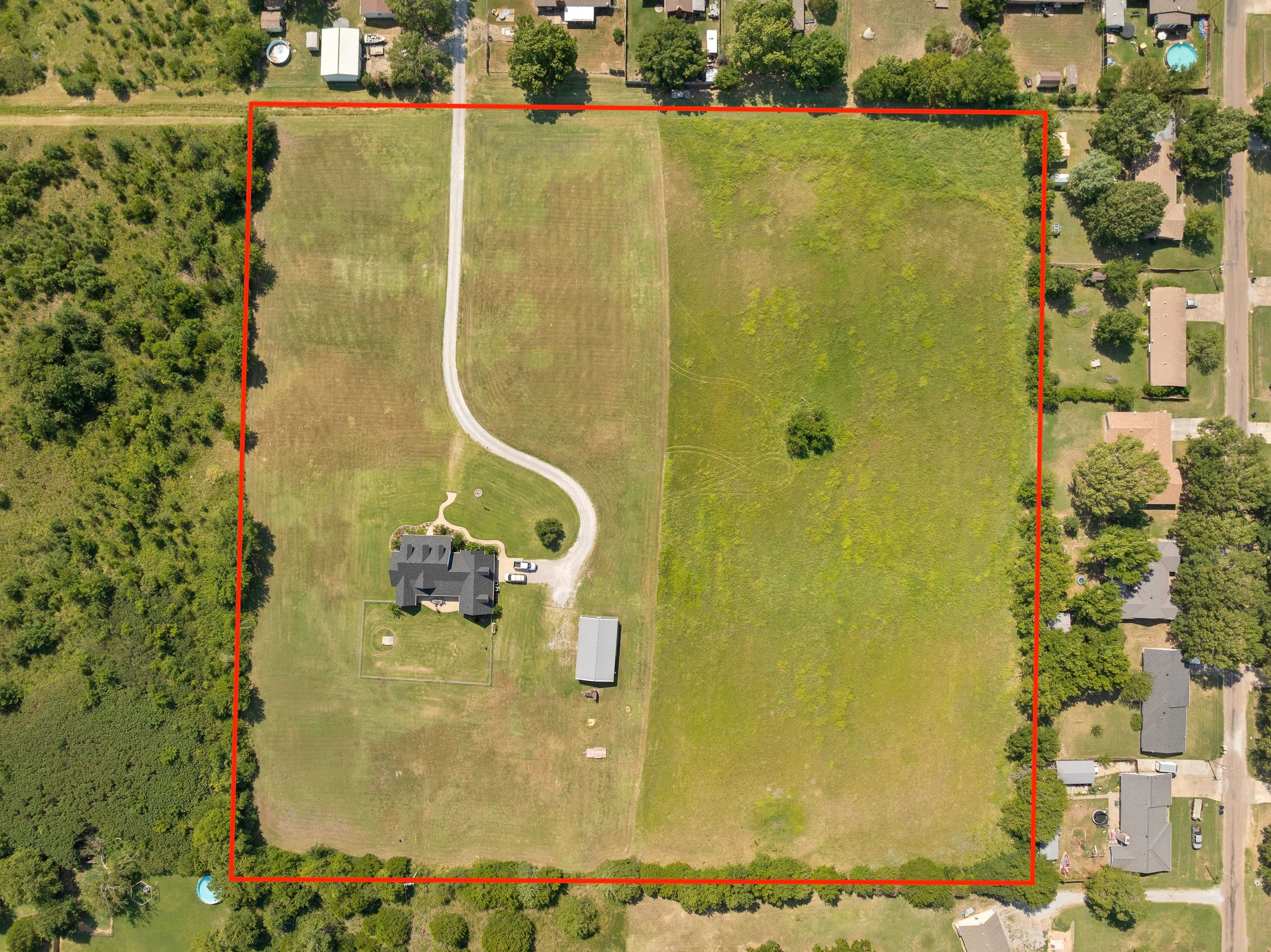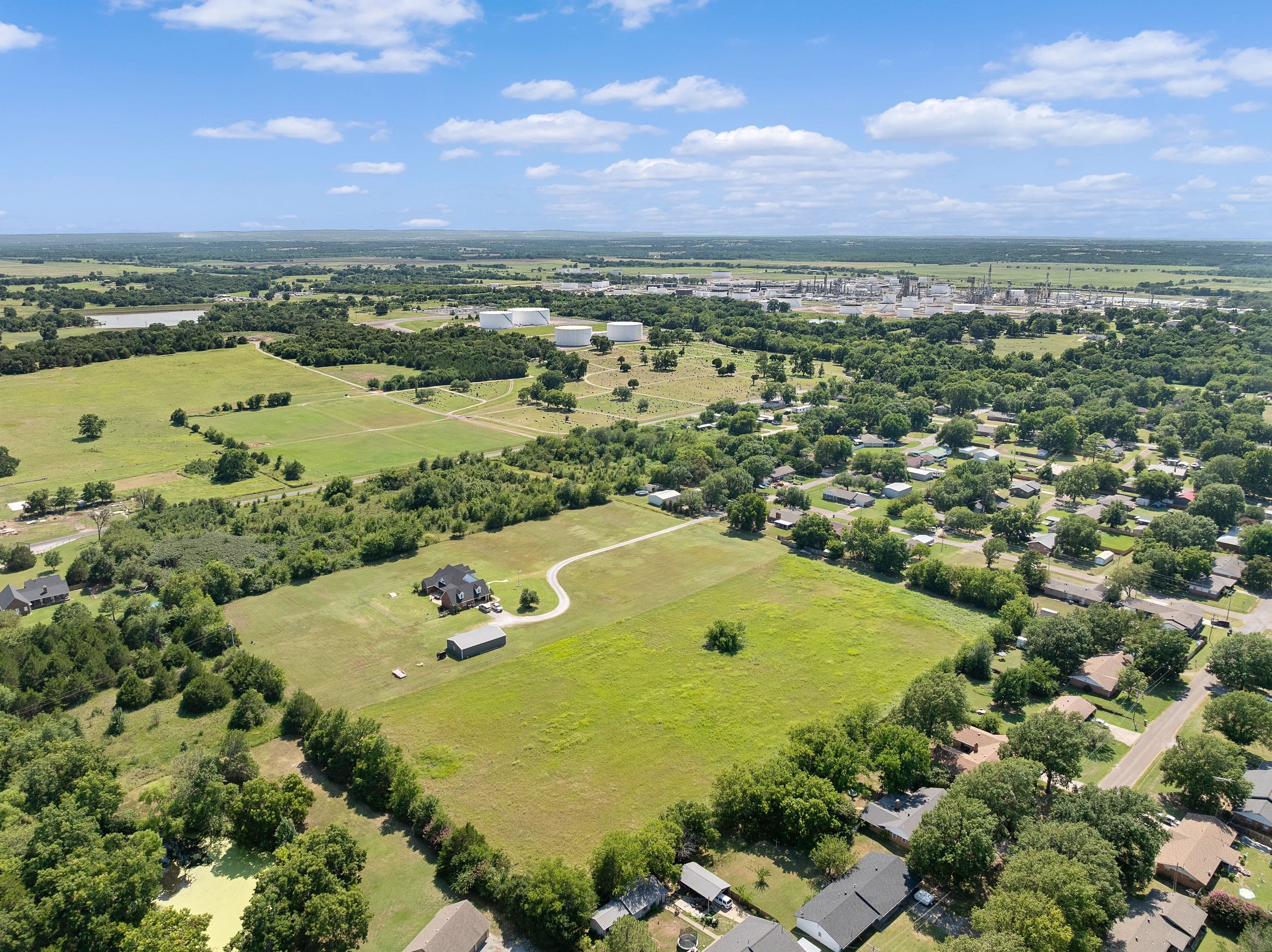 5-bedroom, 2.5-bath home on 10 acres, offering the perfect blend of privacy and convenience. Located just outside city limits but sitting right on the edge of town, the long driveway creates a secluded feel while still providing quick access to amenities. The flexible floor plan includes a 5th bedroom that could serve as an office with double doors opening to the entry hall, plus an upstairs bonus room-style bedroom. The main living area features vaulted ceilings and an open flow between the kitchen, breakfast nook, and living room, with a separate formal dining space for gatherings. The kitchen is equipped with granite countertops, an eat-in island, pantry, and plenty of workspace. The primary suite offers a relaxing en suite bath with a whirlpool tub, separate walk-in shower, and ample closet space. Additional highlights include a large laundry room with storage and sink, a storm shelter, fenced backyard with a concrete patio for outdoor enjoyment, and a new roof. A 30x50 insulated shop with electric, two overhead doors, and one walkthrough door (built in 2012) provides excellent space for hobbies, storage, or work. Utilities include PEC electric and City of Wynnewood water and sewer. This property is ideal for those seeking both comfort and room to spread out, all within minutes of town.