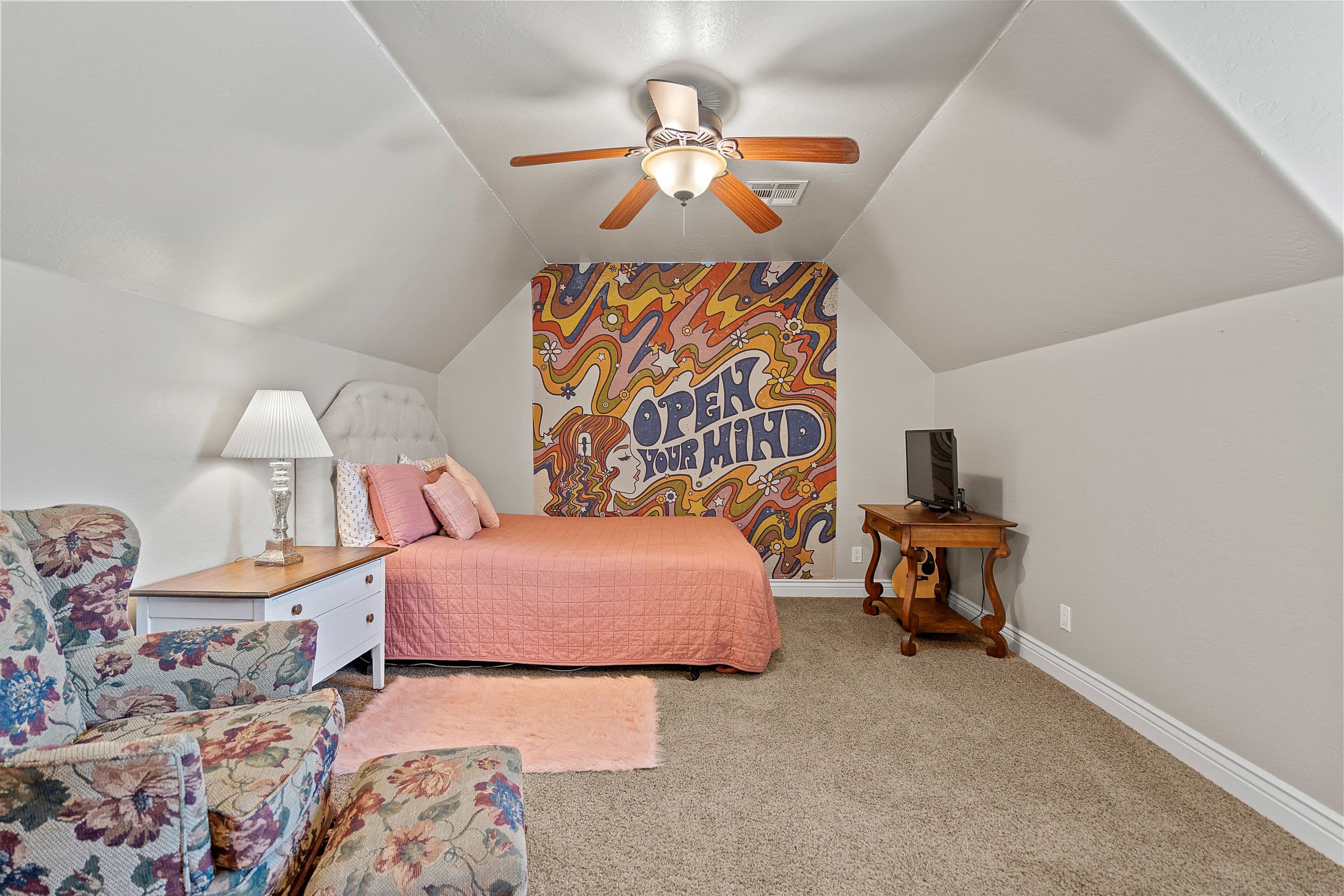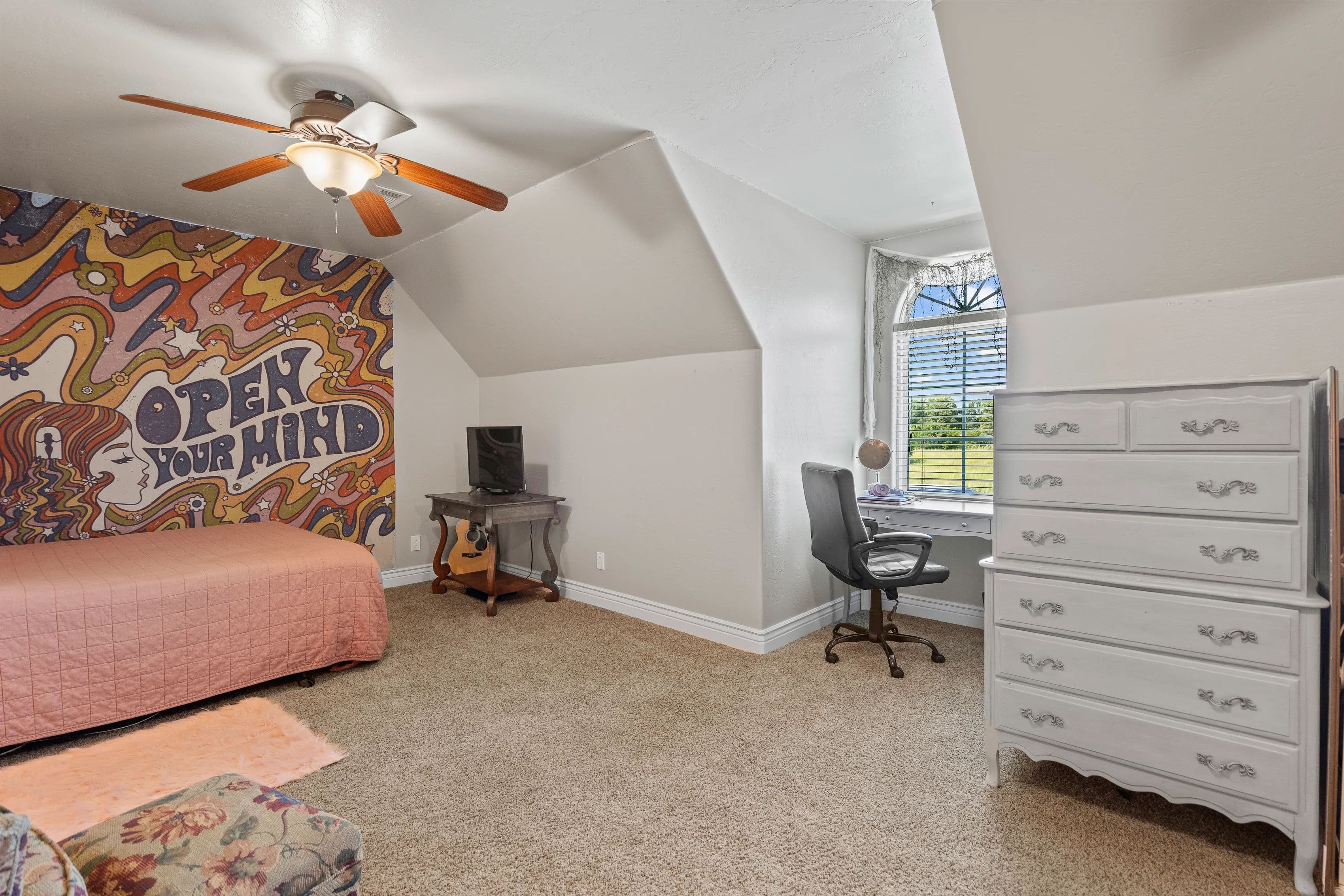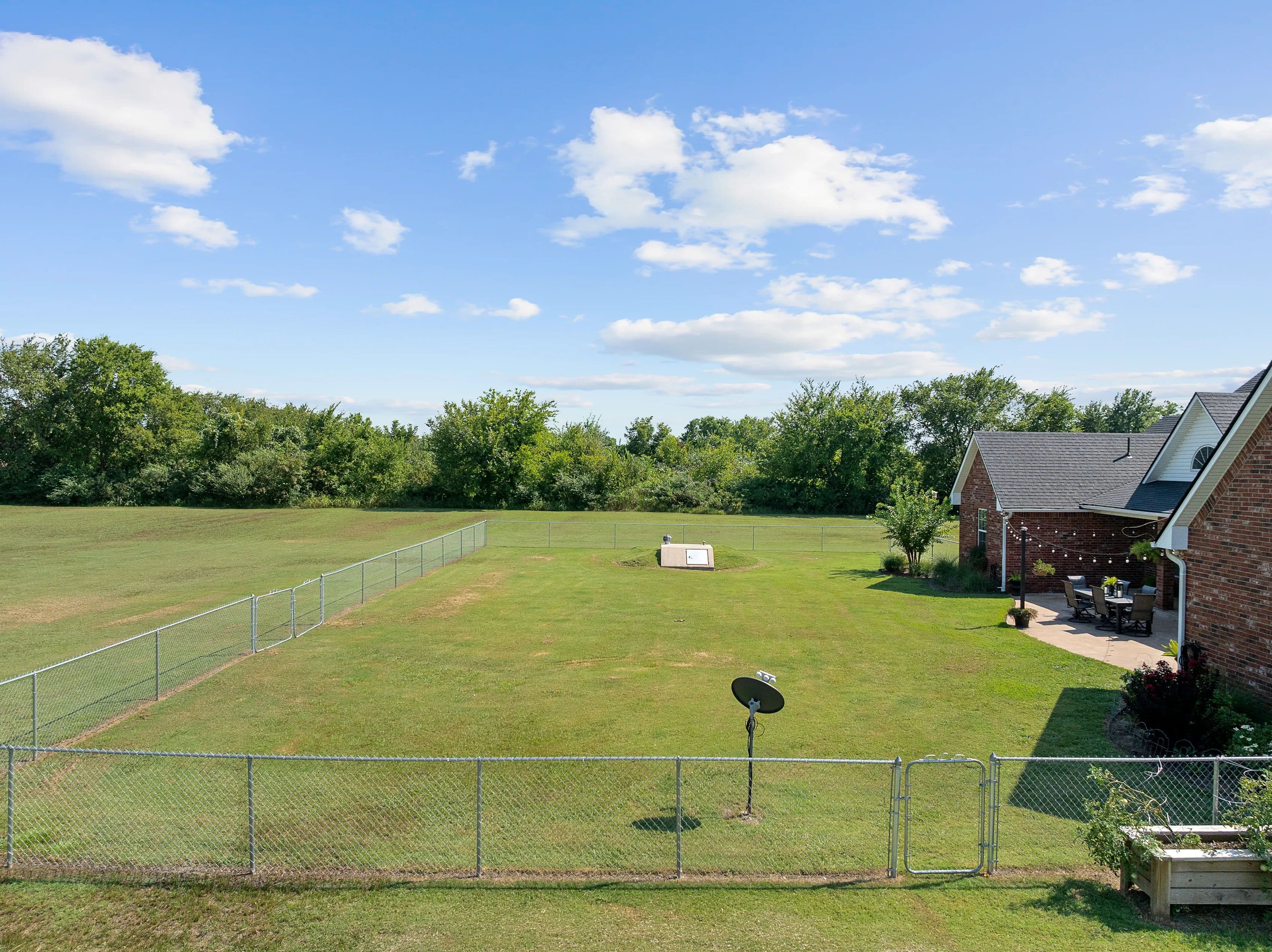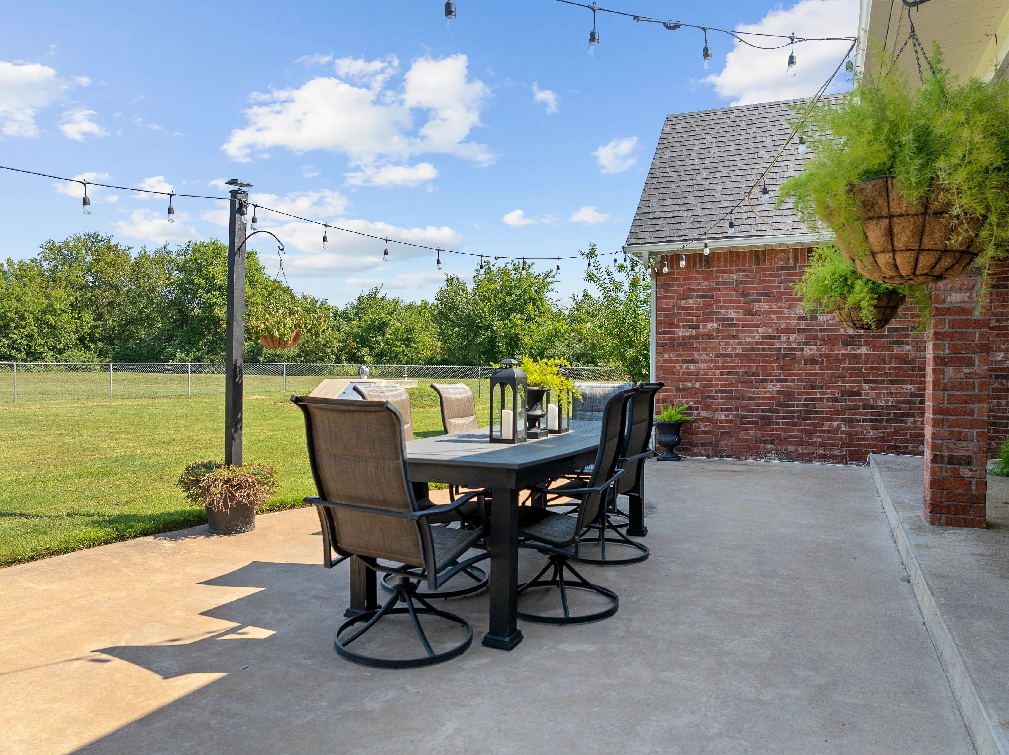 5-bedroom, 2.5-bath home on 10 acres, offering the perfect blend of privacy and convenience. Located just outside city limits but sitting right on the edge of town, the long driveway creates a secluded feel while still providing quick access to amenities. The flexible floor plan includes a 5th bedroom that could serve as an office with double doors opening to the entry hall, plus an upstairs bonus room-style bedroom. The main living area features vaulted ceilings and an open flow between the kitchen, breakfast nook, and living room, with a separate formal dining space for gatherings. The kitchen is equipped with granite countertops, an eat-in island, pantry, and plenty of workspace. The primary suite offers a relaxing en suite bath with a whirlpool tub, separate walk-in shower, and ample closet space. Additional highlights include a large laundry room with storage and sink, a storm shelter, fenced backyard with a concrete patio for outdoor enjoyment, and a new roof. A 30x50 insulated shop with electric, two overhead doors, and one walkthrough door (built in 2012) provides excellent space for hobbies, storage, or work. Utilities include PEC electric and City of Wynnewood water and sewer. This property is ideal for those seeking both comfort and room to spread out, all within minutes of town.